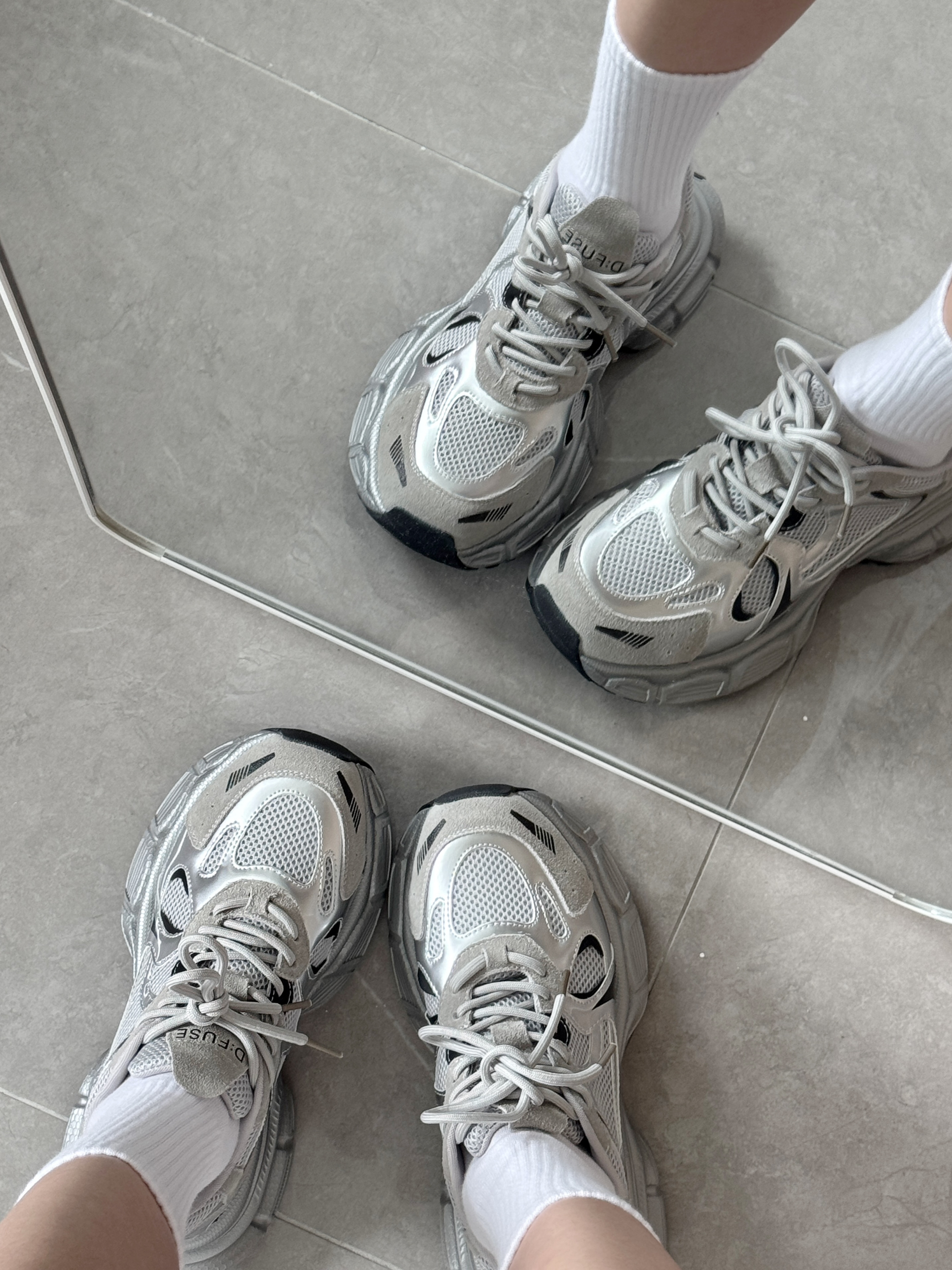 复古银灰色 有种未来科技感~ 厚底增高好显腿长腿细呀 日常搭配裤子裙子都好看🥰