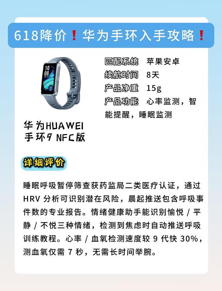 本篇笔记关联了HUAWEI/华为 手环9 运动手环 测心率 快充 快捷支付 公交 睡眠健康 星空黑、HUAWEI/华为 手环10 运动手环 专业睡眠分析 情绪健康 心率监测 超长续航 曜石黑(聚合纤维表壳)等商品,为用户提供真实的使用体验和购买参考。