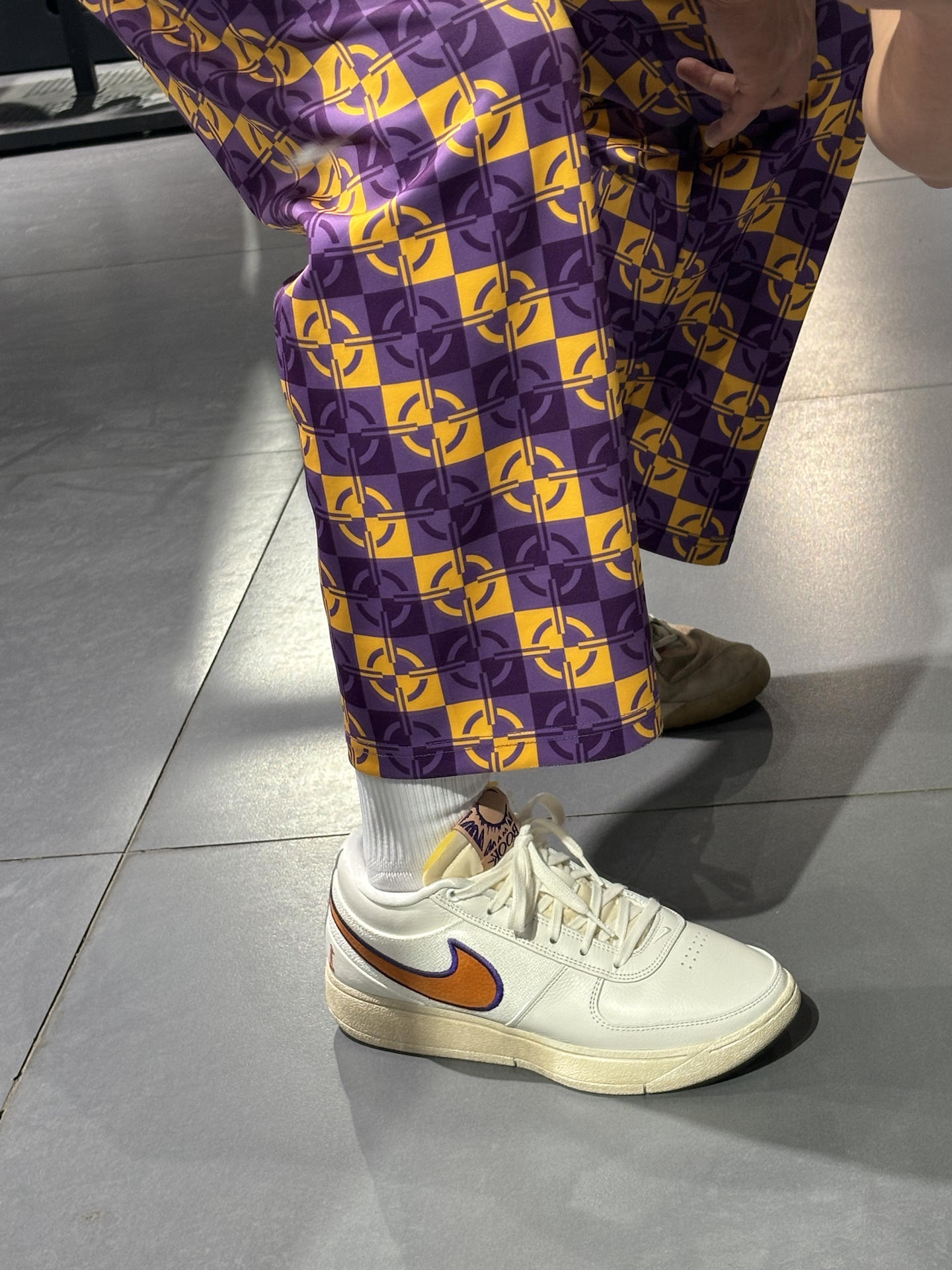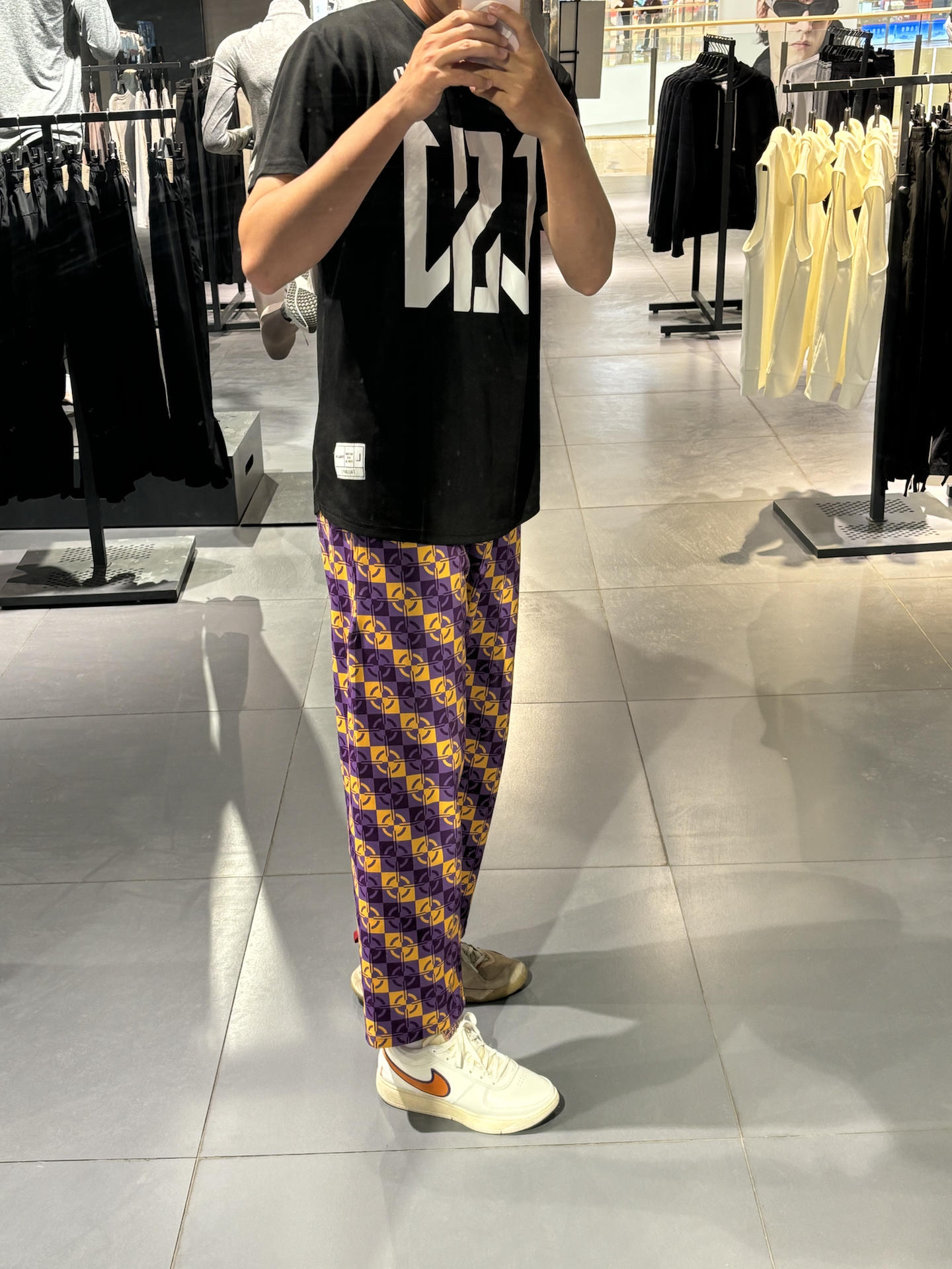 #甜酷风潮夏日限定 #我的本命短袖 #夏日少年感出游 #硬核防晒穿搭 #夏日不费力少年感穿搭 体育生的做旧风就是这样穿搭的 一条略显花哨的裤子 复古的紫色和黄色搭配起来还很到位 老钱风搭配复古球鞋刚好