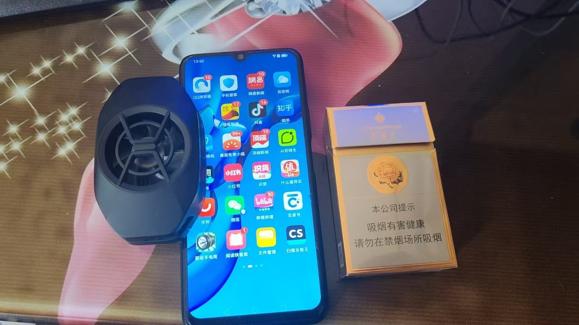 谁说散热背夹只能“土味实用”?iQOO这款典雅黑机身,夹在手机上像科幻片里的未来装置,搭配黑色电竞桌垫和RGB键盘,赛博朋克风随手拍!实测搭配桌面小风扇,热风从上下风口导出,双手完全不触热气,充电玩也不烫手,“这桌搭,直接封神!”