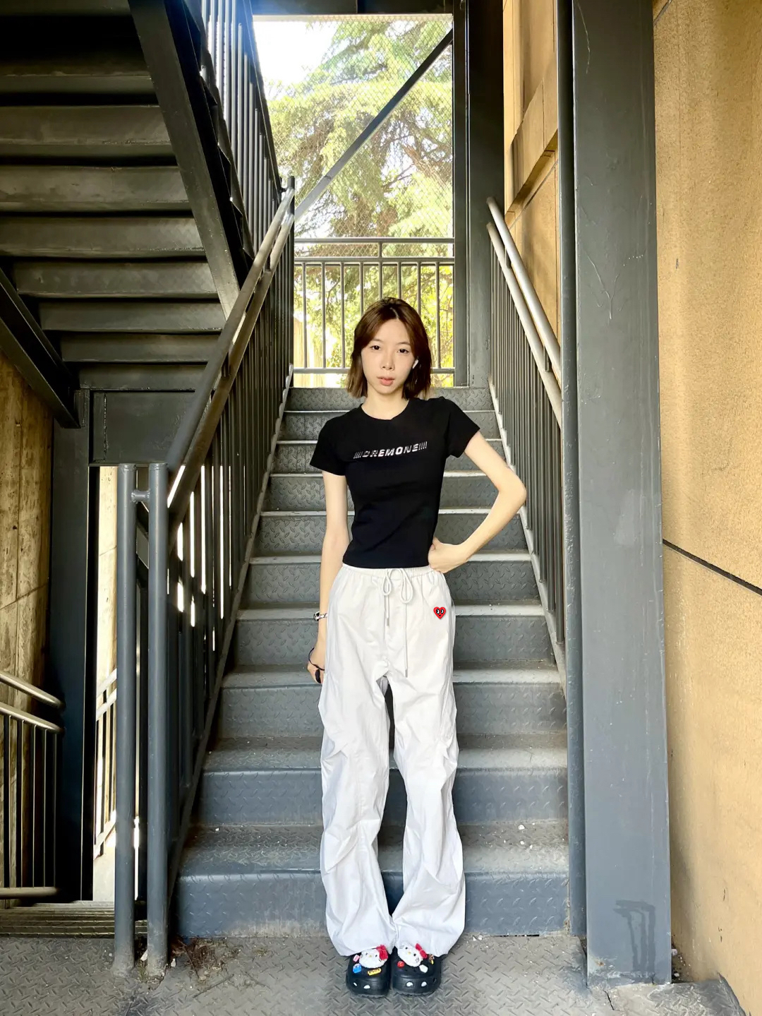 真的是一眼就吸引了我,款式简约,但是剪裁却不普通,上身很修饰腿型,面料冰丝的感觉很舒服,搭配一件正肩短袖,显身材又时髦