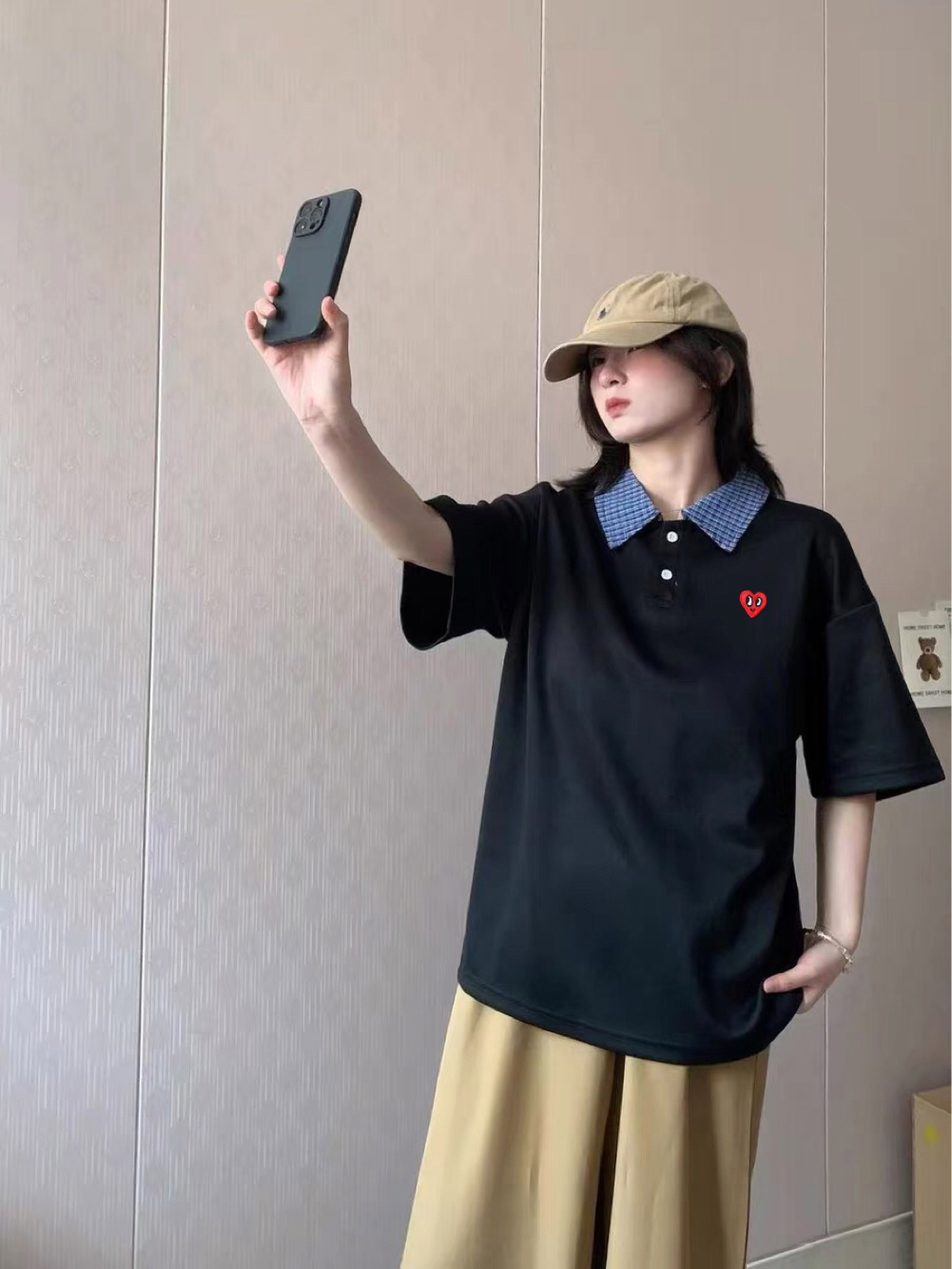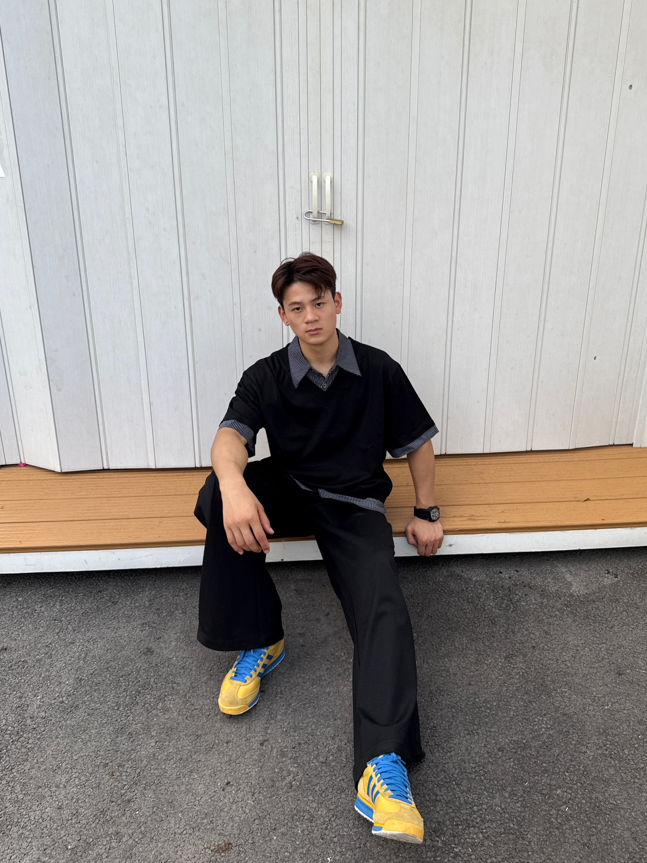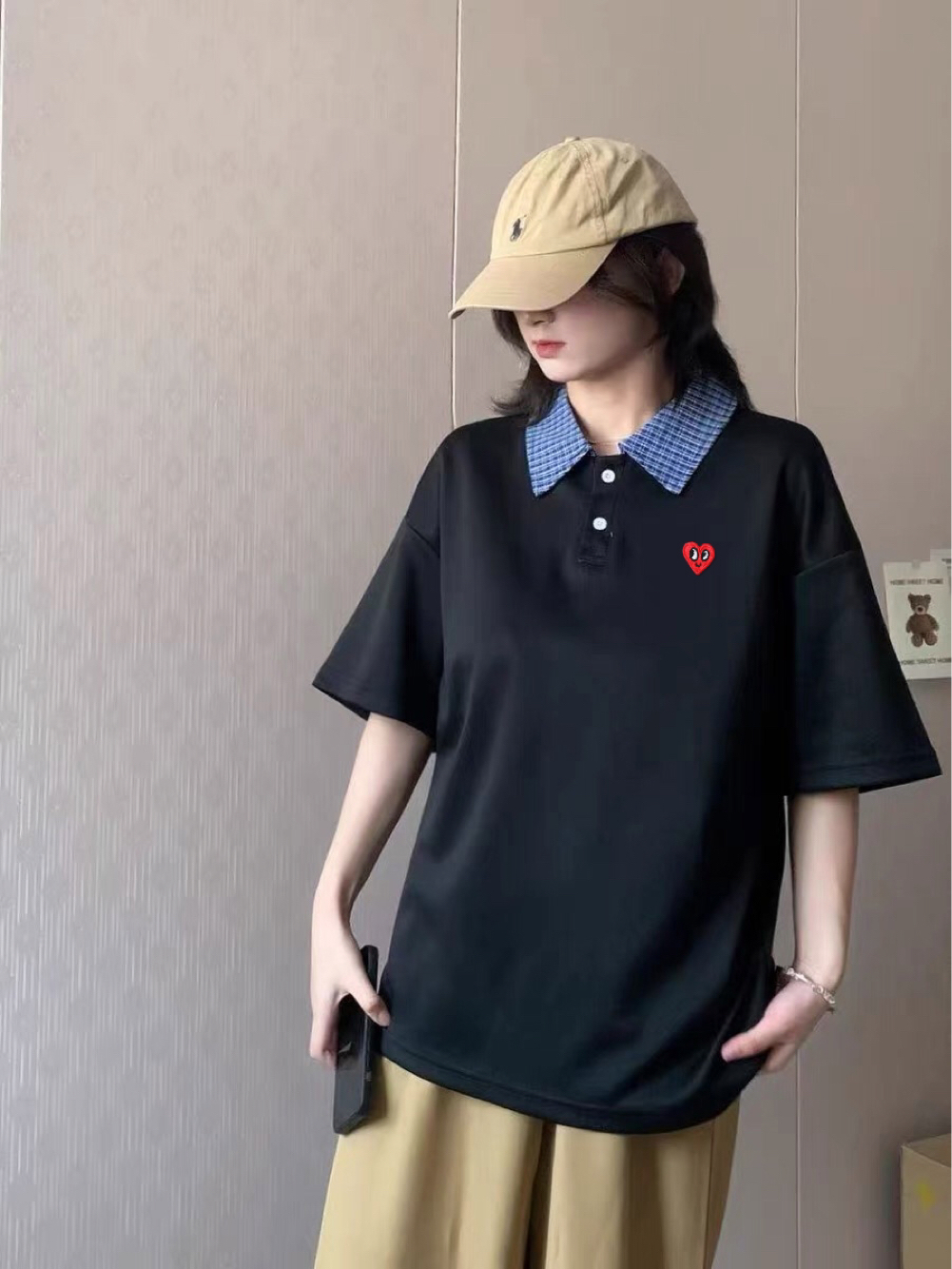 假两件polo衫真的穿不腻啊,深蓝与浅蓝相间搭配,简约又不单调,搭配了一条卡其长裤,一整个日系少年感拉满