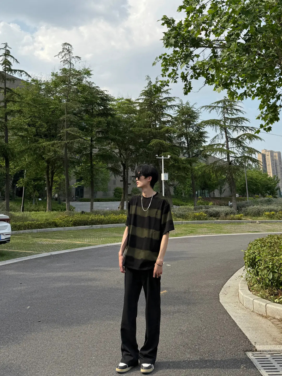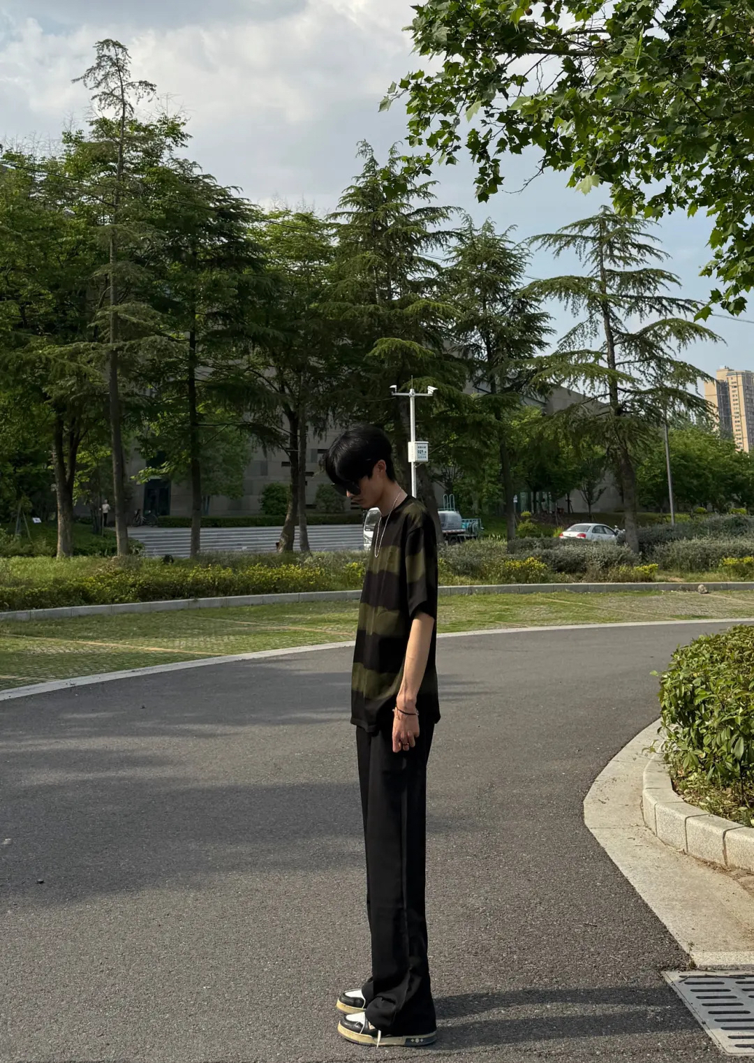 冰丝长裤太舒服咯,超显瘦的版型,休闲百搭很欧松弛感,垂感特别好也很轻薄,上身搭配一件条纹短袖,简约又帅气了