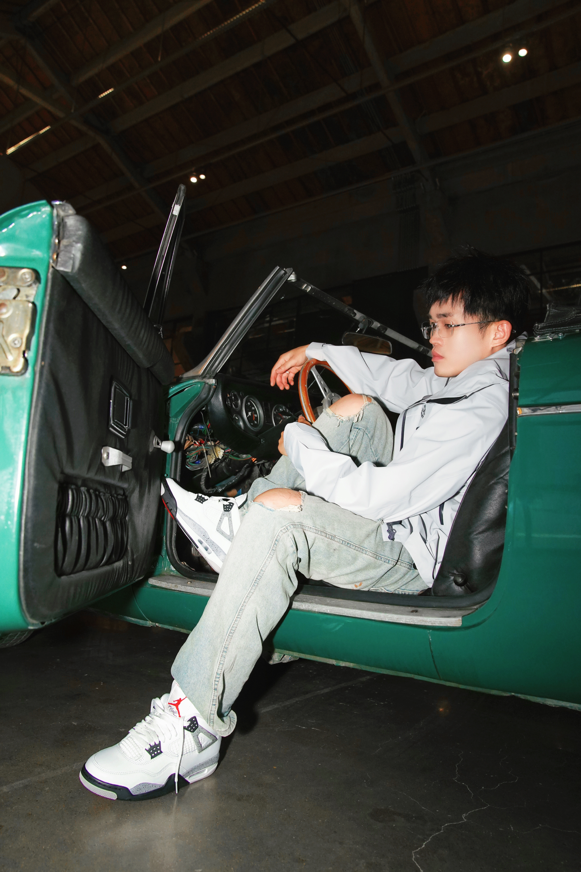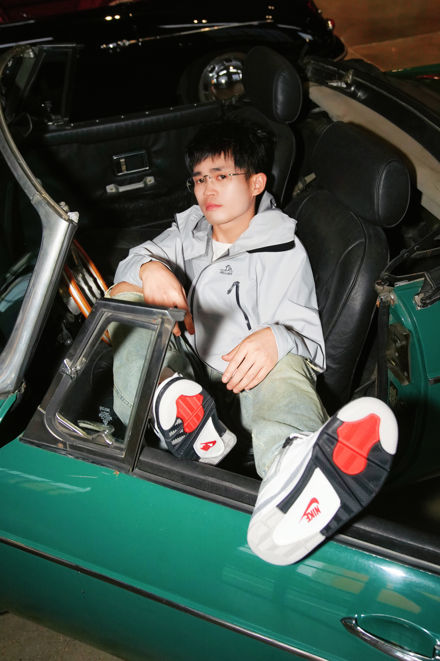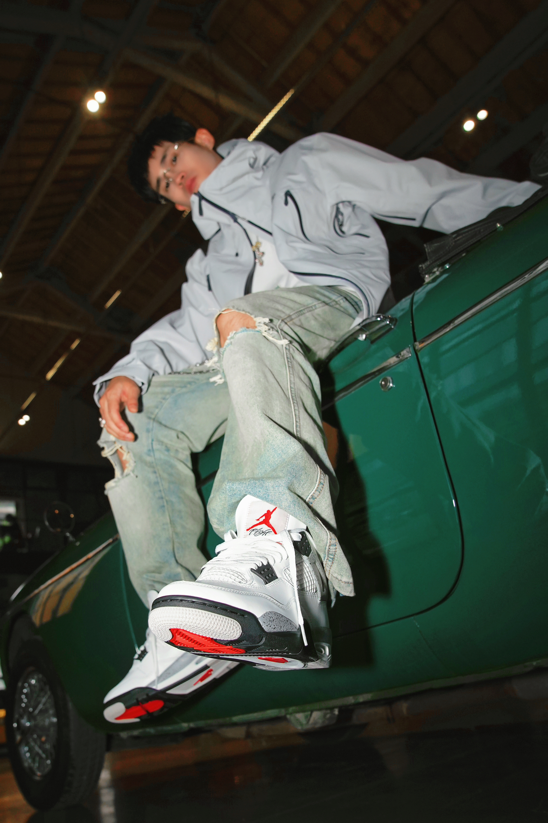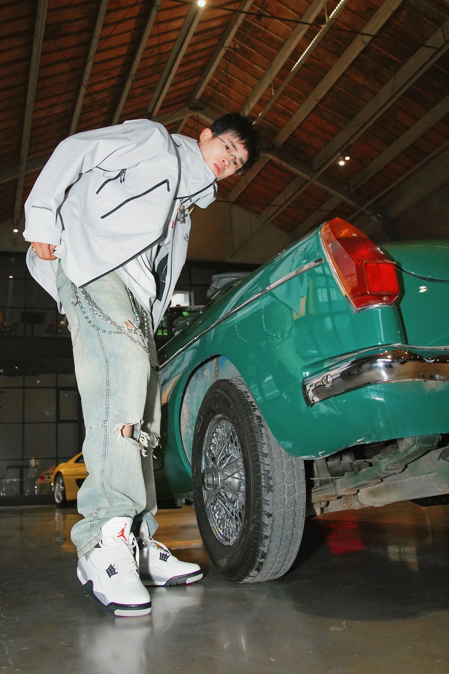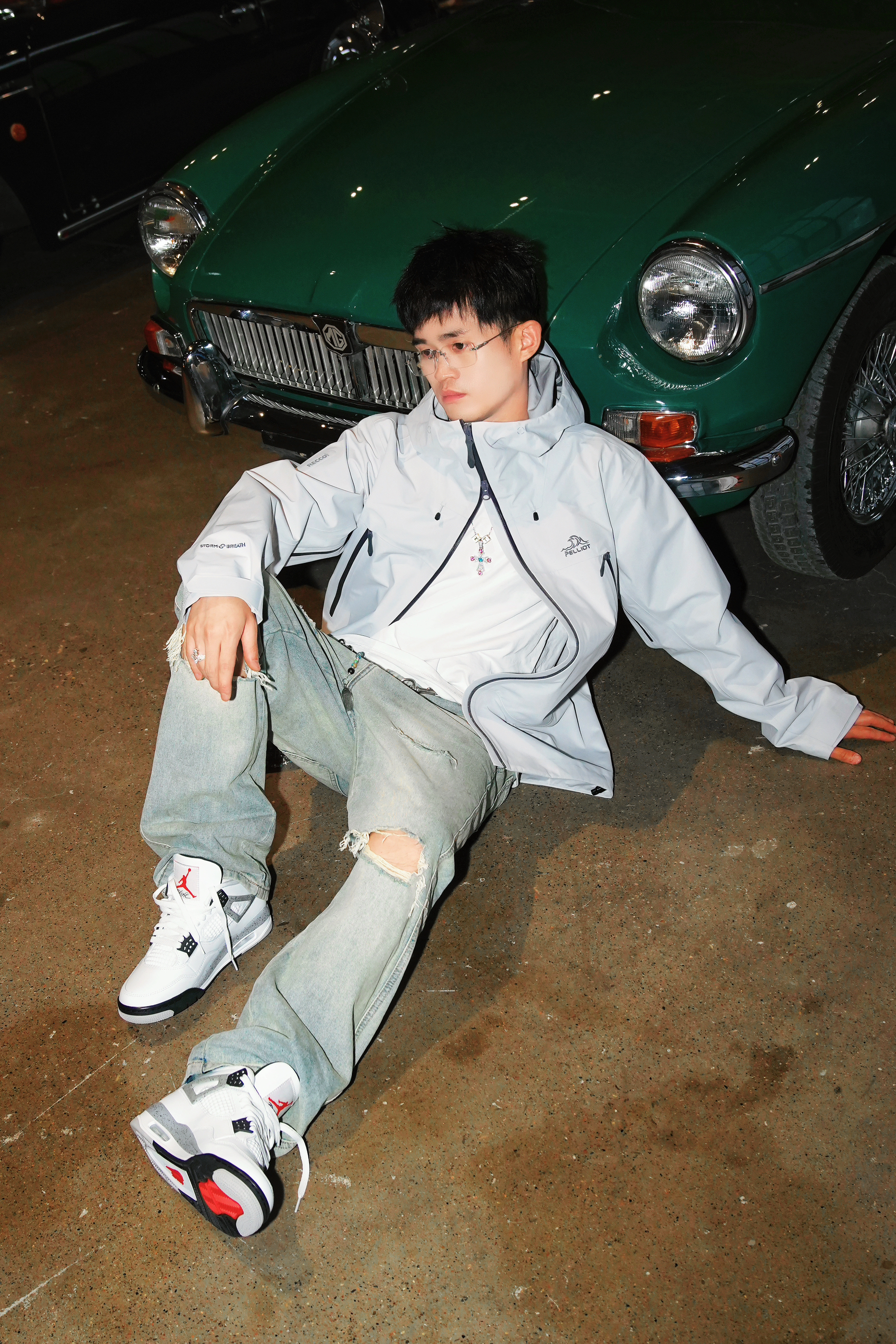🛵【场景穿搭代入】 蹲在车库擦车时被问的穿搭:浅灰冲锋衣搭破洞牛仔裤,AJ4鞋带松垮垂下,指尖无意识摩挲着MGB引擎盖上的纹路——当95匹马力的复古敞篷跑车遇见街头少年,我们都在用经典对抗时间。 🥼【一件外套的自我修养】 浅灰冲锋衣外套+破洞牛仔裤+AJ4,看似普通搭配,却暗藏「马力美学」玄机。 靠在1962年诞生的名爵MGB复古敞篷跑车旁,外套的廓形撑起街头气场,破洞牛仔裤呼应跑车底盘的叛逆感,...