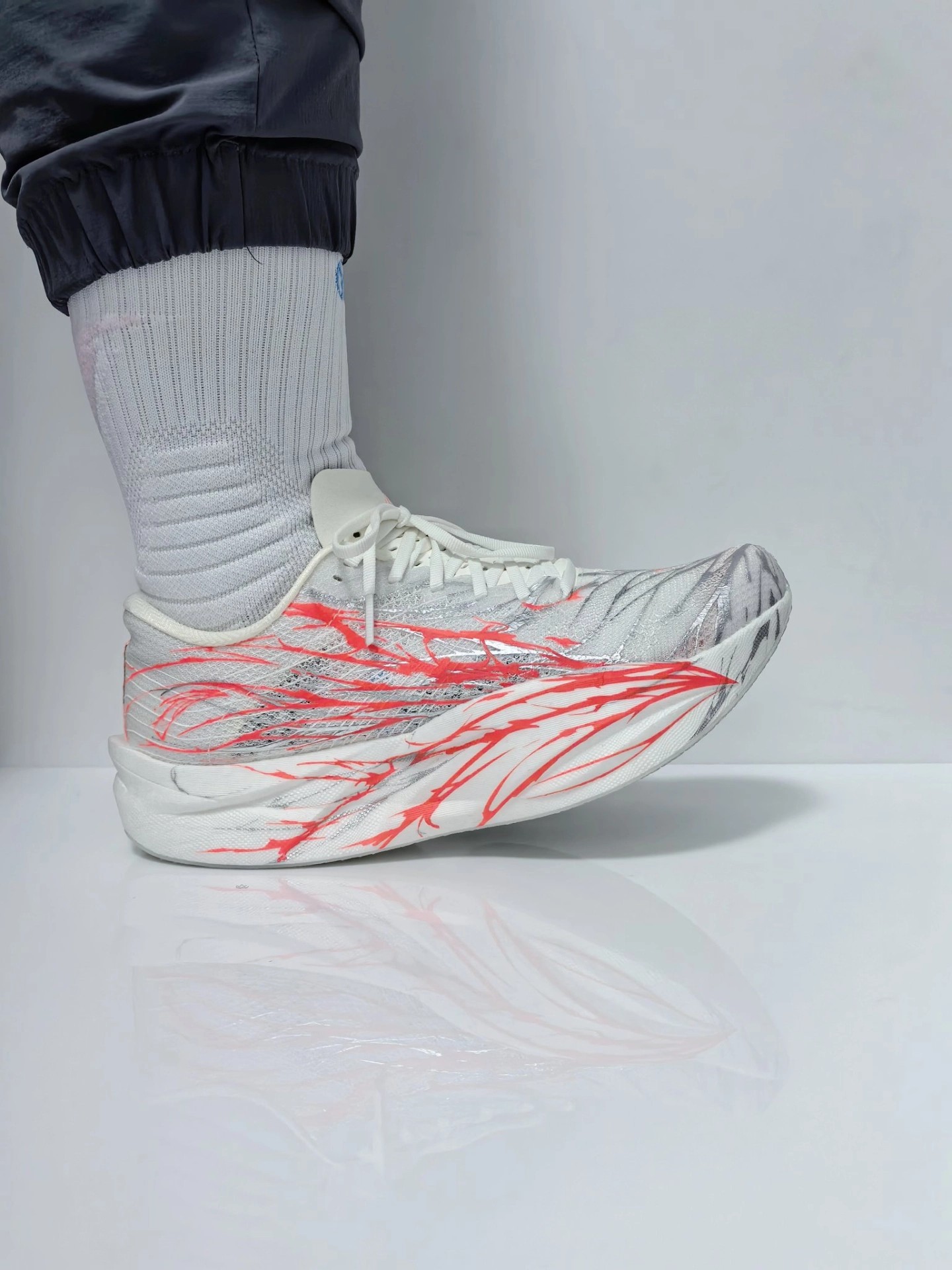 哈喽,今天我们看一双#维动 VEIDOORN 聚变pro运动袜✅ 穿上有一定厚度,不过不会紧得难受🌈 白蓝的袜子搭配椰子,在夏天还挺清爽的☝🏻 蓝色部分像一条聚变的裂纹💨 整体上脚比较贴肤舒适,也有不错的吸汗👌🏻 总的来说有性价比,穿久了也不容易臭脚 #维动聚变Pro篮球袜 #特别强推的一款袜子 #夏天宝藏运动感袜子分享 #极简夏日穿搭 #安踏心跳C2026