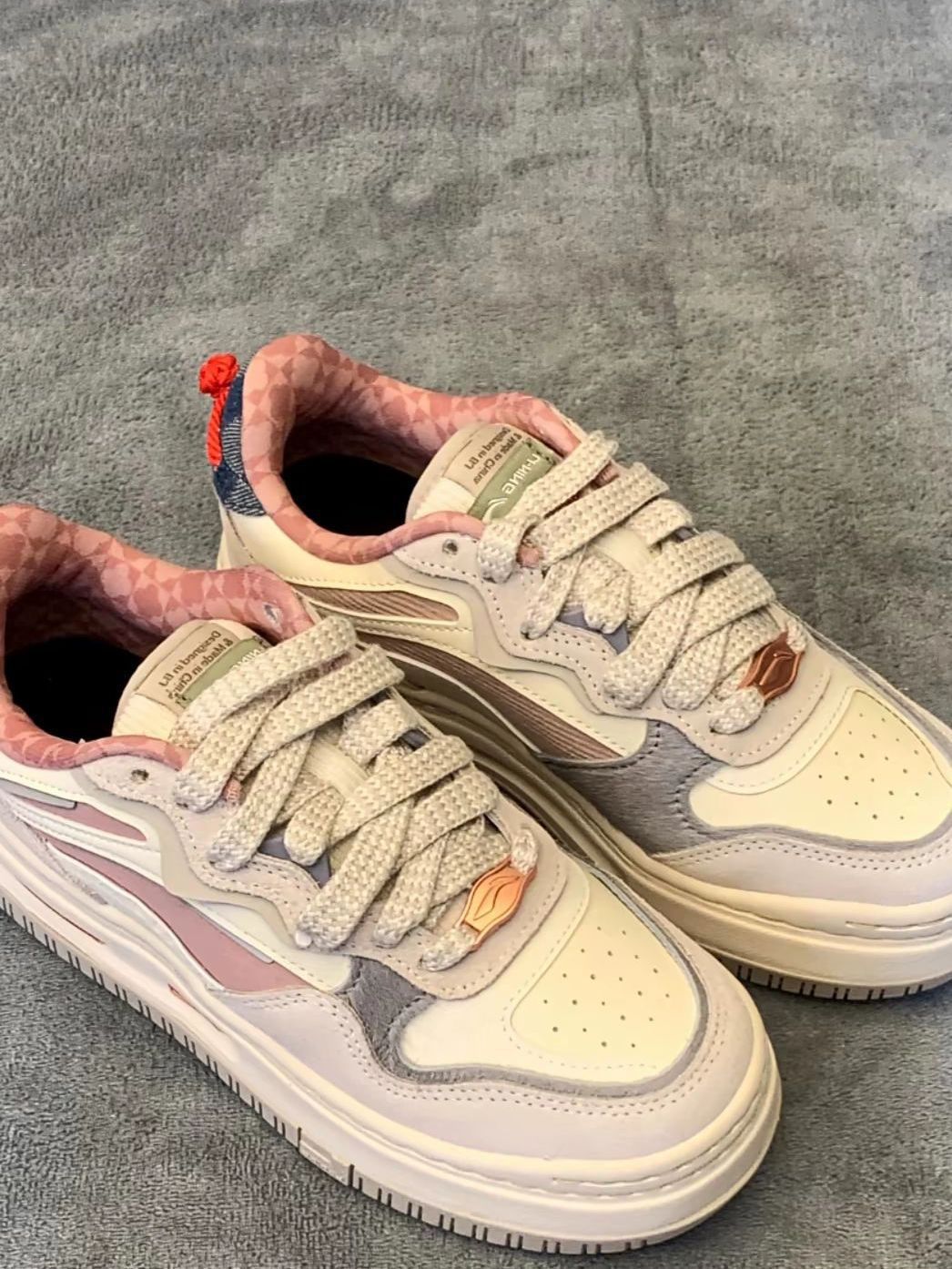 这双李宁板鞋,配色清新温柔,米白主调搭配粉色细节,甜美又不失时尚感。鞋面设计独特,层次丰富,彰显个性。舒适的鞋型搭配柔软内里,日常出行、逛街都能轻松驾驭,为穿搭增添亮点,是时尚达人们不容错过的潮流单品。