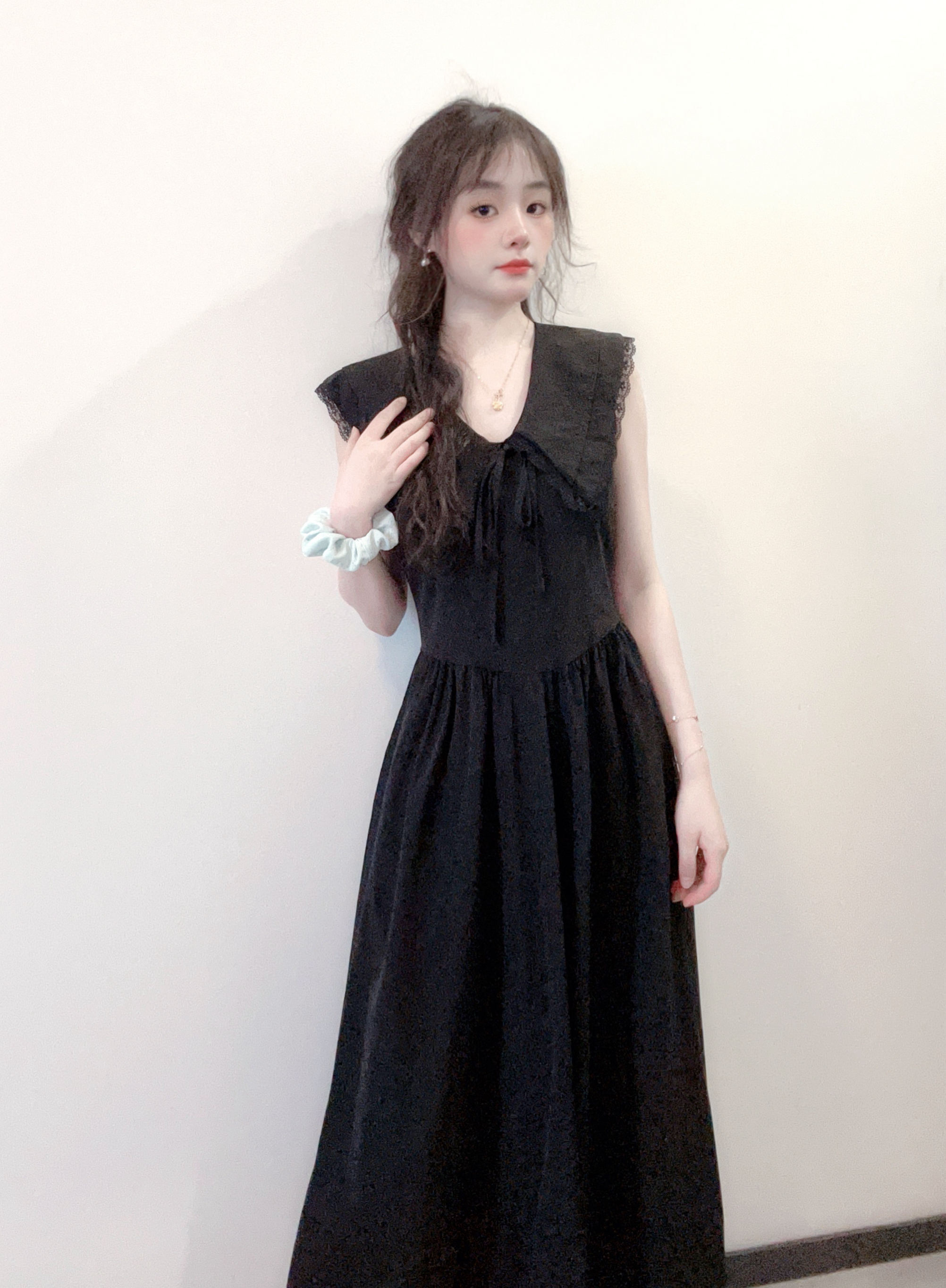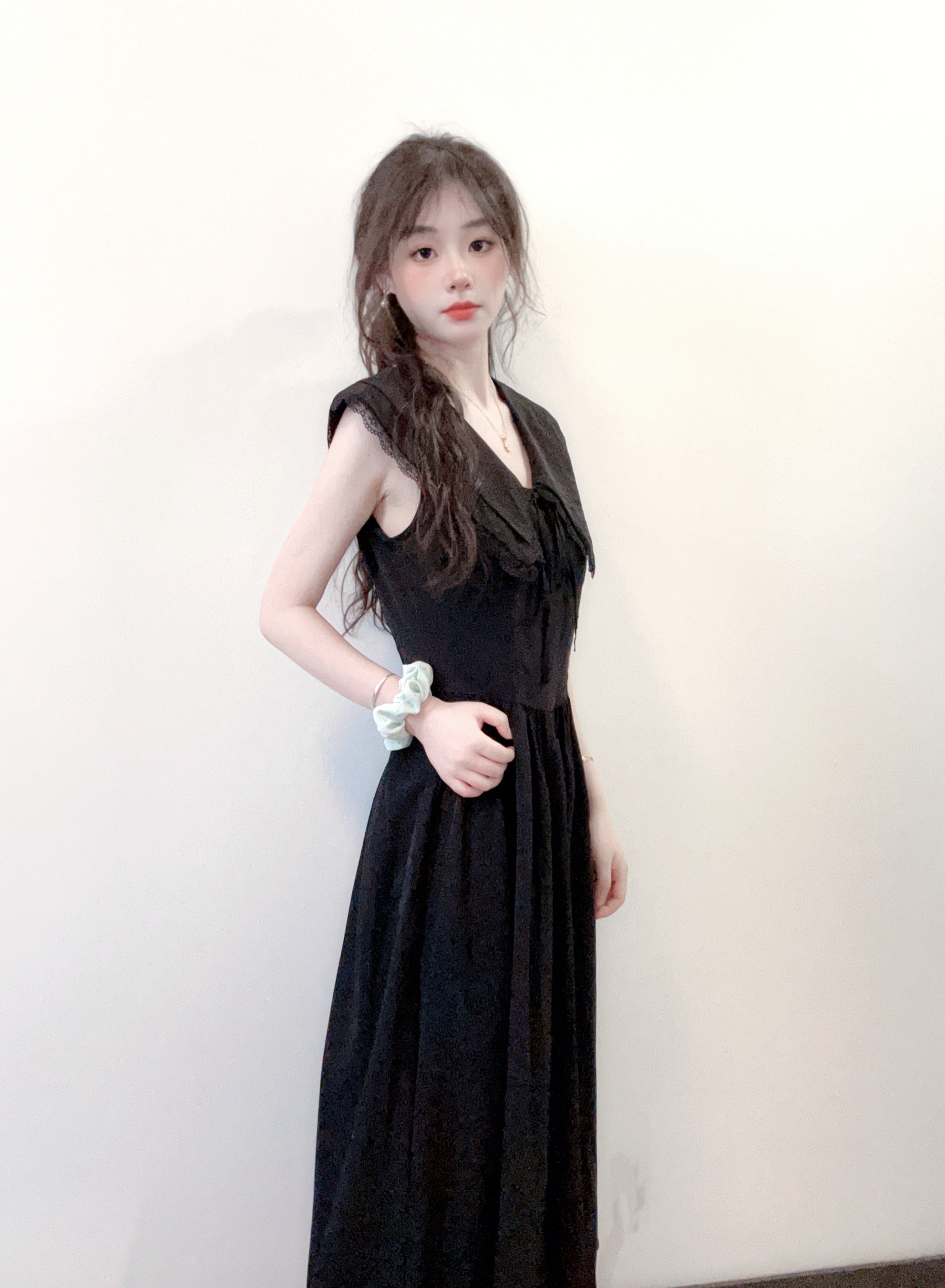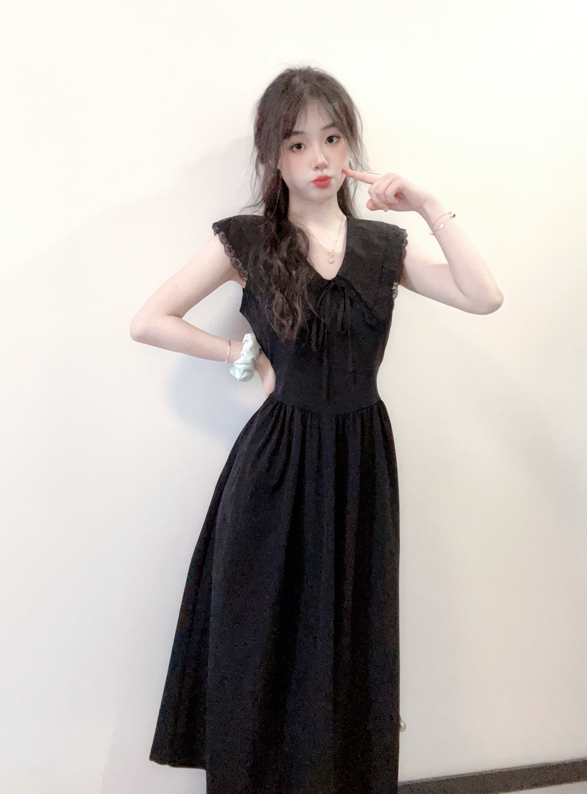 今天穿黑色小裙子欧 荷叶无袖的设计 真的看起来好乖乖女 刚好遮着胳膊上的肉肉 腰部是收腰设计的 就可以很好隐藏小肚子😍 我158 裙子长度正好遮住小肚子 这款料子还很透气 夏天不用怕闷欧 是麻麻喜欢的穿搭 哈哈