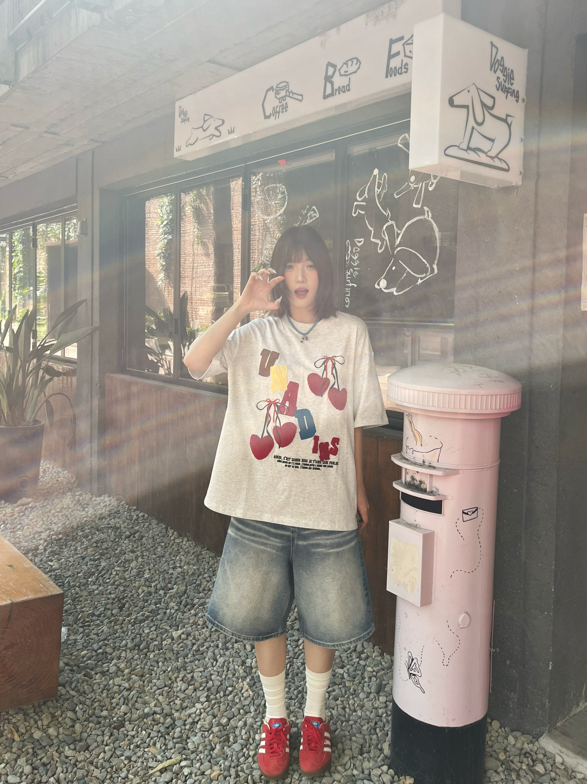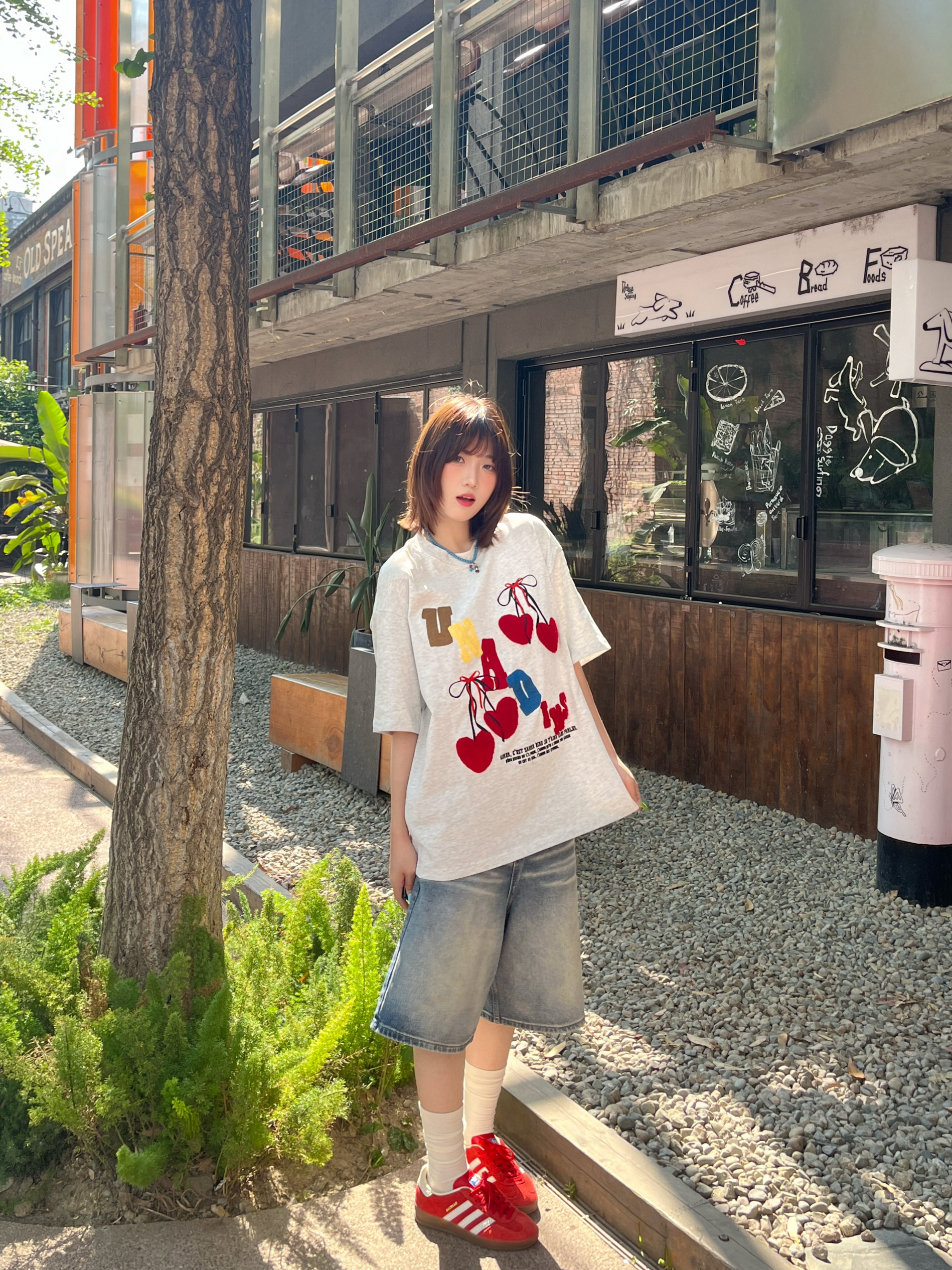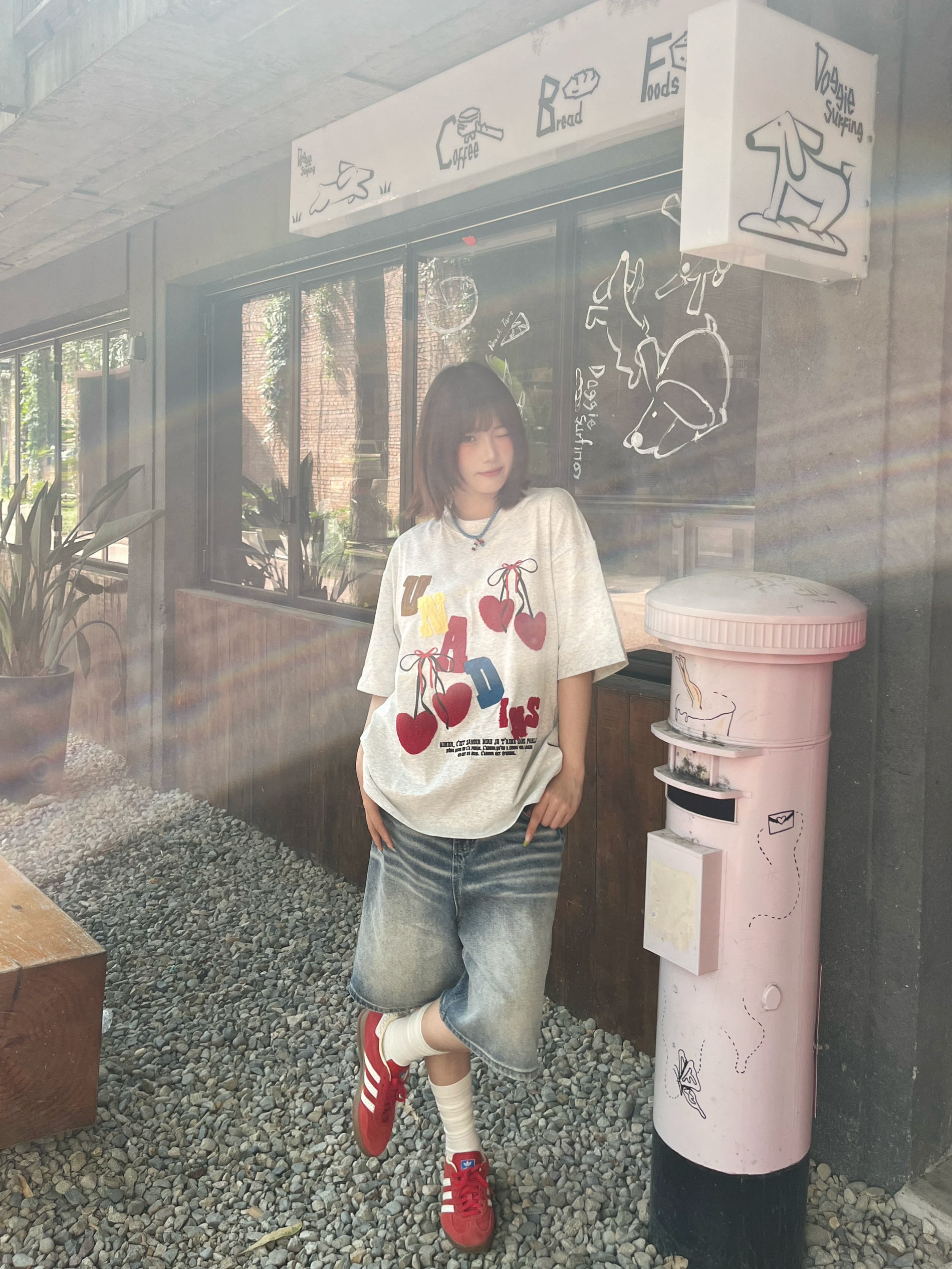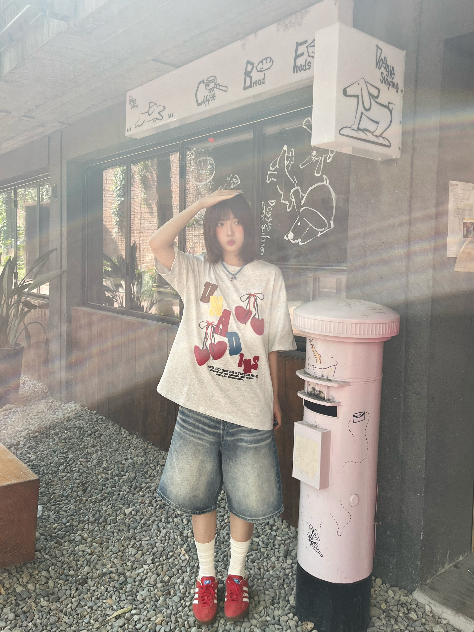 说到美式复古当然得穿红色吧~ 红色刺绣的宽松T+牛仔5️⃣分裤+红色阿迪,这个夏日穿搭我就这样穿!好酷啊啊