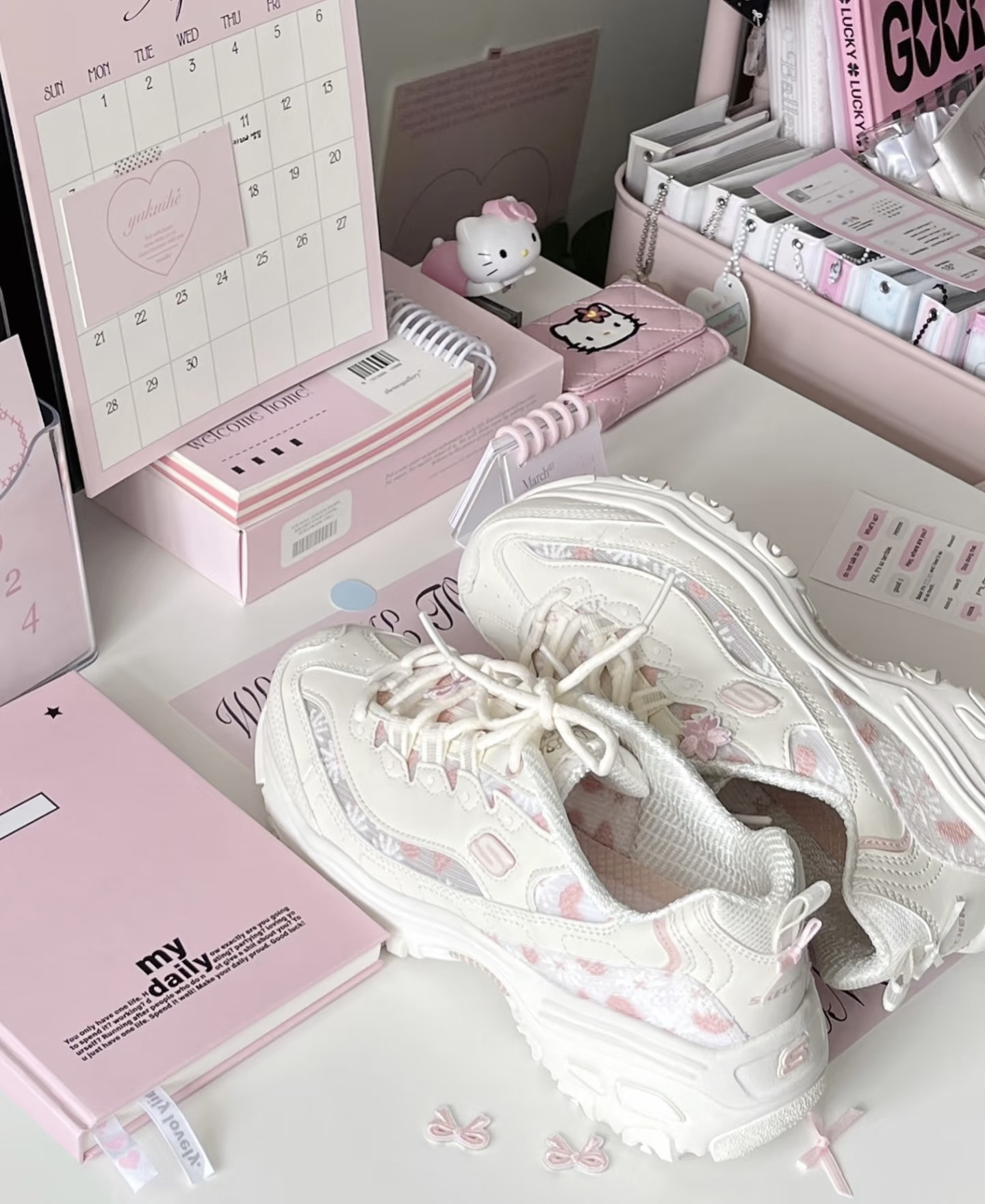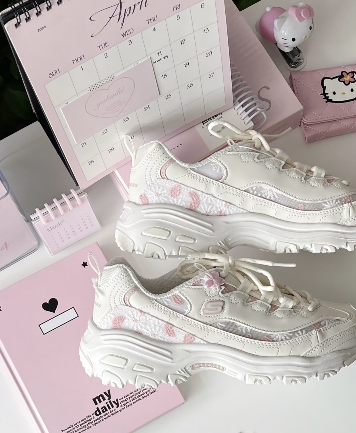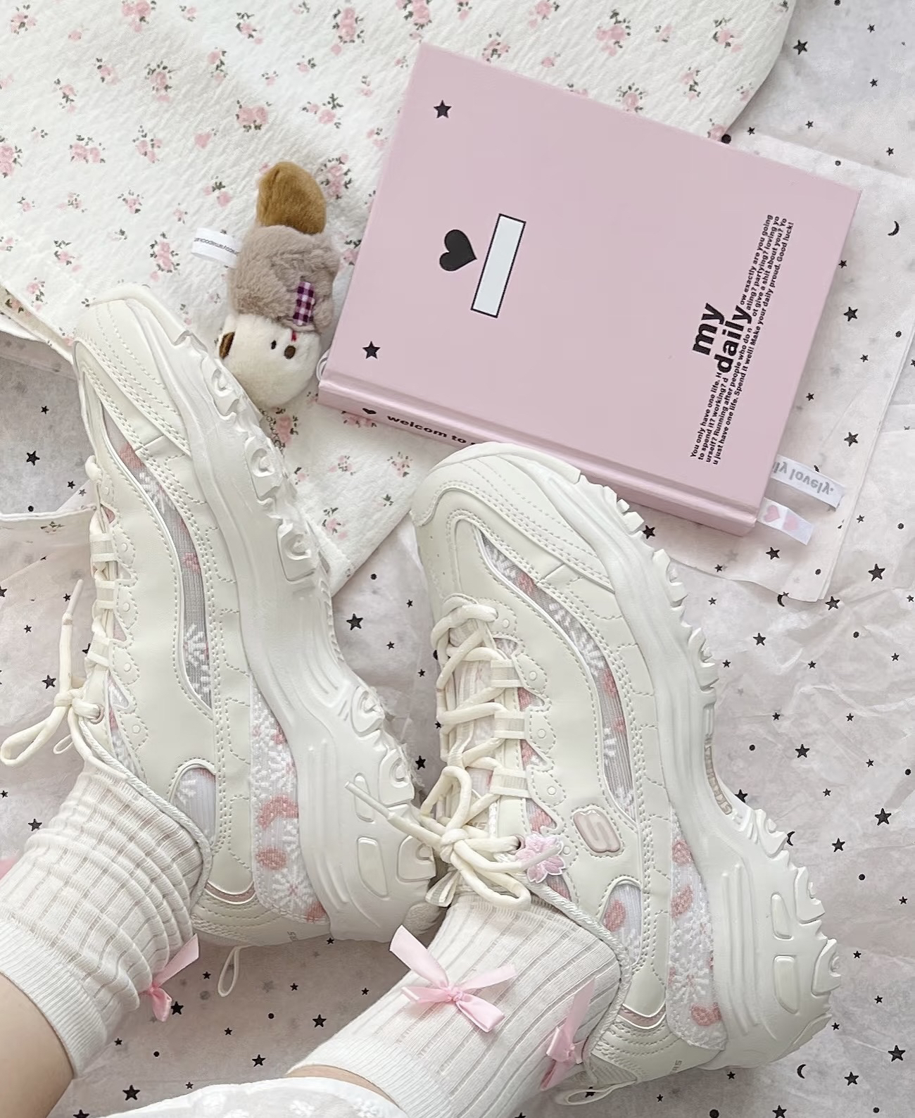 少女心又被斯凯奇花海熊戳到啦💕 淡淡的少女粉 一看就是我的颜色🩰~ 小雏菊刺绣&网纱 尊嘟好适配春夏!🌼 透气又舒服呀💭 4cm增高🤩敲显腿长!!但脚感很舒适哦不会累~(^з^)-☆ 春夏就是要穿出活力感呀💐 和小姐妹穿着一起拍照打卡也超出片捏