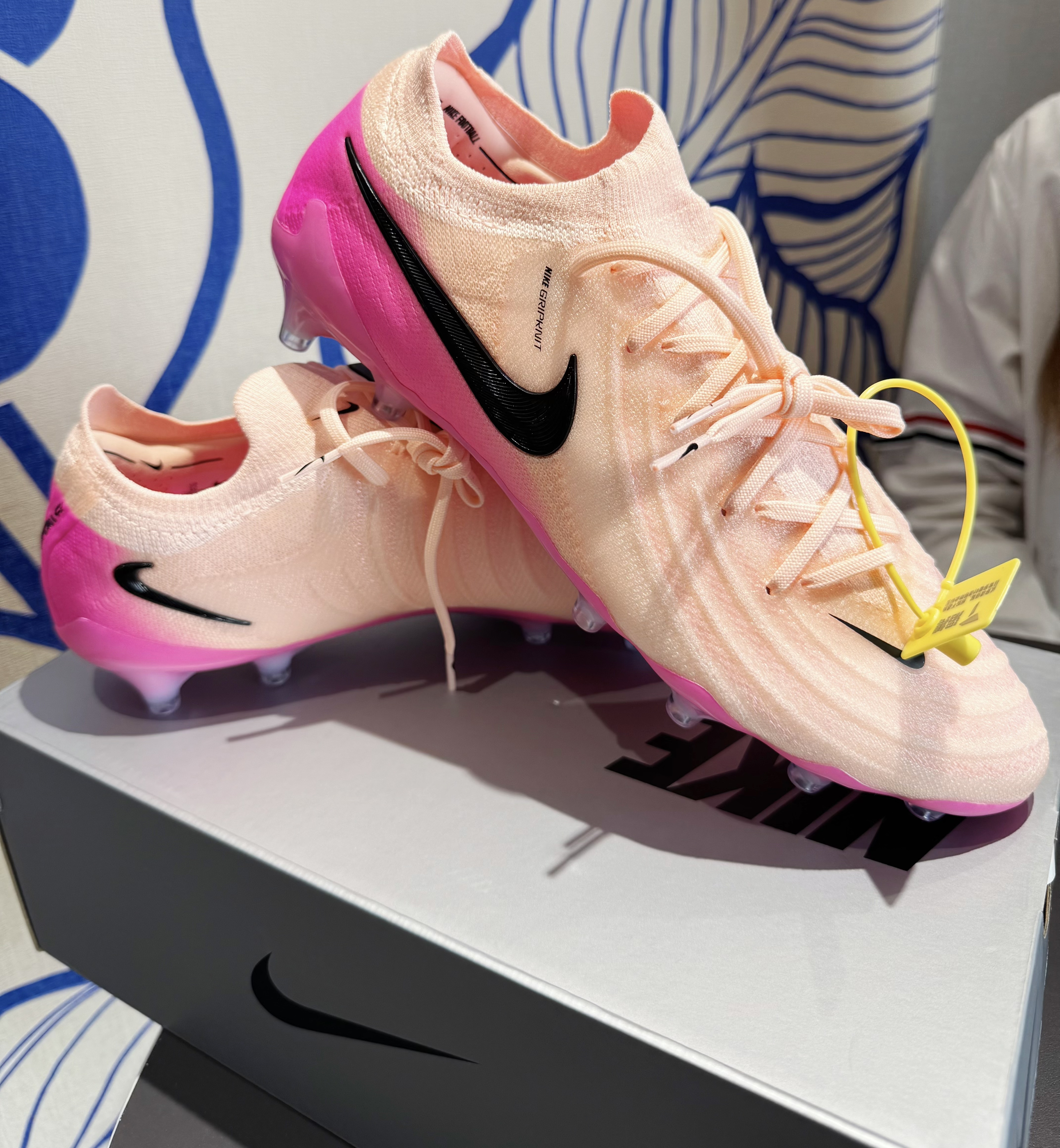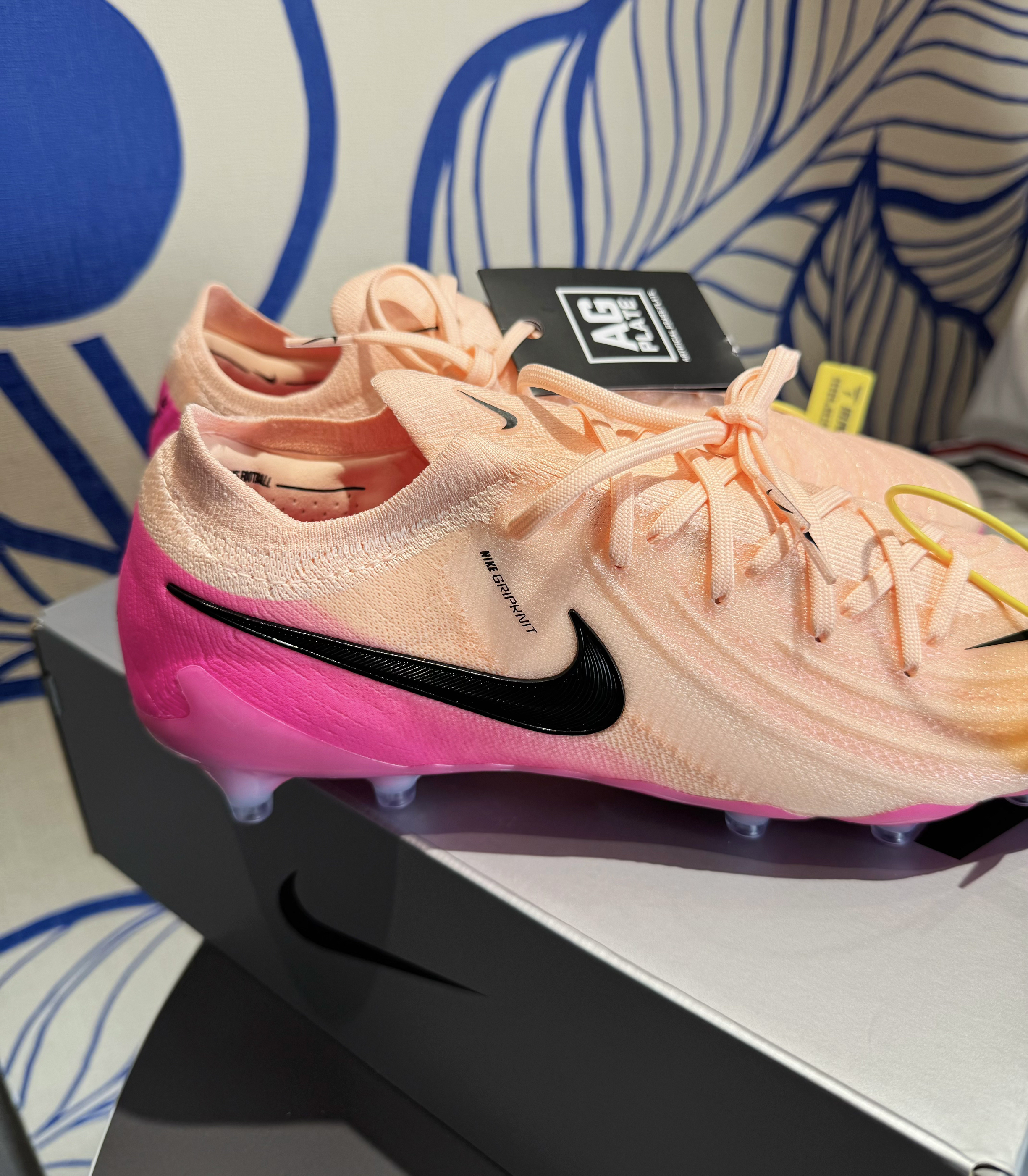 落日橙实物太美了 耐克PHANTOM GX2 ELITE高端AG 整体鞋面采用了粉色的渐变,以黑色作为点缀 性能方面Gripknit2.0微粘鞋面+环形鞋钉 没有男孩子能拒绝🥰🥰