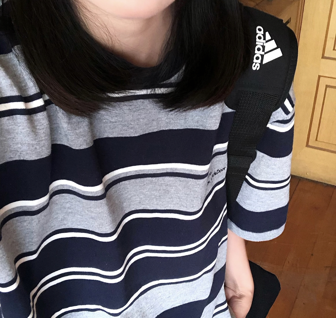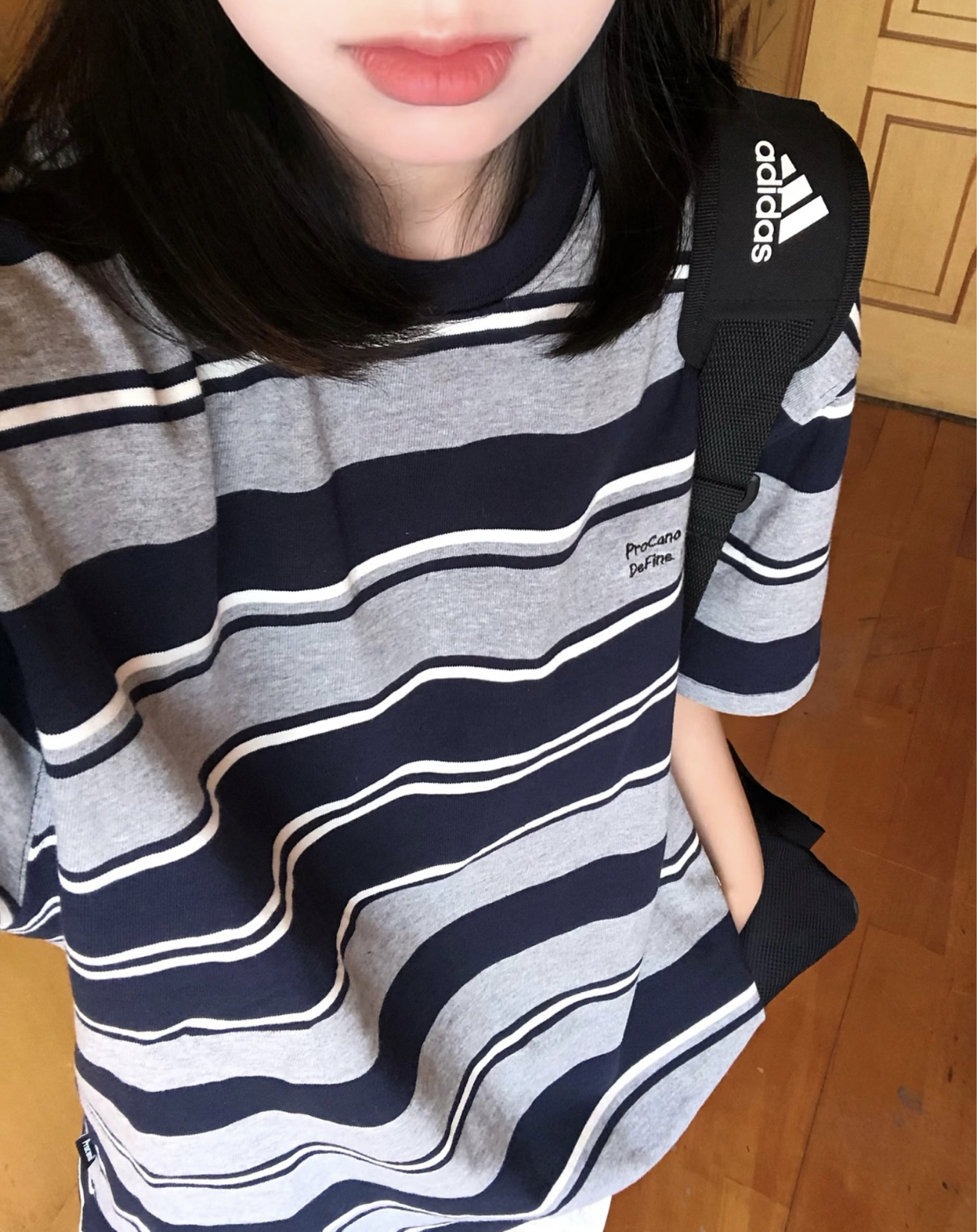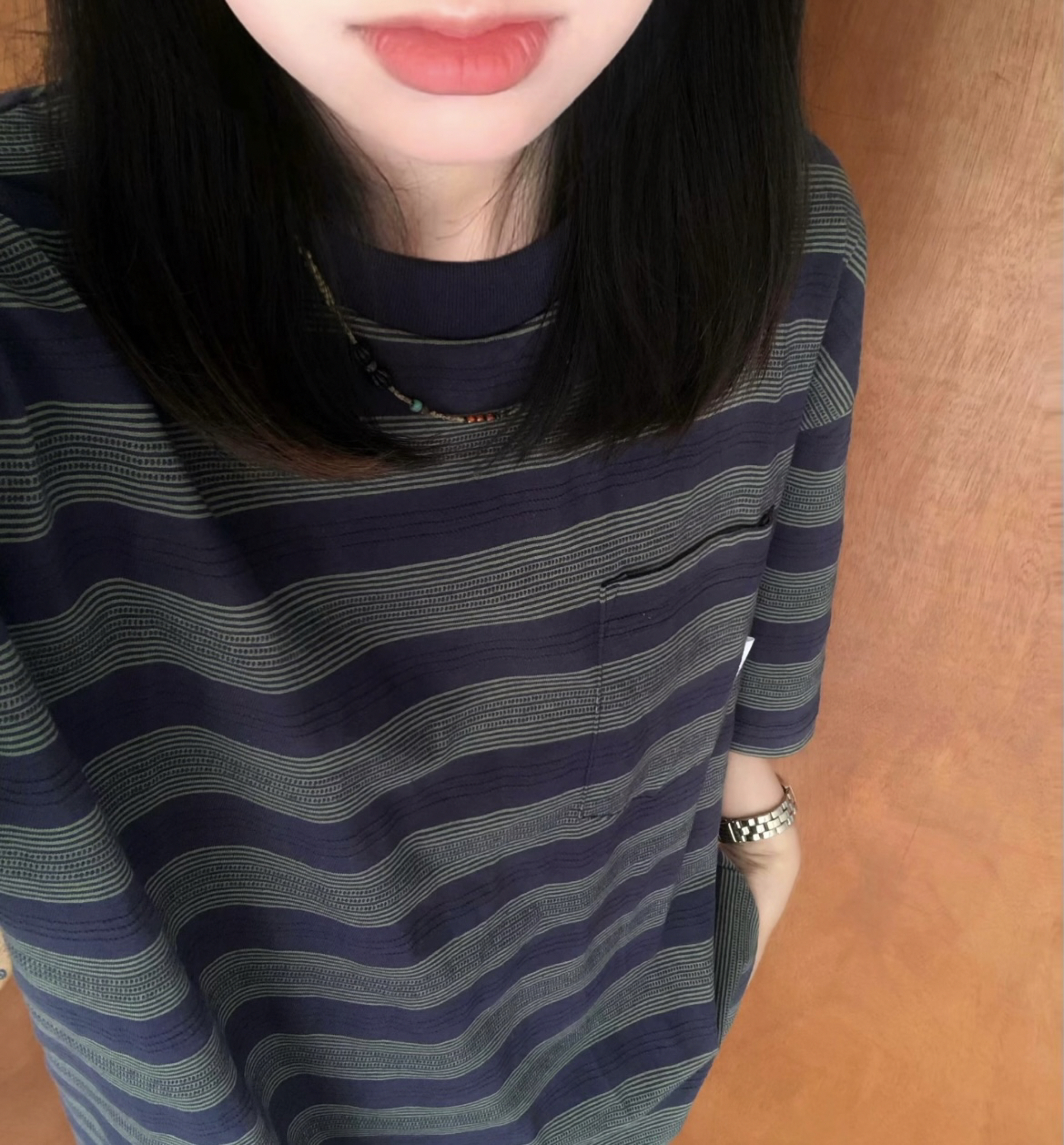 灰色条纹短袖真的好好看啊 复古风的感觉 真的很绝绝子 建议大家购买