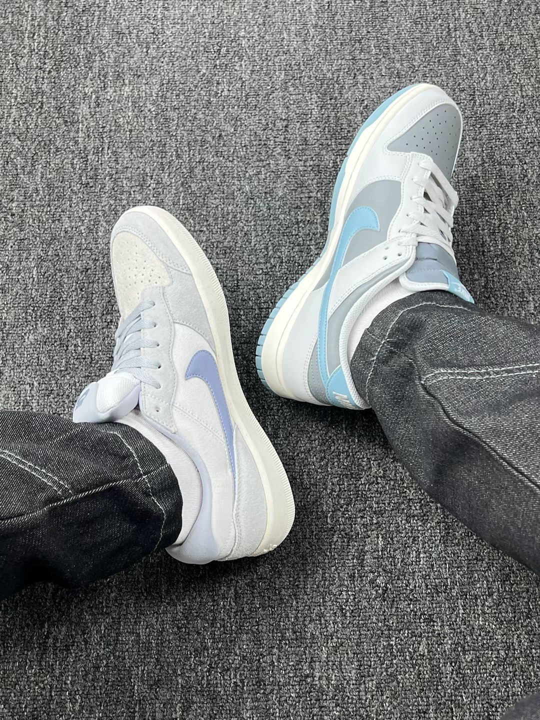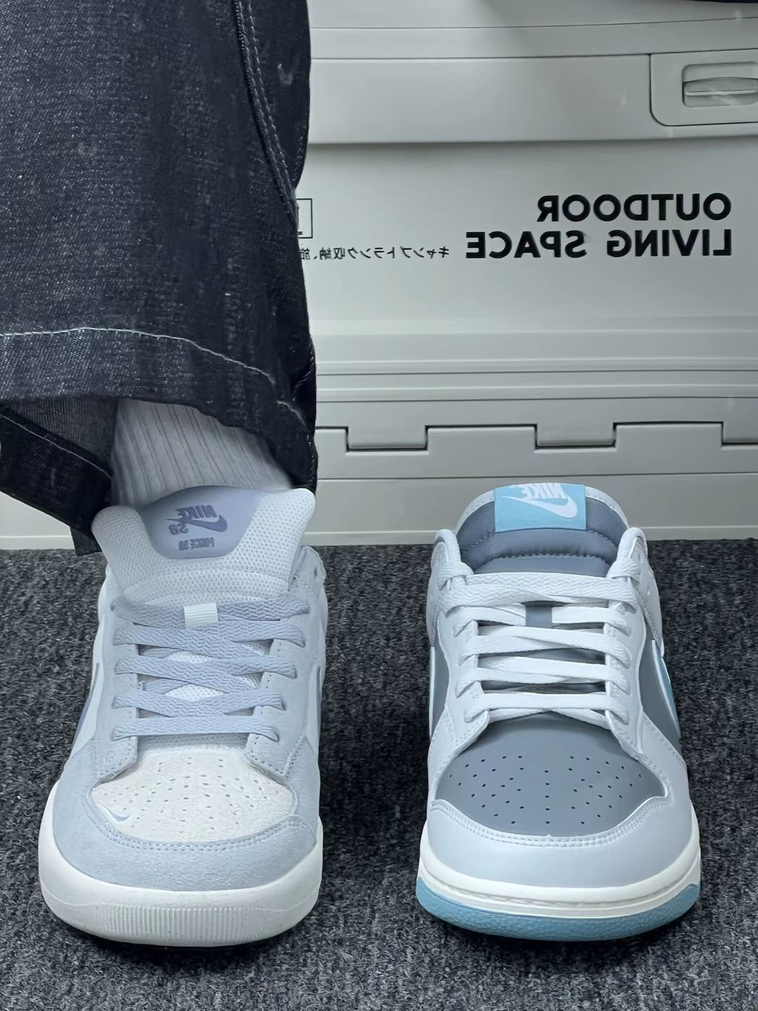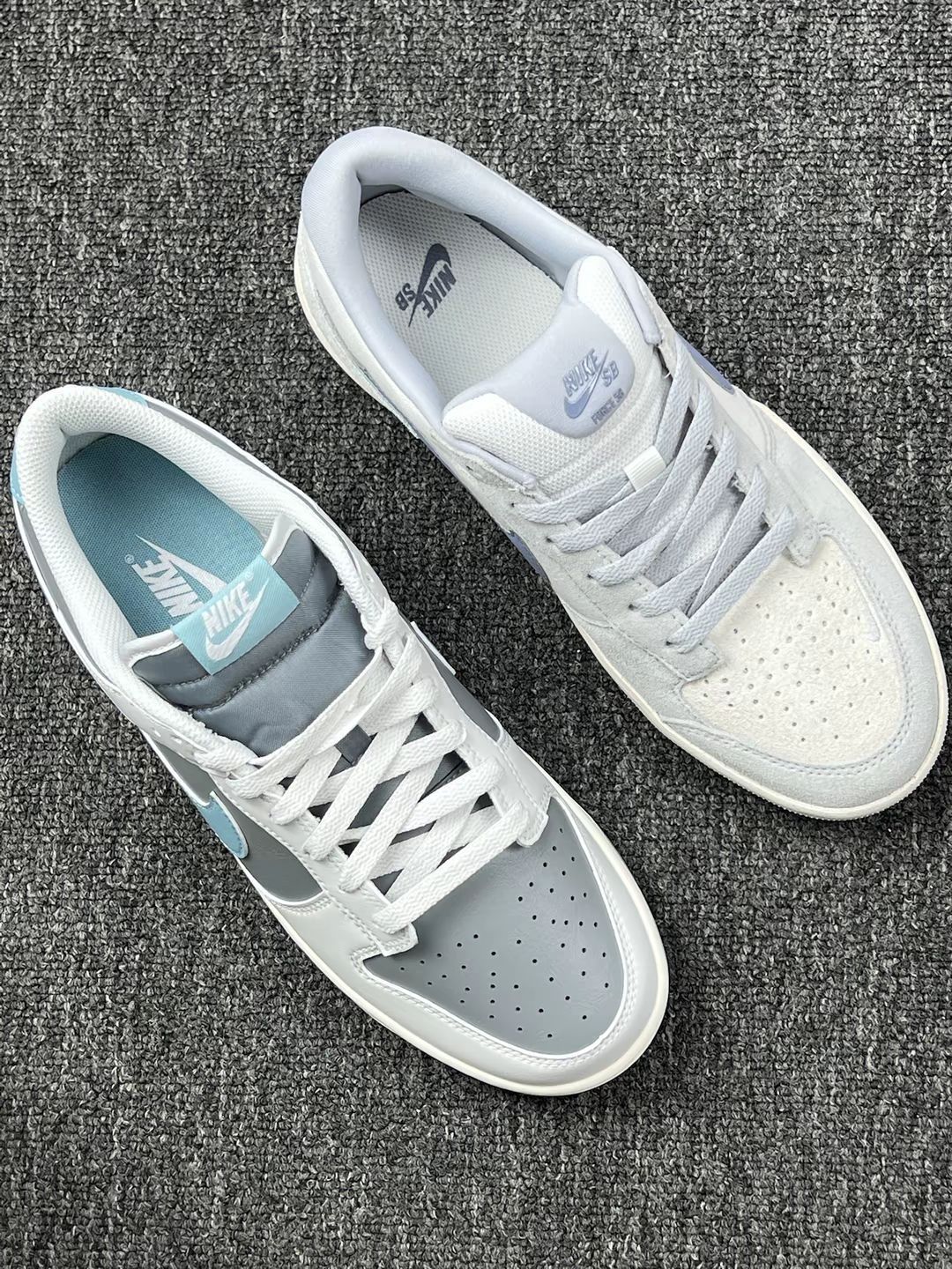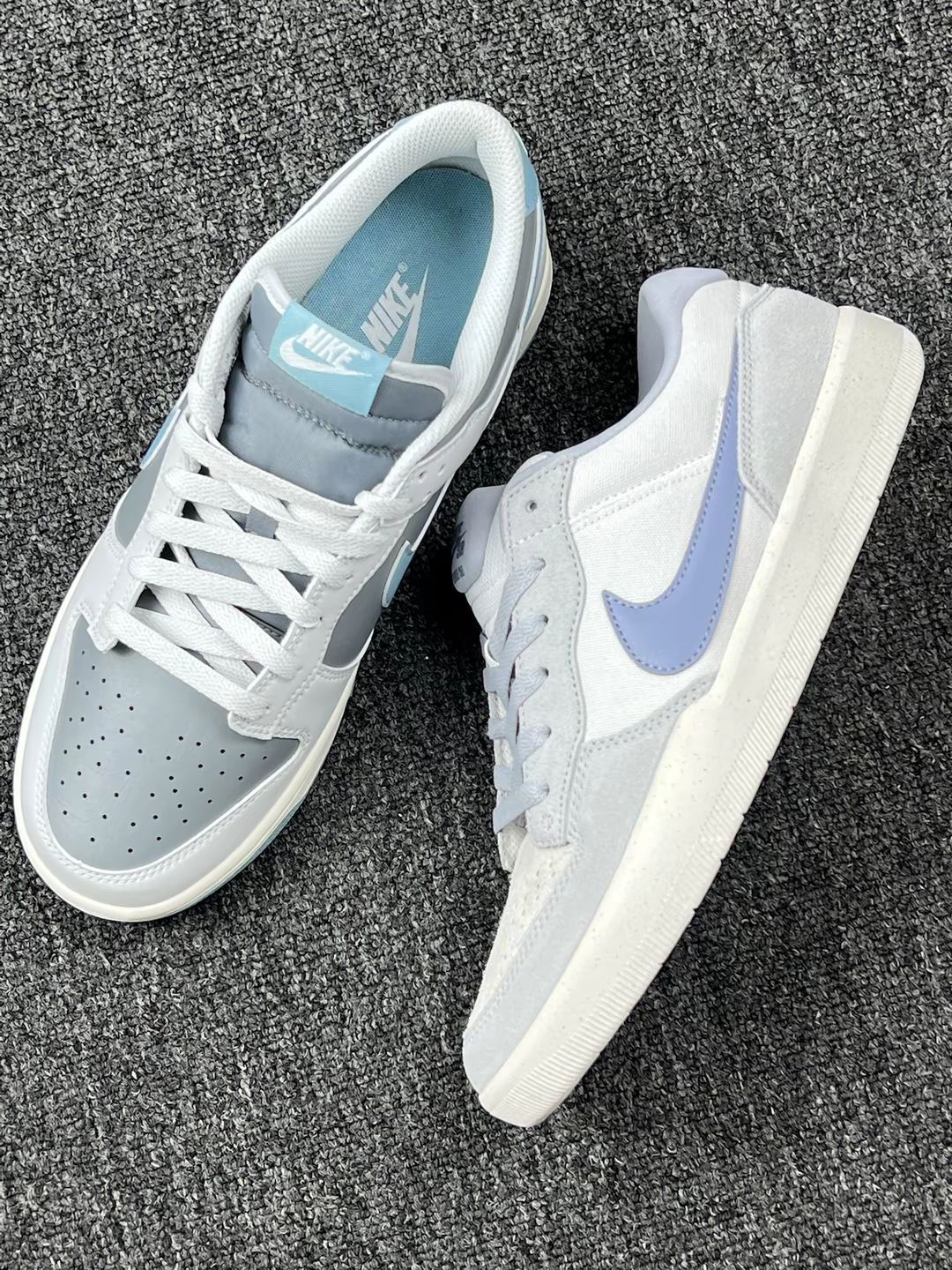 这两双鞋都已经穿了一段时间了,今天就来分享一下我的真实感受😊 先说颜值🤭 紫SB Force 58是温柔挂的,深紫麂皮配同色钩子,鞋舌和内衬也跟着走浅紫调,搭配浅色牛仔裤、碎花裙,氛围感足,出门总被问链接😬 蓝灰Dunk low更低调,鞋头是浅灰皮革,侧边的勾用了清新浅蓝,鞋跟麂皮也是浅灰调,拼接起来利落又清爽😁 再唠脚感😊 俩都挤脚!紫色的鞋头尖,穿38码脚趾头快蜷成一团,走半小时就疼; ...