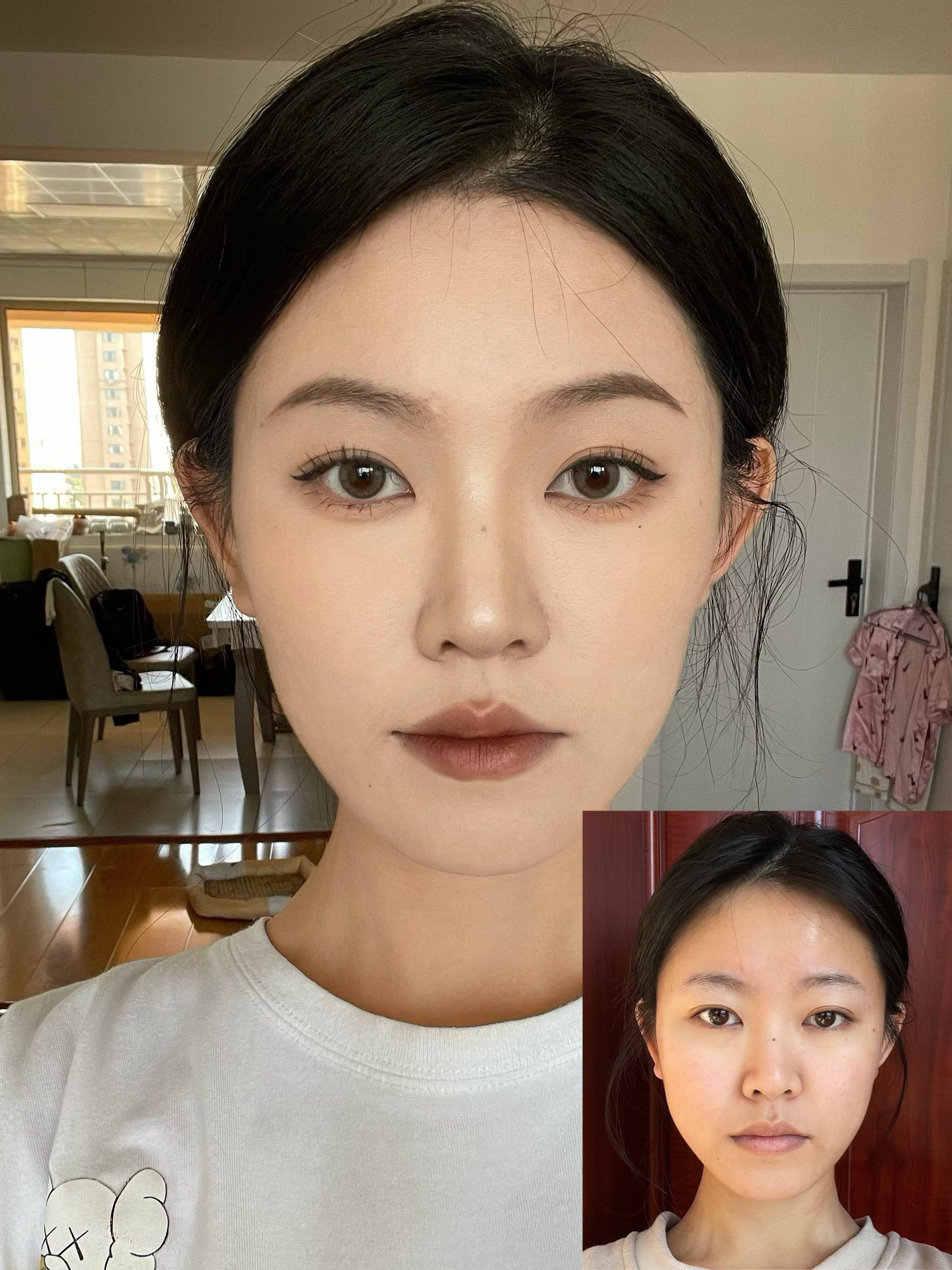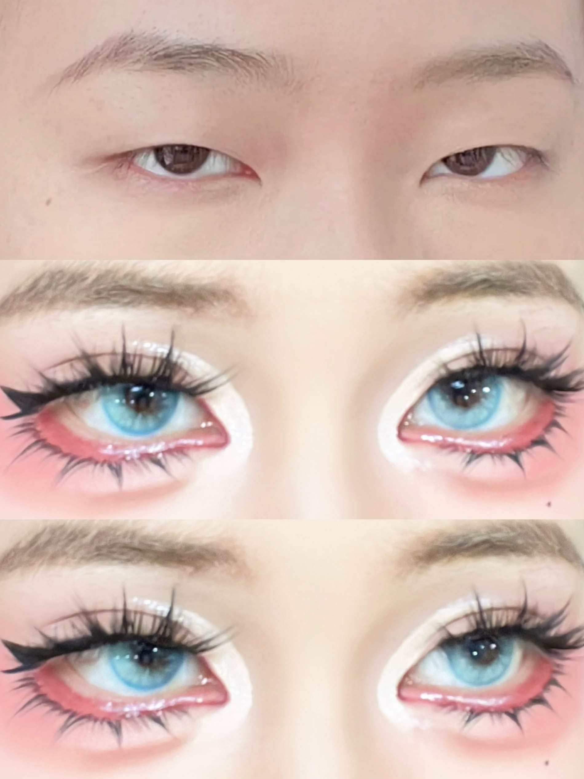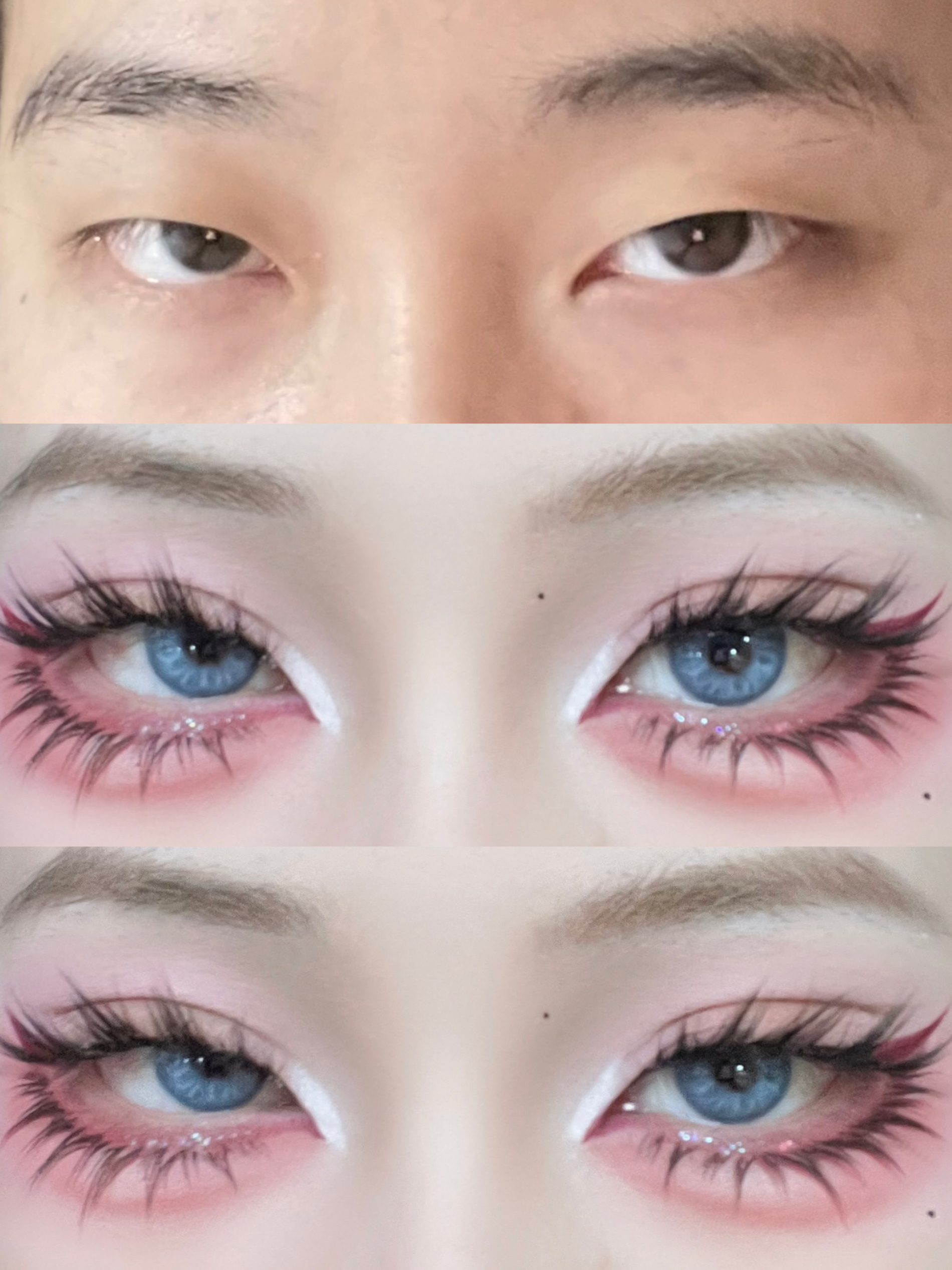 原来单眼皮学会化妆之后变化能这么大 用双眼皮贴贴出平行双眼皮放大眼睛 然后贴这种上镜浓密的假睫毛 芭比感拿捏