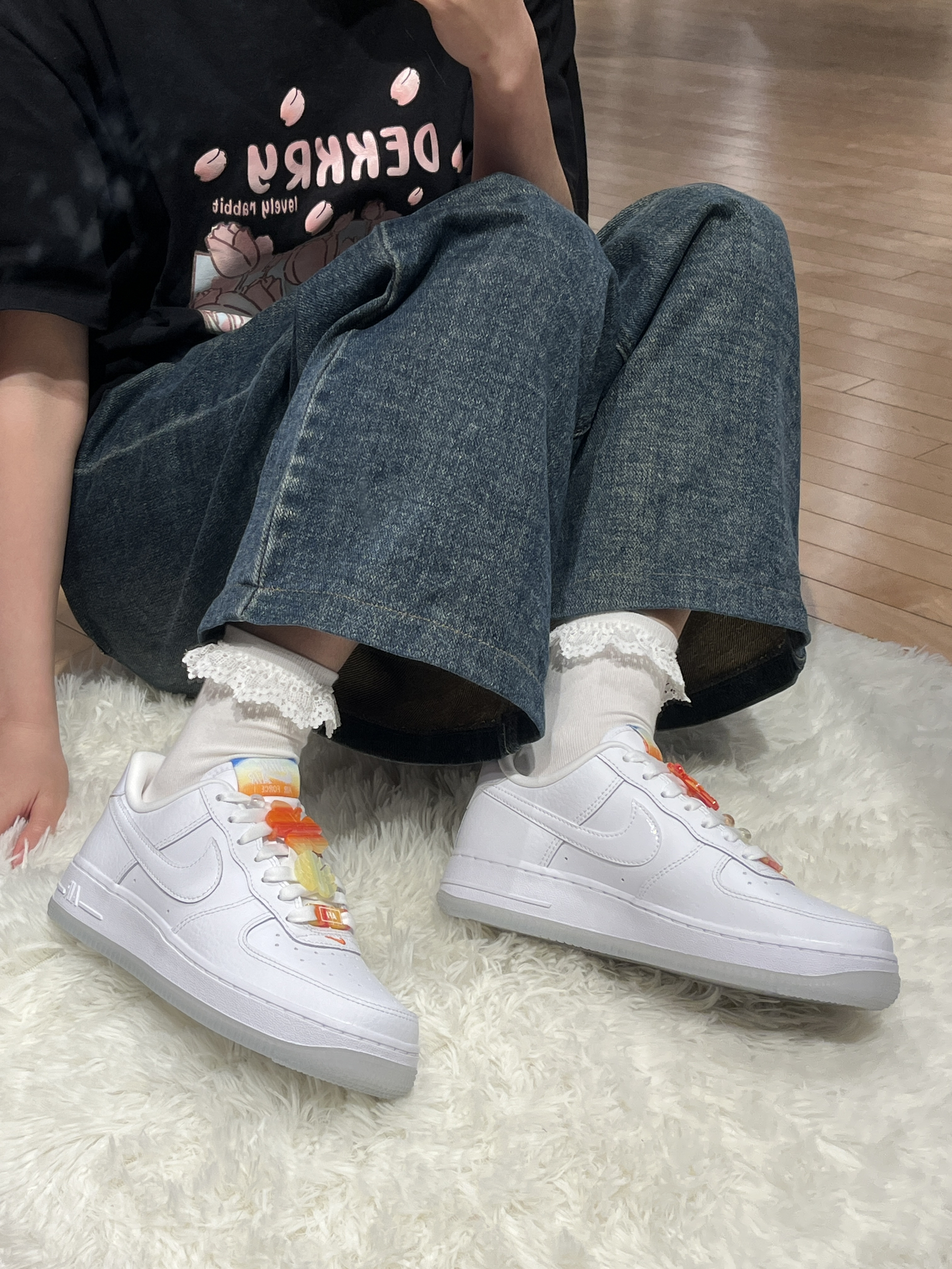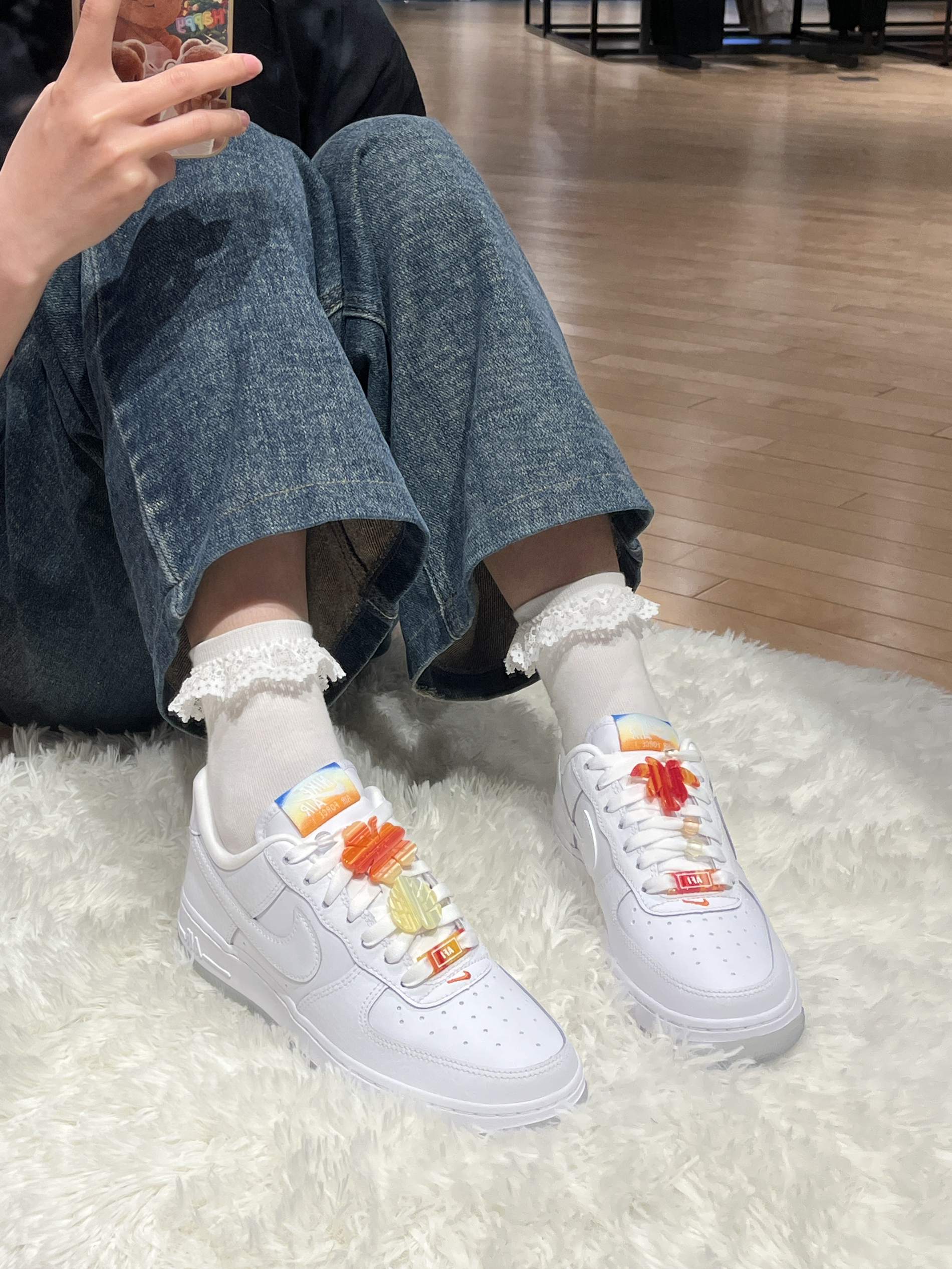 AF1小白鞋 热带风情暴击! 宝子们!被这双AF1小白鞋美晕😍!纯白荔枝皮质感超绝,柔软不闷脚,百搭王者实锤!最绝的是可拆卸热带配件🌴🌺,棕榈树、花朵、珍珠随意搭,海岛度假风、都市时髦感一键切换,一双鞋穿出新高度,速速拿下! #nike #空军 #鞋控的日常