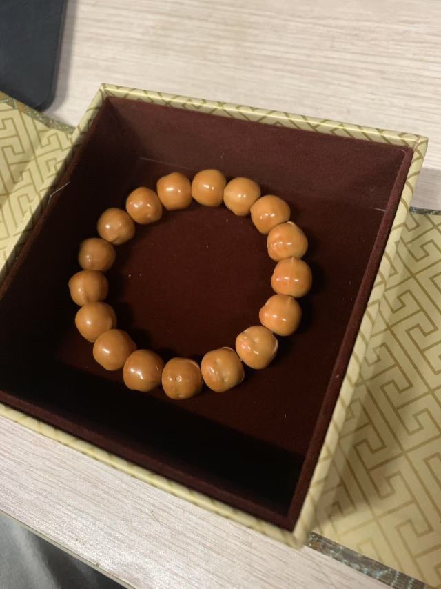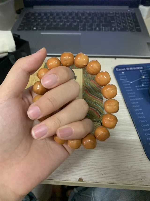 盘玩有段时日的猴头手串,包浆初显温润。闲暇时盘捻,感受珠子在指尖流转,日子也慢了下来,这抹温润棕黄,是时光馈赠的小美好,戴着它,连岁月都有了具体的触感 。
