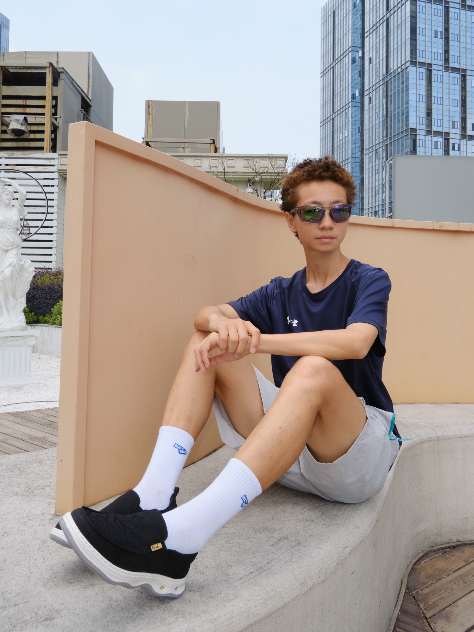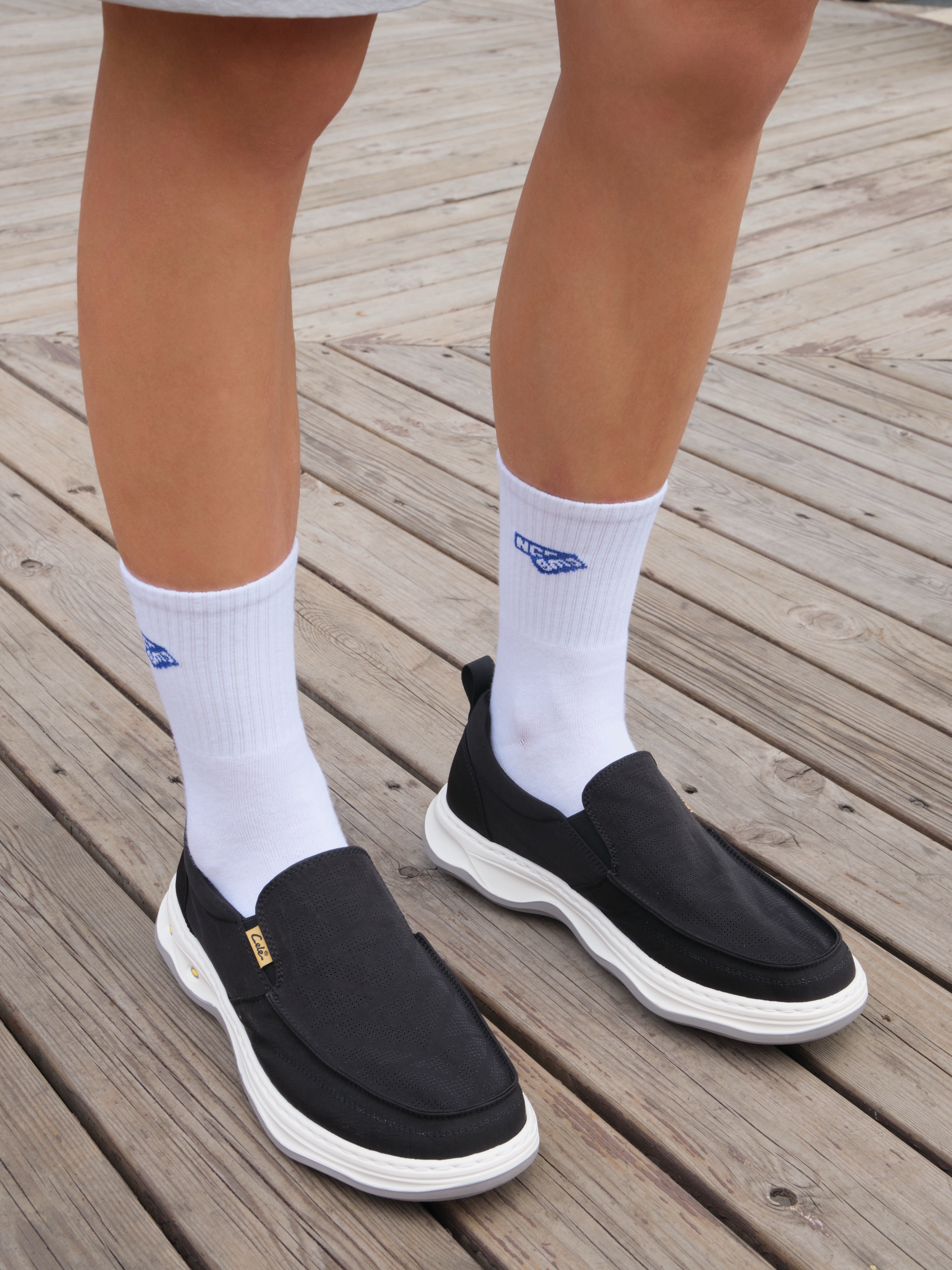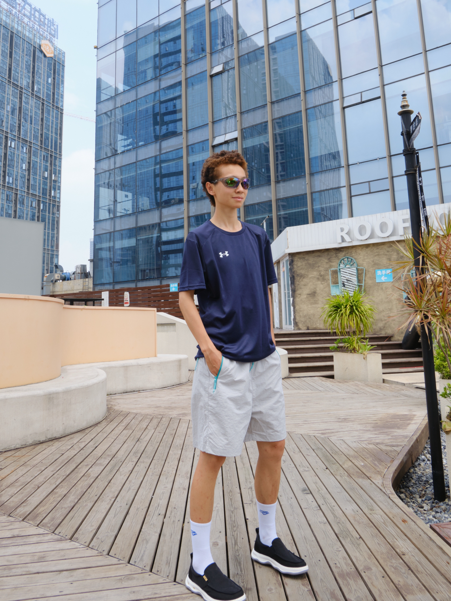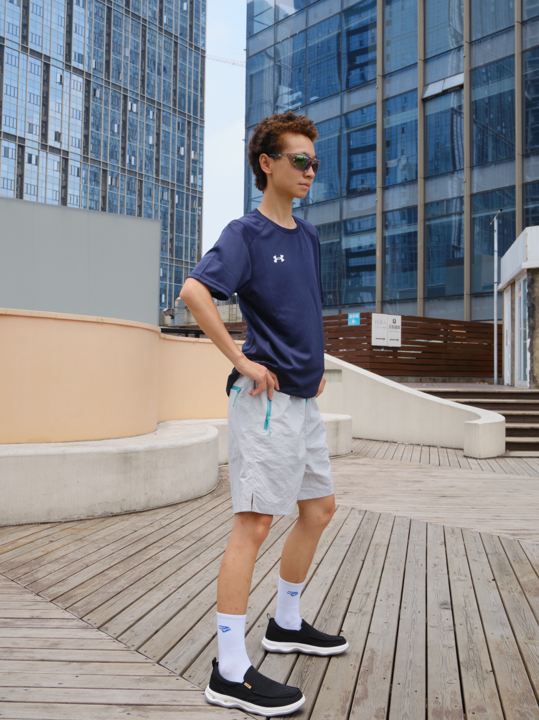 L欢迎进入无敌小圆哇子的穿搭分享频道🔥 172CM|55KG 👔:m👖:m|👟:39码 🌿 今日份上脚 清爽松弛感 CELE黑鞋低调的灰白黑色系自带清凉滤镜 通勤挤地铁不闷脚 夏日出门穿搭10秒出门 速干衣穿上 搭配灰色短裤 穿上黑色一脚蹬!!!gogogo 戴上墨镜 出门