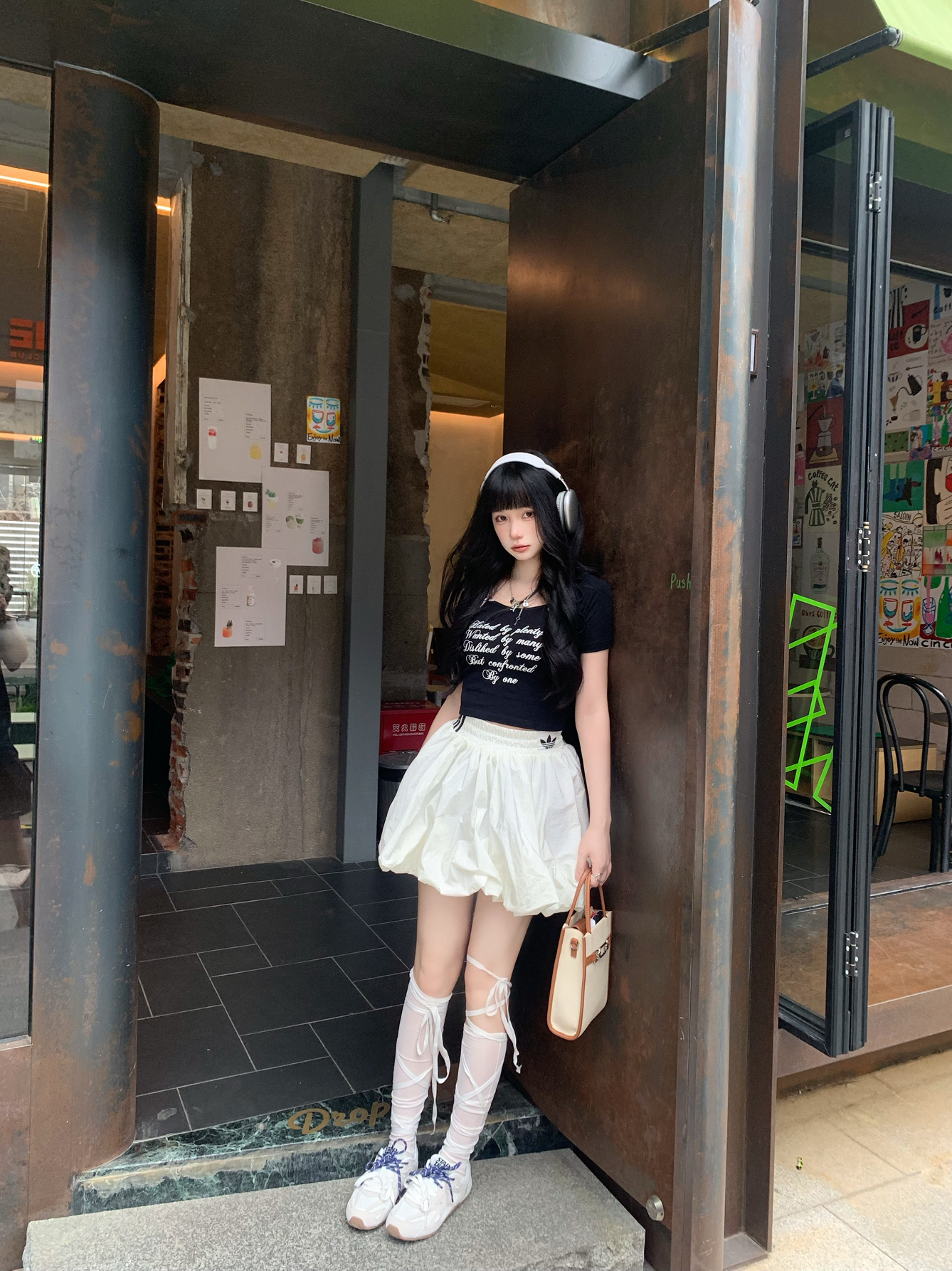 一股青春气息扑面而来,整个穿搭都显示出一股青春的美感和对青春的良好感受。
