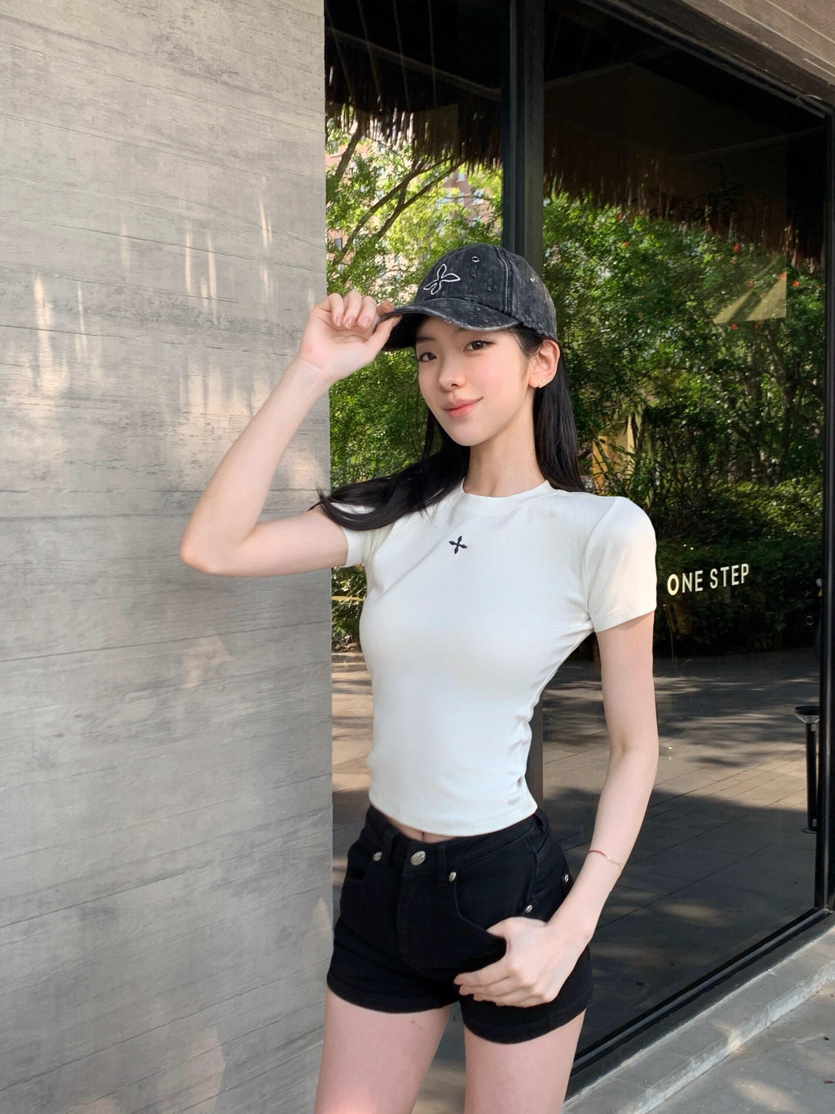 本篇笔记关联了【沈羽洁同款】SMFK 十字徽章刺绣透气纯色修身收腰圆领短袖T恤 女装 DT008B1 牛奶白等商品,为用户提供真实的使用体验和购买参考。
