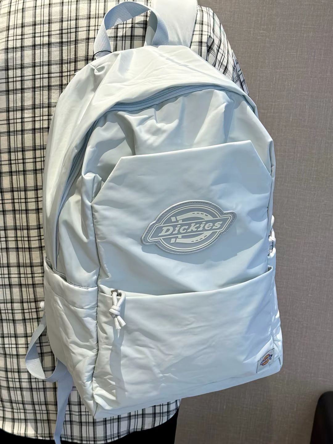就素这只Dickies双肩包诶 冰川蓝有亿点点好看呀 感觉夏天背尊嘟蛮清爽滴 书包的容量敲大 我的日常用品一包就能装下 上身也hin百搭好看 我觉得上课或者出去玩背着都hin不错捏
