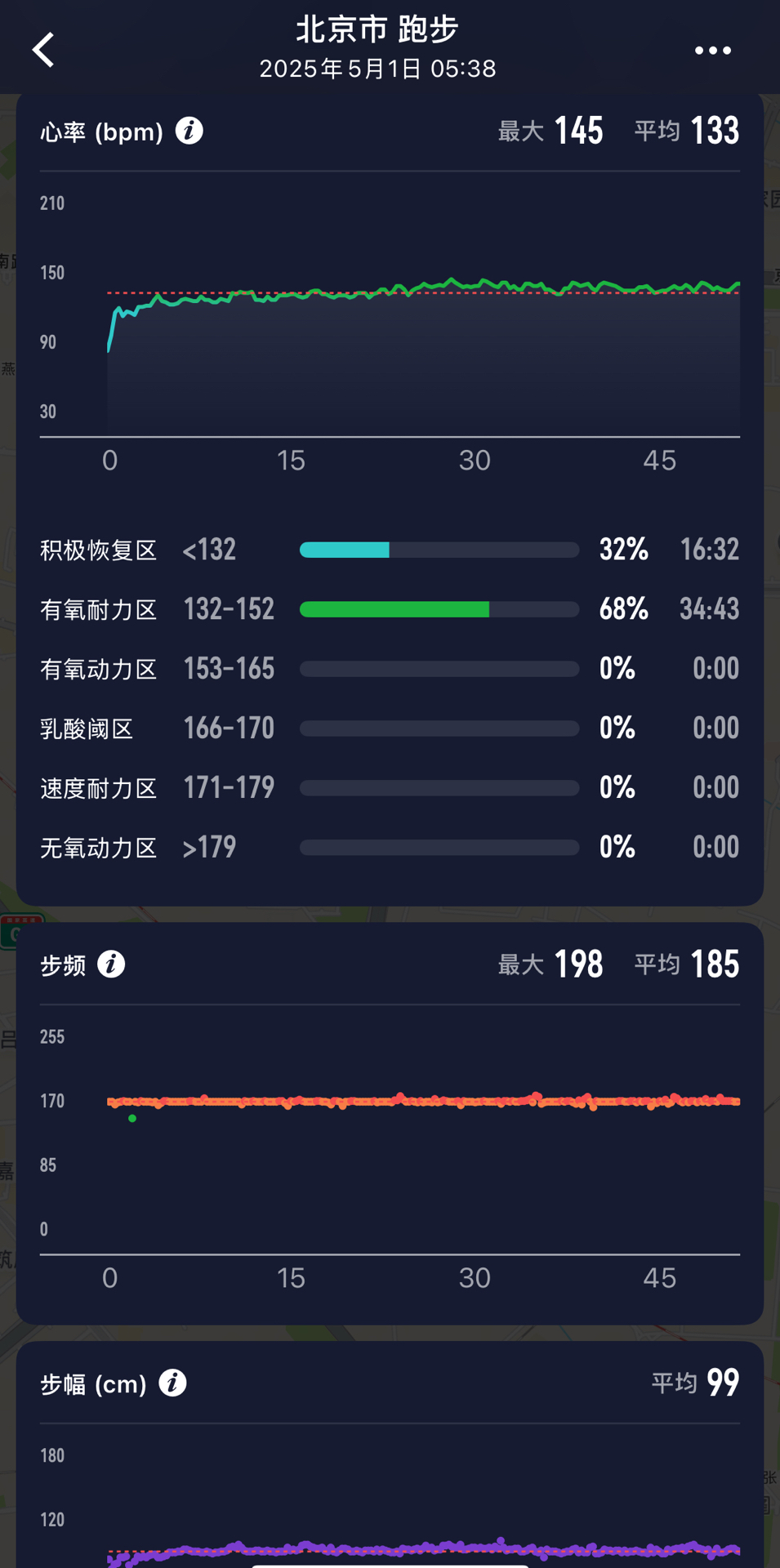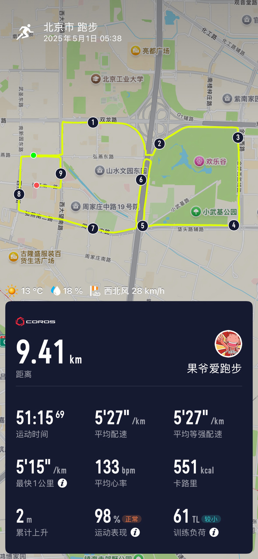 五一期间大家都选择出游,而我选择留京加班和跑步,五月的第一天选择低心率有氧慢跑,坚持科学训练,今天尝试了一条新的路线,距离9.41公里,平均心率133,平均配速5分27秒,北京的春天太短暂了,转眼就要立夏了,提前秀一下今日我跑步的夏日穿搭: 👕轻功速干衣 🩳轻功5分紧身裤 👟特步两千公里 图片源自网络侵删