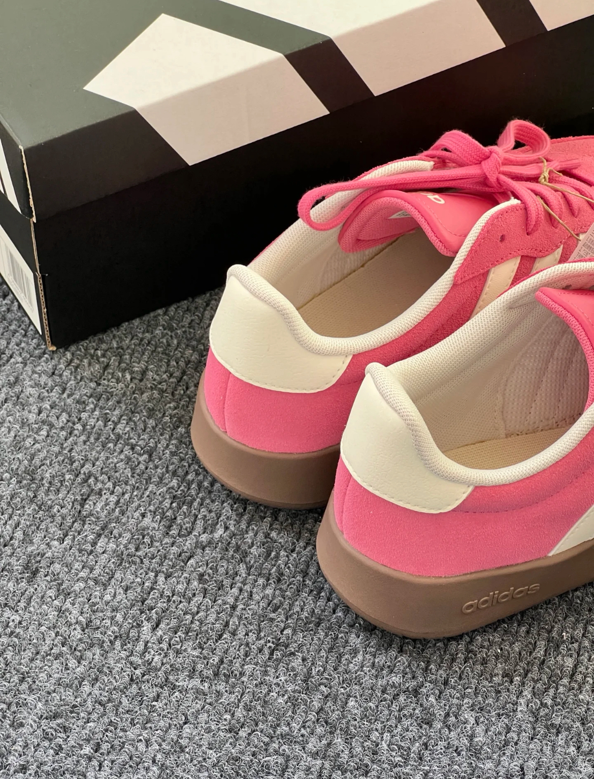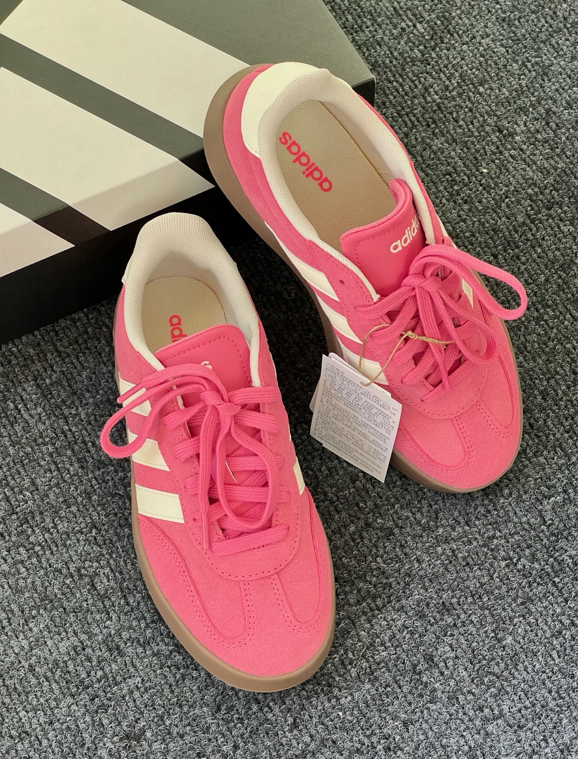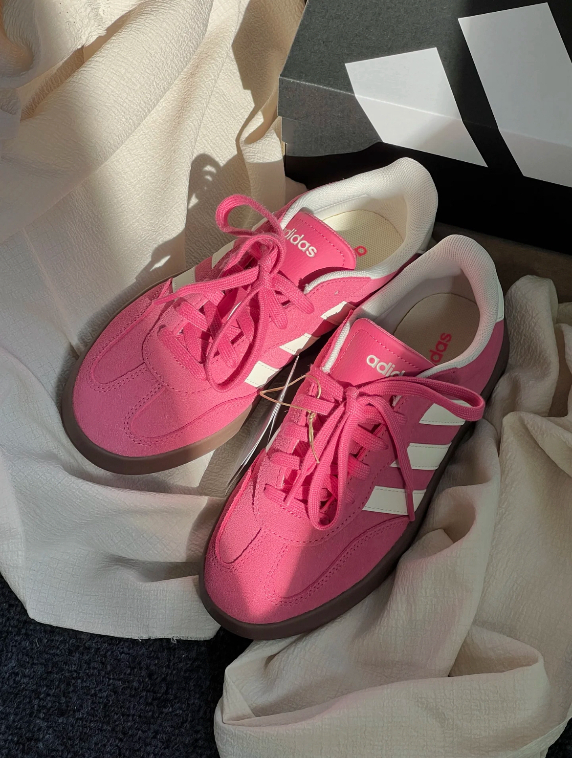 这双Adidas玫红色板鞋也太吸睛了吧!💕 高饱和玫红色超正,搭配经典的白色条纹👀 不管是日常逛街📷运动🏊健身🏋️还是出门旅行✈️他都能完美适配,简直百搭神器