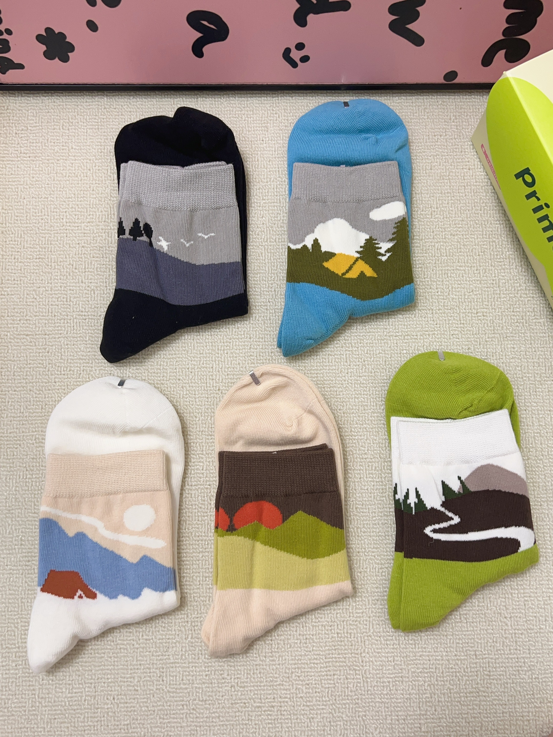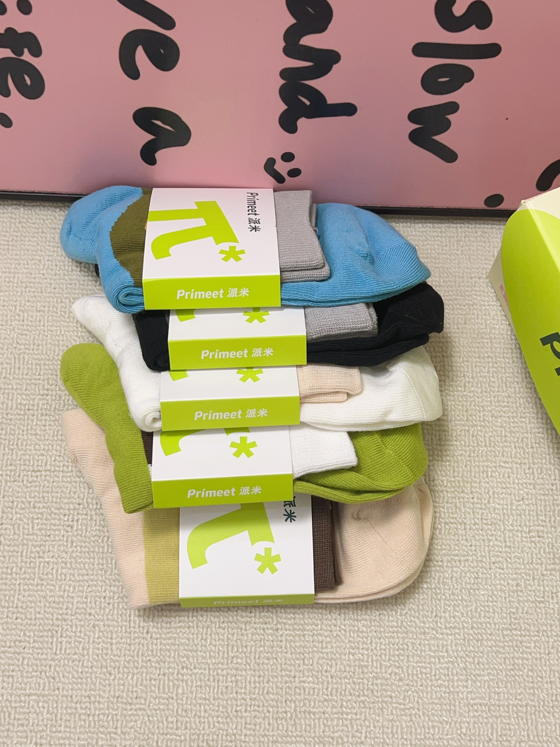 谁懂广东的夏天真的好热啊 刚好又是一年一度的618 当然要准备新的袜子穿啦 派米这款袜子礼盒包装 打开有五双不同图案的袜子 每一双配色都蛮吸睛的 面料柔软舒适hin 透气 蛮适合现在这个时候穿 上脚穿舒服不会闷jiojio 夏日出行随便搭鞋子都可以