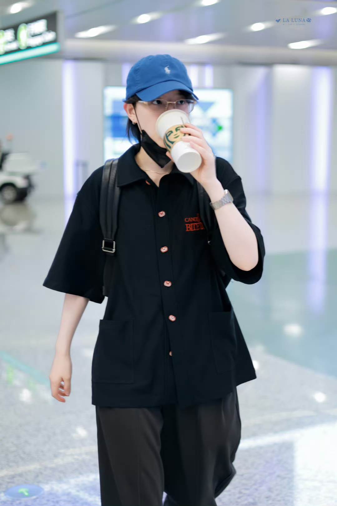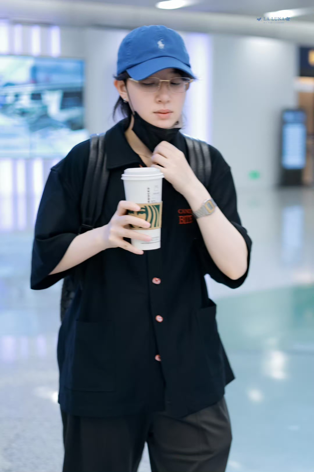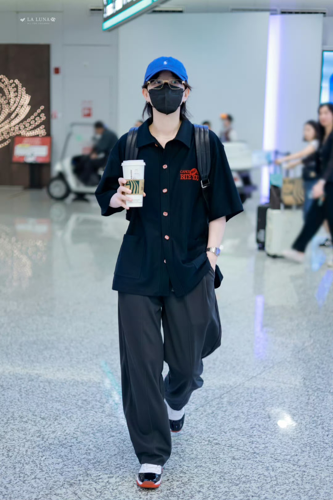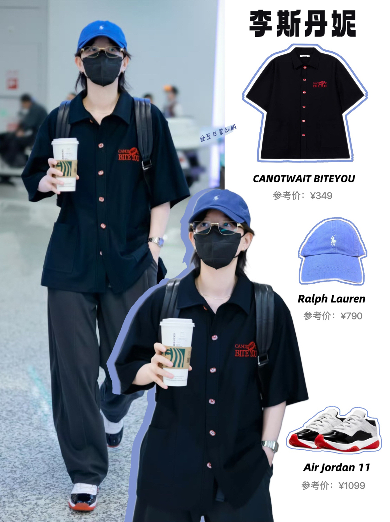 李斯丹妮更新了6月9日机场私服,黑色T恤下搭灰色休闲长裤,轻松又休闲的男友风穿搭!我们妮妮酷的嘞! CR:@LaLuna_李斯丹妮 上衣: Canotwait 鞋子: Jordan 帽子: Ralph Lauren/拉夫劳伦