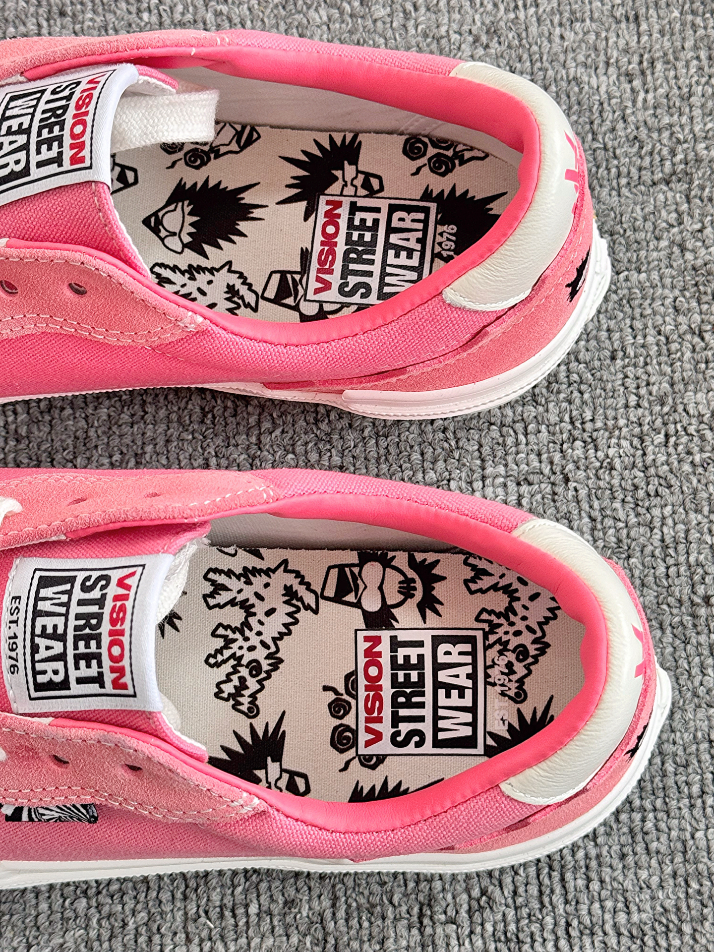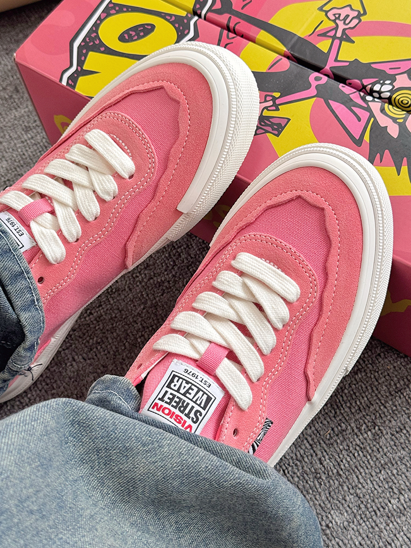 来个人管管Vision叭 ! 🍧这双冰晶粉好亮眼啊 Vision新配色滑板鞋好靓啊 很粉嫩的珊瑚粉配色 鞋底我很喜欢 是清透的水晶底 后跟的刺绣我觉得蛮精致的 而且我感觉上脚蛮舒服 挺轻便 穿这双我感觉很靓诶