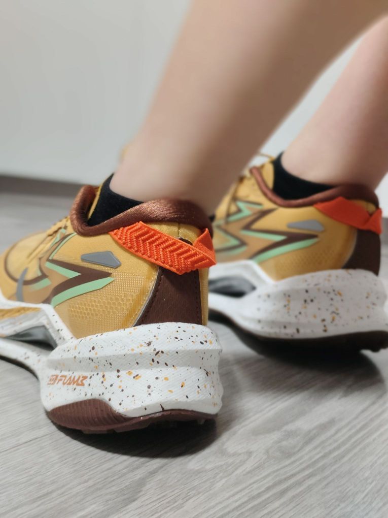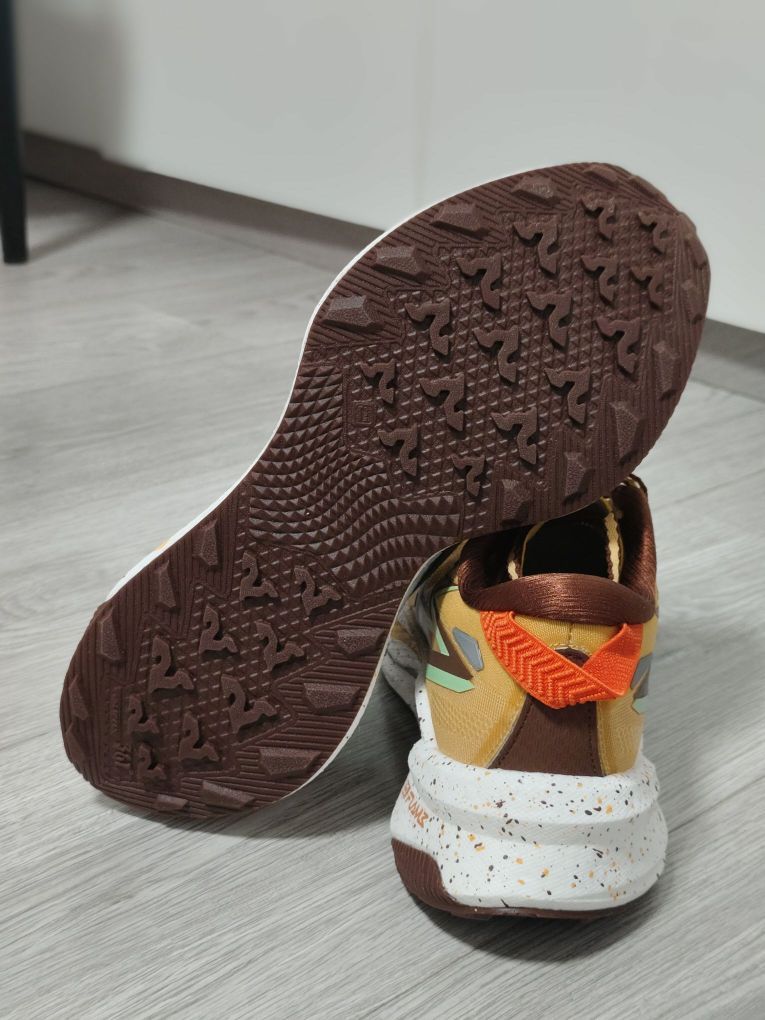 💥碳板越野跑鞋的初体验: 飞燃4×4「剑门关」基于飞燃4的结构,大底更换为湿地止滑橡胶,降低了重心,加宽前掌,在复杂环境的稳定性提升了不少。 鞋型外观也很帅,日常穿搭也很不错❗️