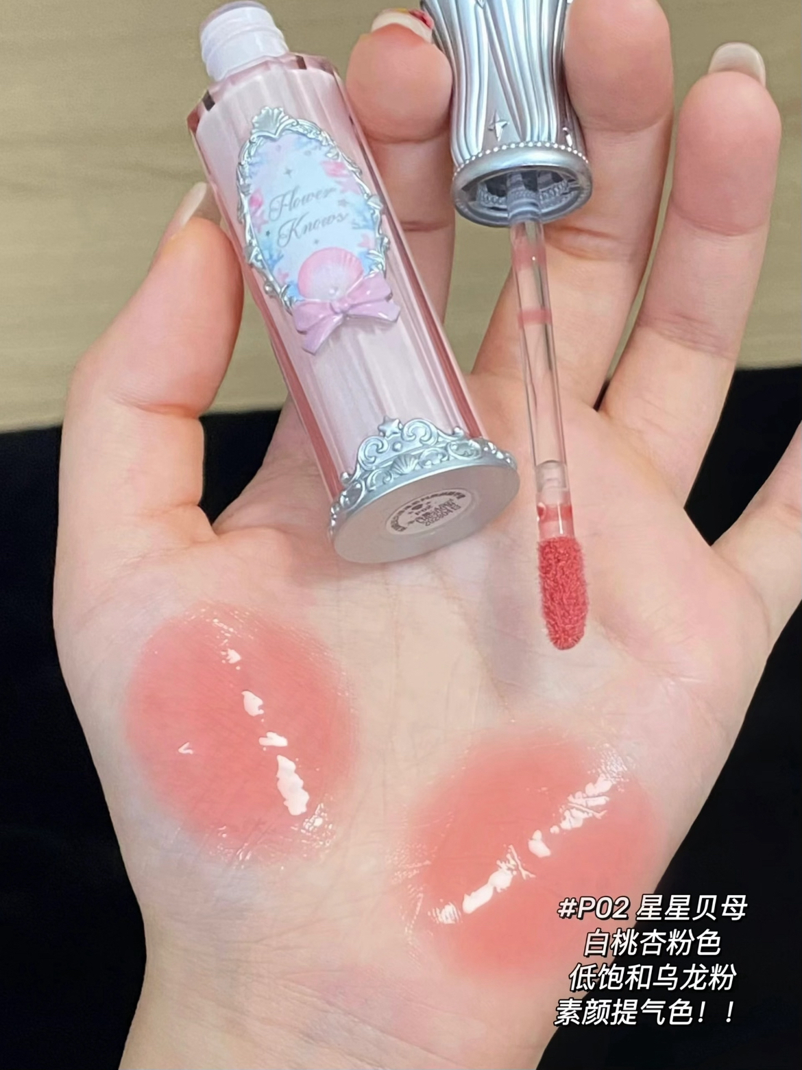 * 花知晓贝壳唇部精华全试色! 这个夏天珍珠公主我先当为敬~又护唇又显色的唇部精华一层的水光感就直接拉满!! 上嘴凉凉的 暑气燥热全部消失! 不成膜的清润精华蜜质地!!超级舒服!! 黄一白 室内自然光拍摄 浅唇可参考颜色!!我最爱的几只 ,PO1 香槟珍珠: 杏子奶茶色!伪素颜心机王者( 涂上像刚喝完冰镇杏仁露 温柔到你天生好气色 ,P02星星贝母: 白桃乌龙粉!黄皮亲妈疯狂打Call 低饱和粉调...