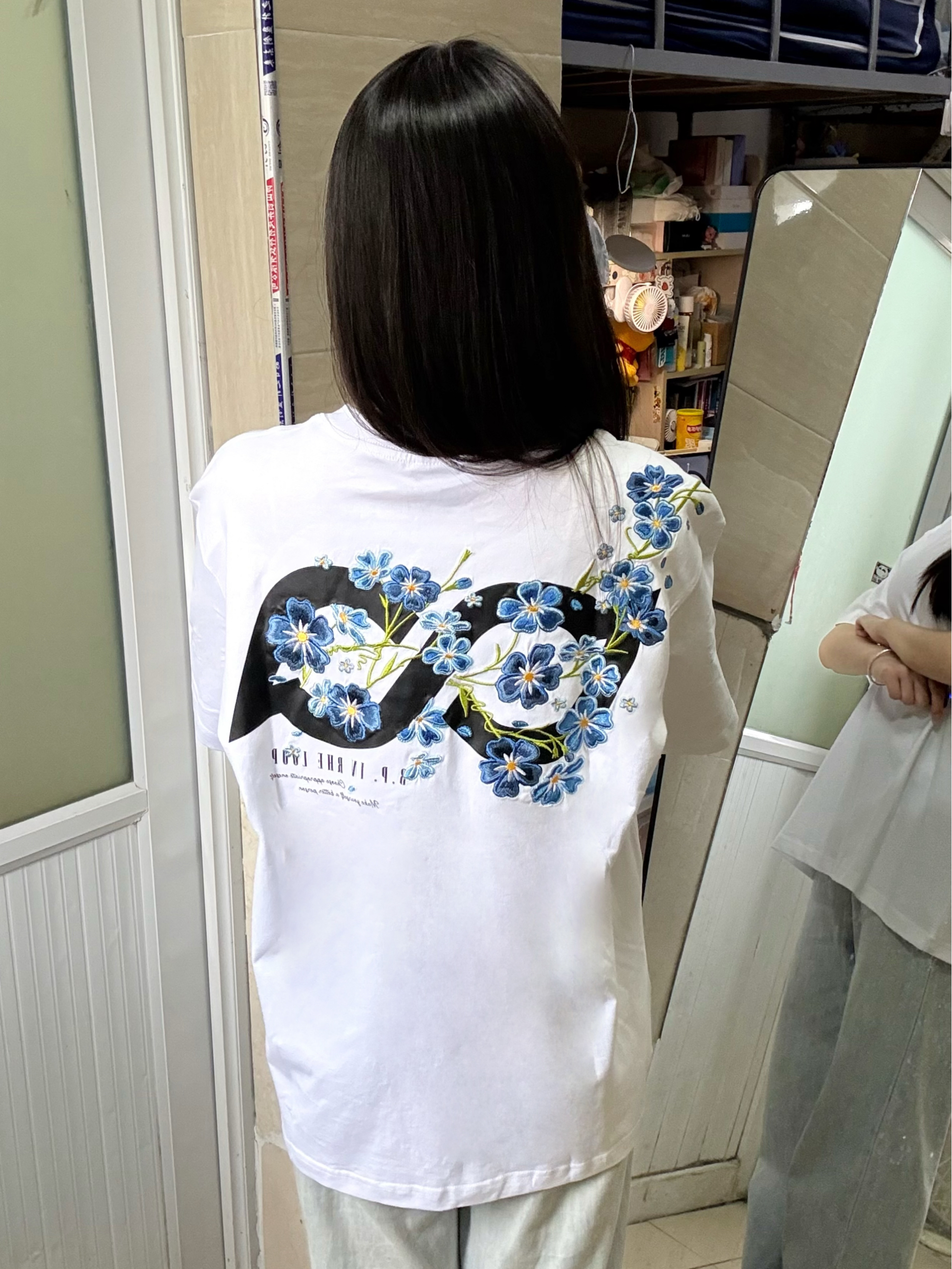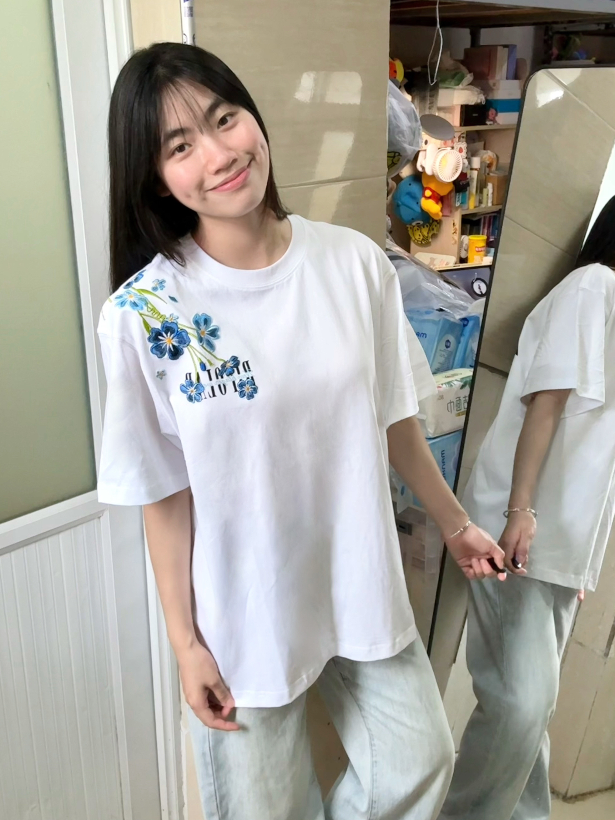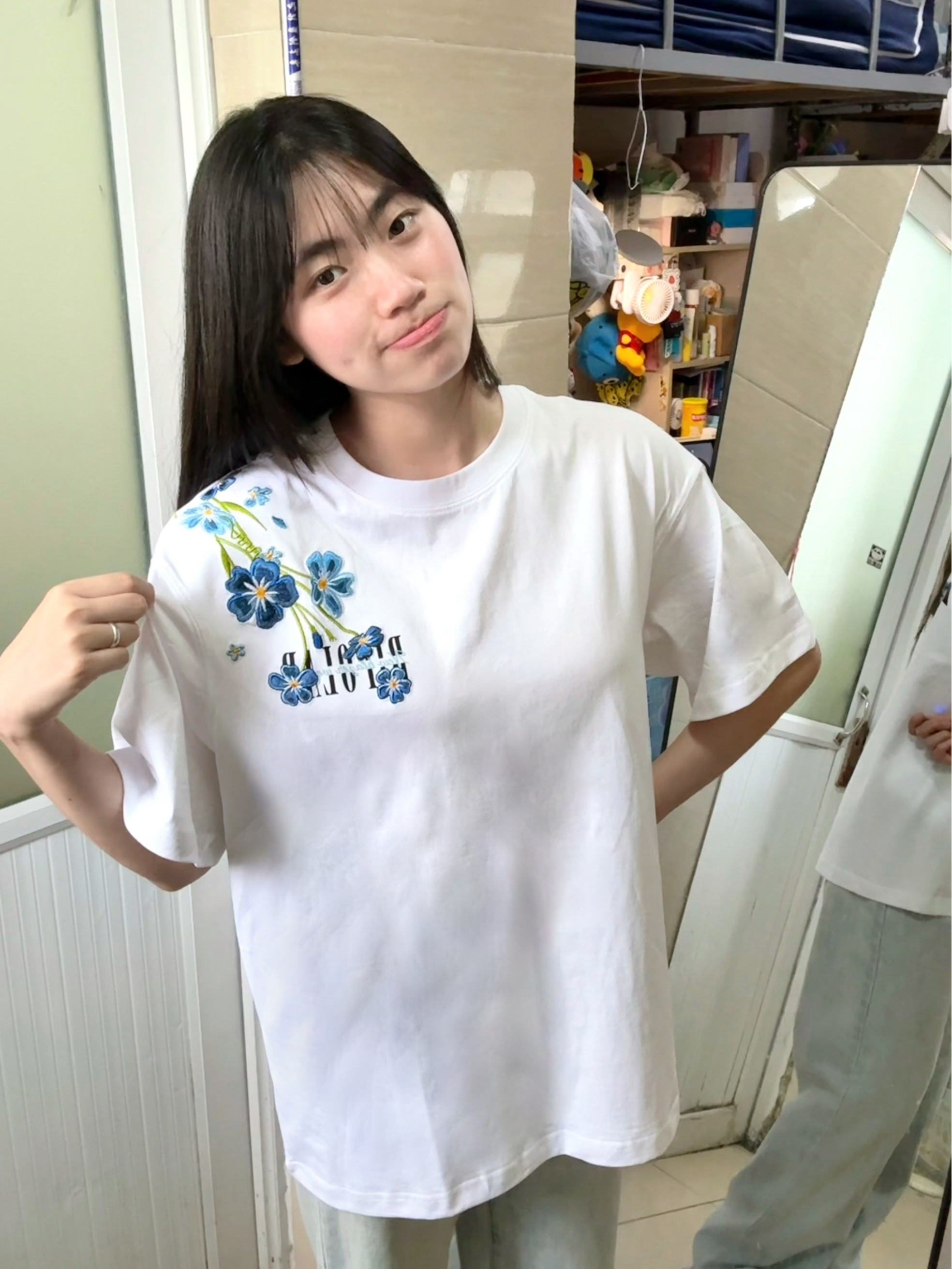 166 102穿的是M码 版型很宽松 而且最戳我的是!做了一个过肩的花朵的刺绣 不管正面还是背面都可以看到 精致感满满呀