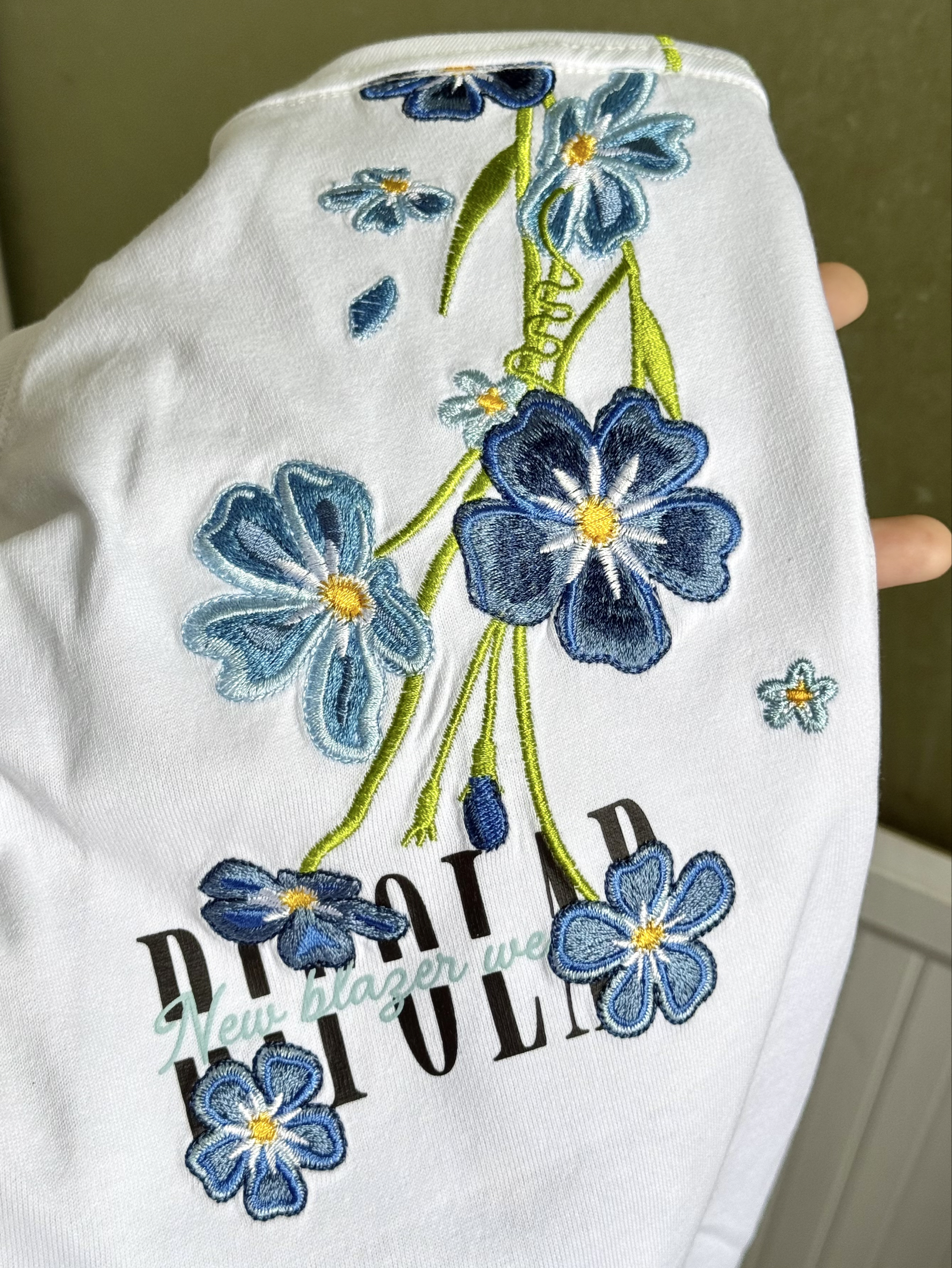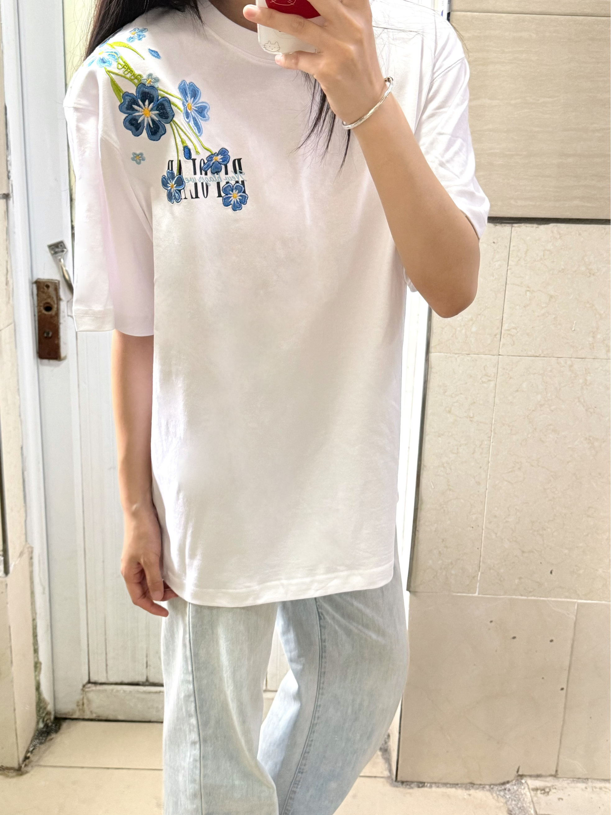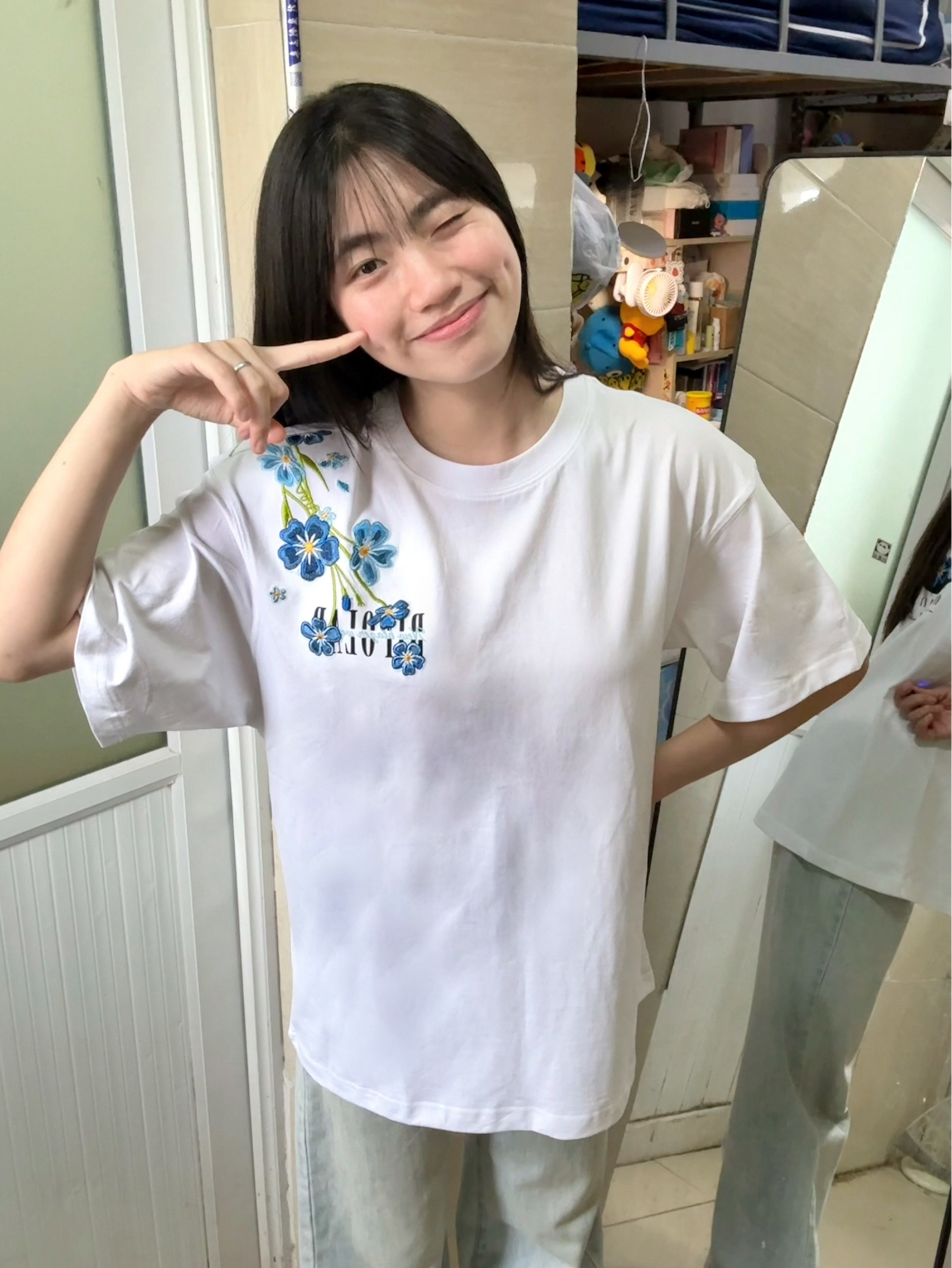 166 102穿的是M码 版型很宽松 而且最戳我的是!做了一个过肩的花朵的刺绣 不管正面还是背面都可以看到 精致感满满呀