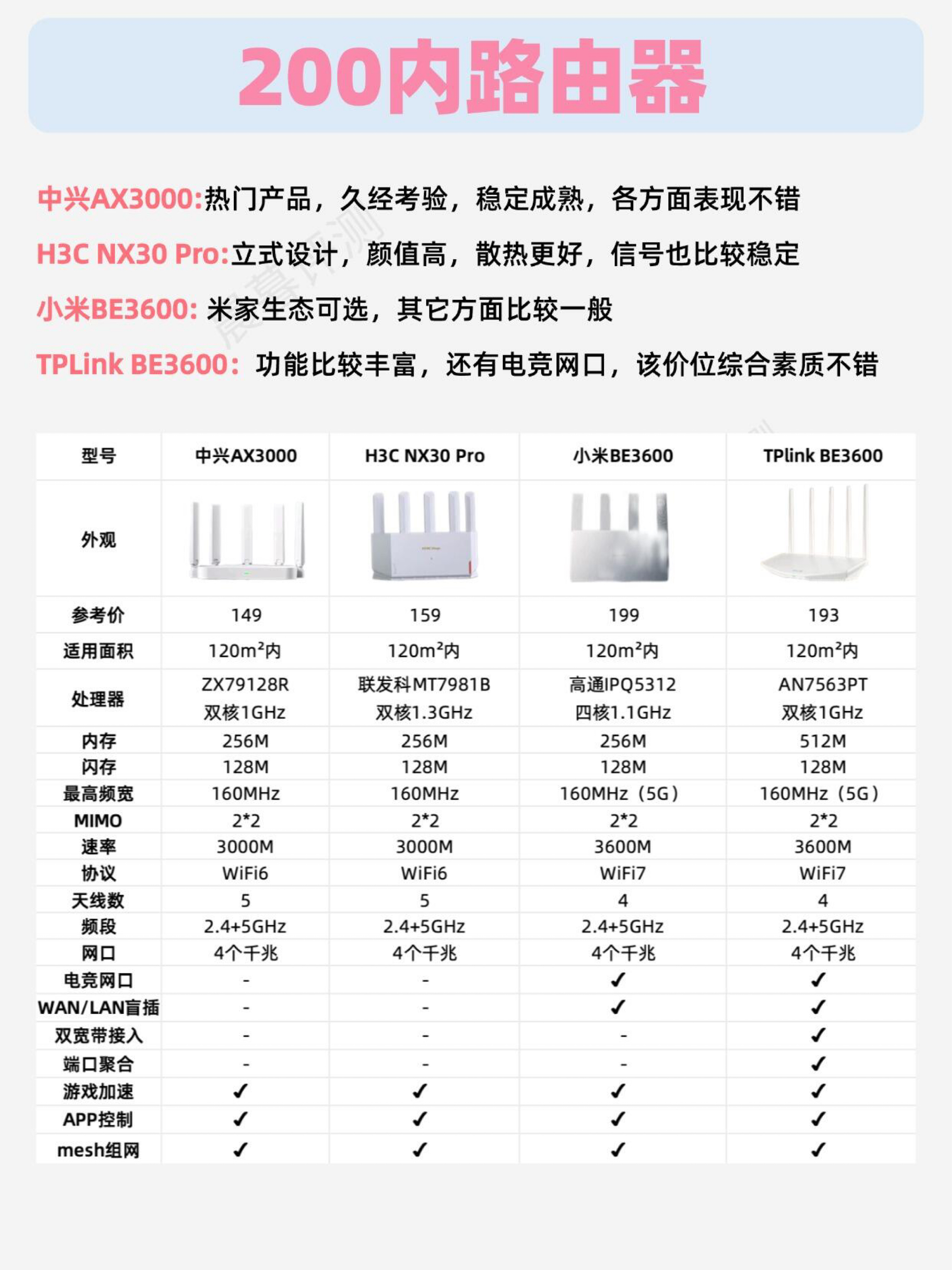 本篇笔记关联了Redmi/红米 AX5400 WiFi6 千兆电竞路由器 黑色、HUAWEI/华为 BE3 Pro 3600M 千兆路由器 双频聚合 双倍速率 上网保护 好搭档 穿墙王 网口版 全屋覆盖 黑色、H3C/新华三 NX30Pro AX3000 千兆路由器 穿墙高速 白色等商品,为用户提供真实的使用体验和购买参考。