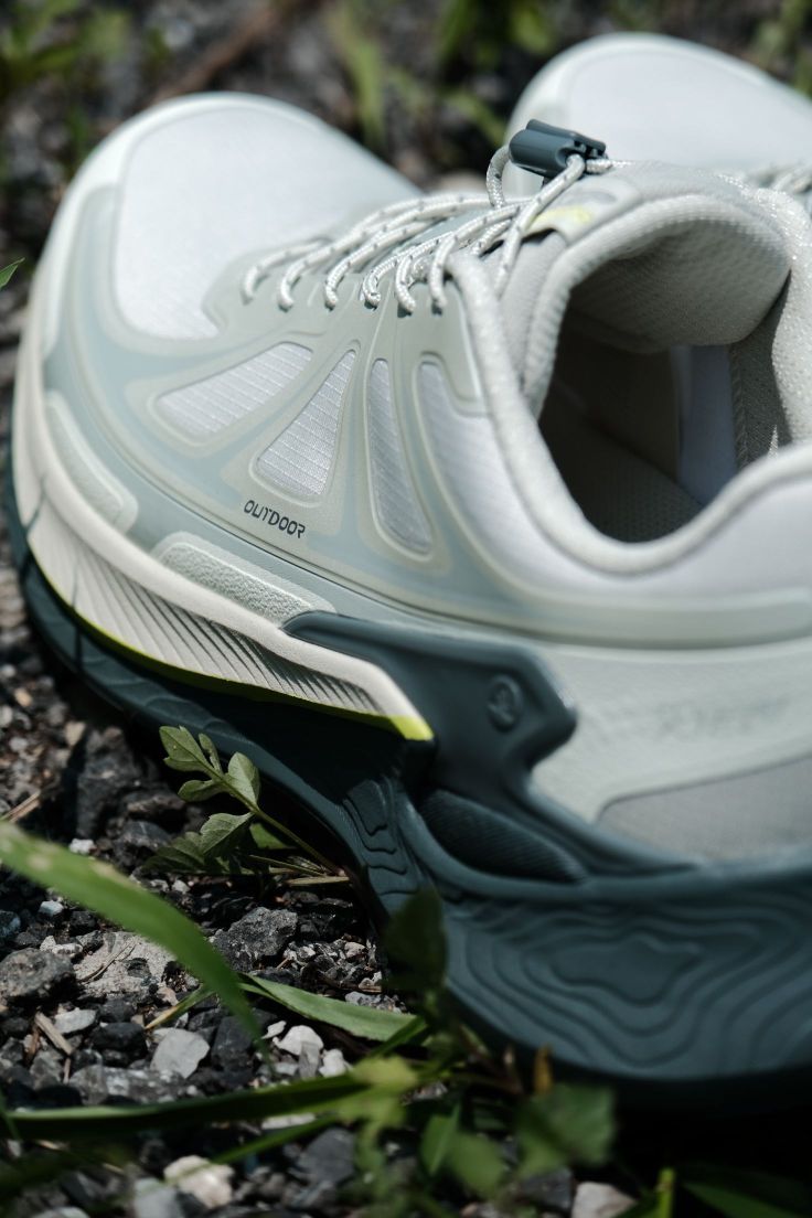 户外赛道太卷了 徒步登山鞋又有新选项 收到特步这双新出的越野跑鞋追山PRO还挺激动 目前出了四个配色 手里这双偏灰绿的颜色 是以祁连山下的牧场为灵感的绿原生机配色 ⭐然后我比较好奇的是这个很突出的外底 外底选了特步自家160X冠军跑鞋上同款的CPU大底 做了一个非常粗犷 齿耳很深的大底纹路 “X”设计防滑纹理 外侧大凸面覆盖 很多细小的纹路铺在表面 据说抓地和湿地止滑都很强悍 可以胜任各种复杂的...