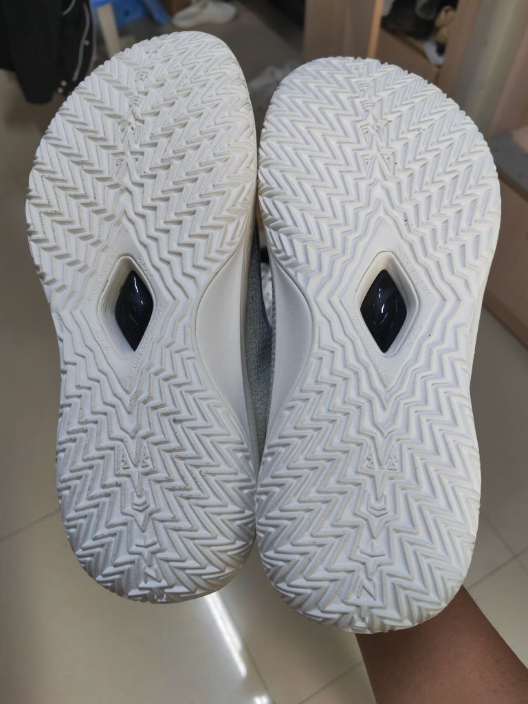 👟球鞋名称:狂潮6纯白 🔍分享理由:颜值帅气,实战优秀 🤔整体感受:场地感十分不错,脚感有点硬,但是有鞋垫撑着,踩开后还是很爽的。 📌是否偏码【偏大/不偏码/偏小】:偏小一码,按脚长选码即可 ⛹️性能打分(每项满分均为10): 包裹:7还不错 缓震:7有点硬需要踩开 抓地:8很不错 耐磨:8.5足够造 稳定:7 防侧翻:7 透气:8 重量:8.5 📖总结评价:8