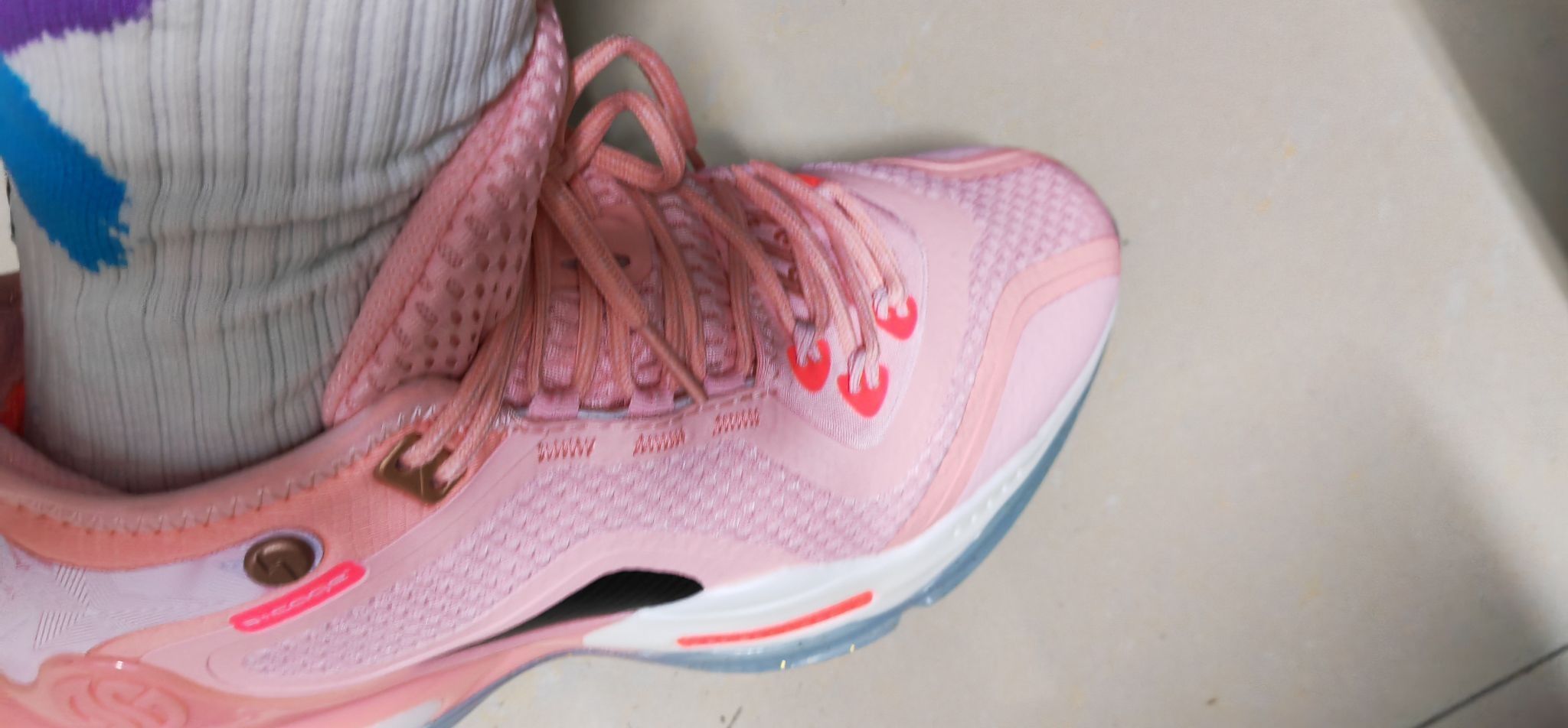 👟球鞋名称:361,AG2篮球鞋 🔍分享理由:依旧是骚粉配色,一双内线实战好鞋。 🤔整体感受:耐磨一般,重心稍高,鞋面透气还可以。