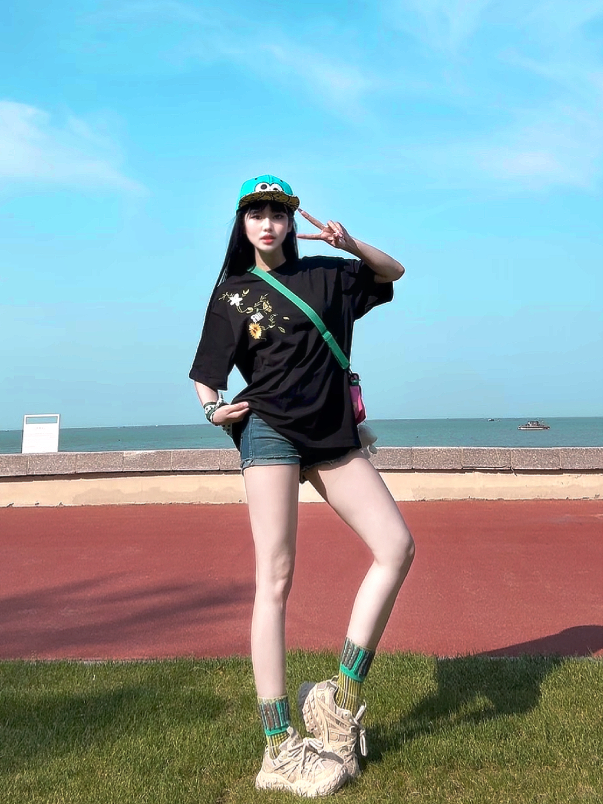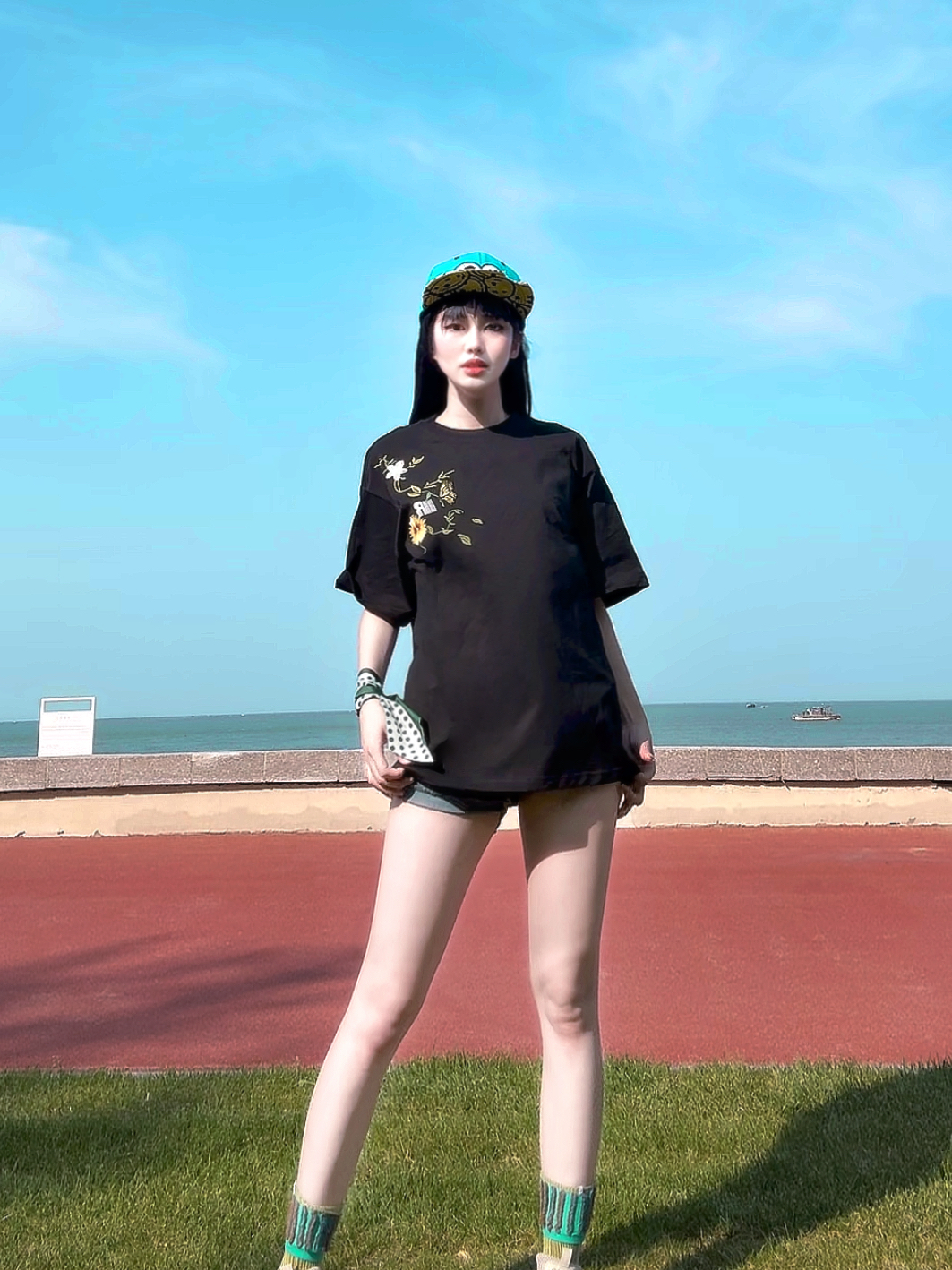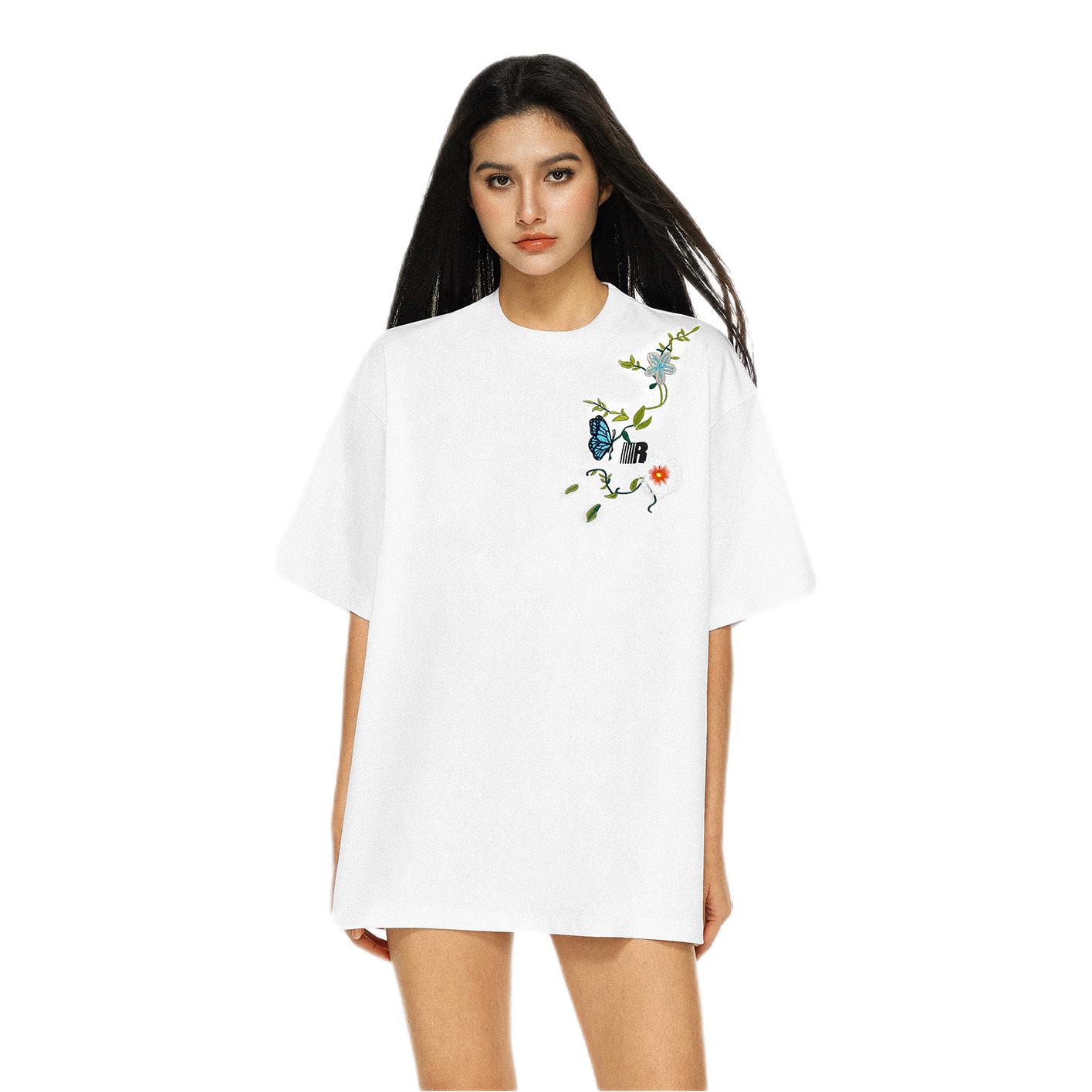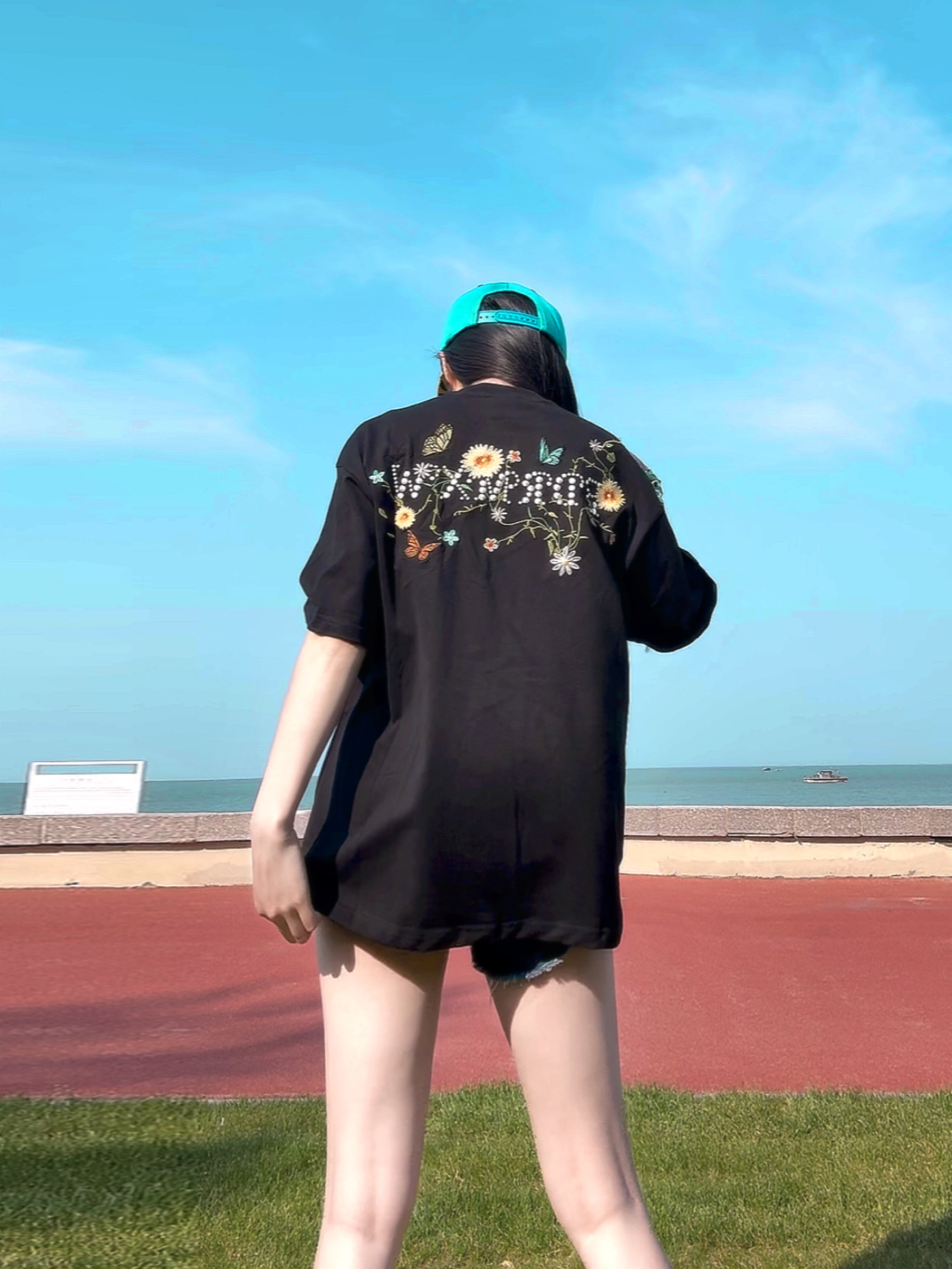 🧥: FDR 🧍♀️:163cm 44kg 📏:M码 后背的蝴蝶与花朵刺绣活灵活现🦋 真的好精致的LOGO,雏菊好有夏日感🌼 布料很柔软,贴身亲肤! 可以温柔可以活泼,适配度满分💯 情侣装和姐妹装也能安排!