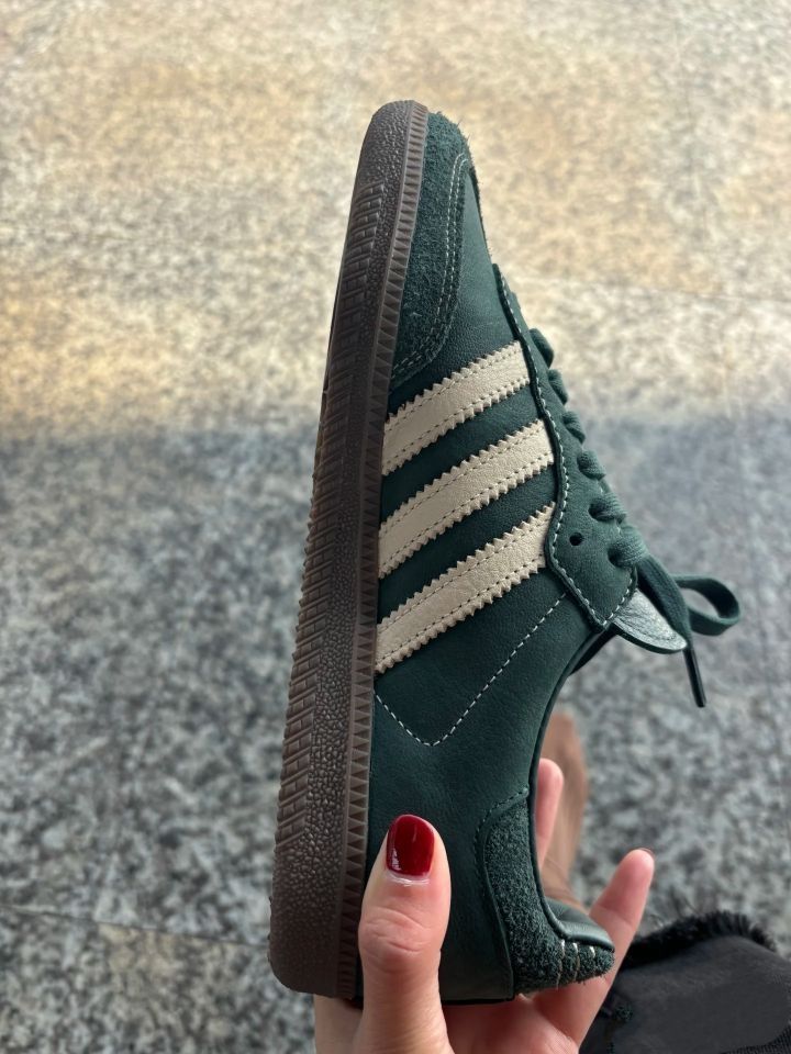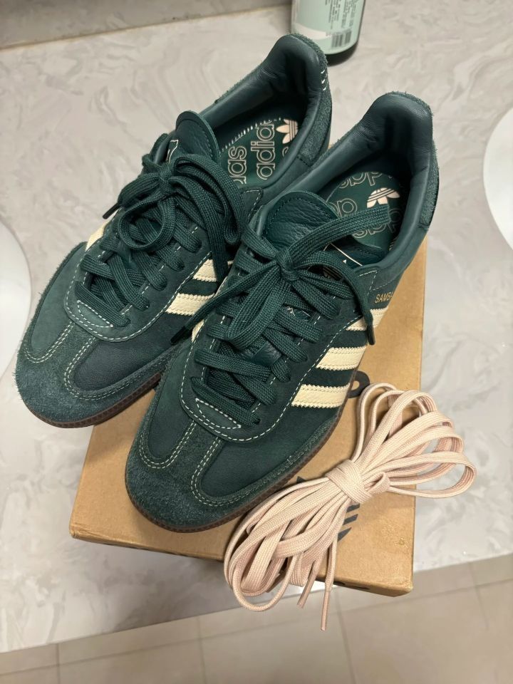 1.德训鞋Samba墨绿色,太帅了,不磨脚! 记住!买大一码,根本不会磨脚 走了一万多步巨舒服 这个颜色太爱了,长在了我的心巴上 看到立马拿下,就怕买不到了 感觉可以随便搭配,秋冬必备单品 2.还有一双是GZ的德训绿白,都是很好看的鞋