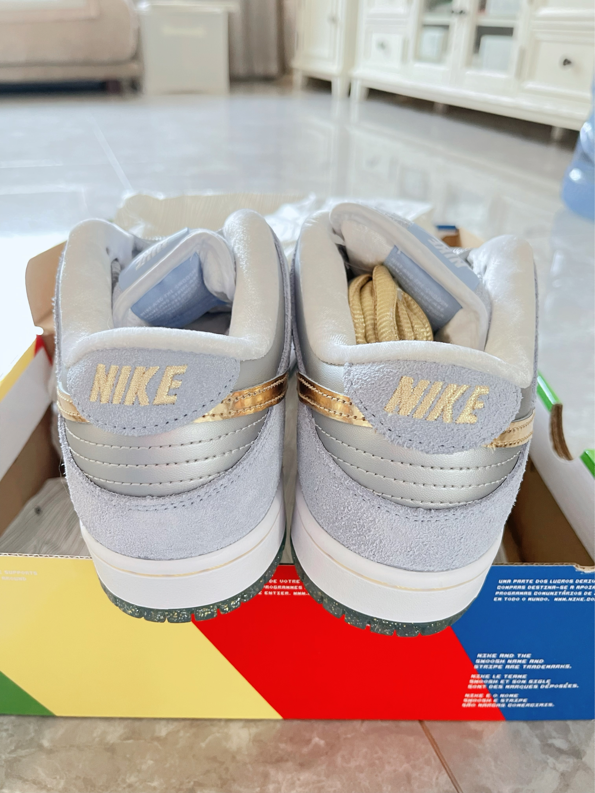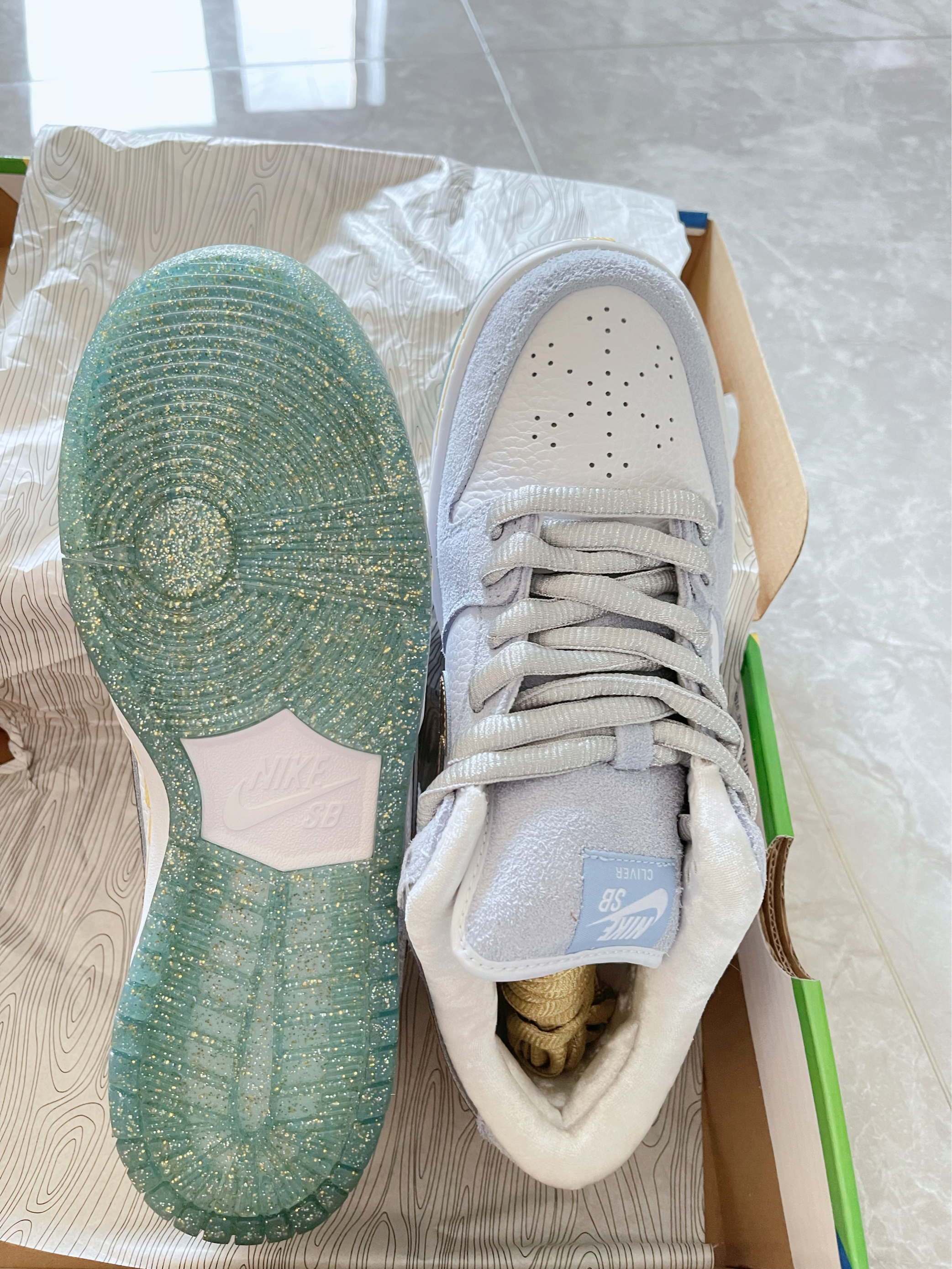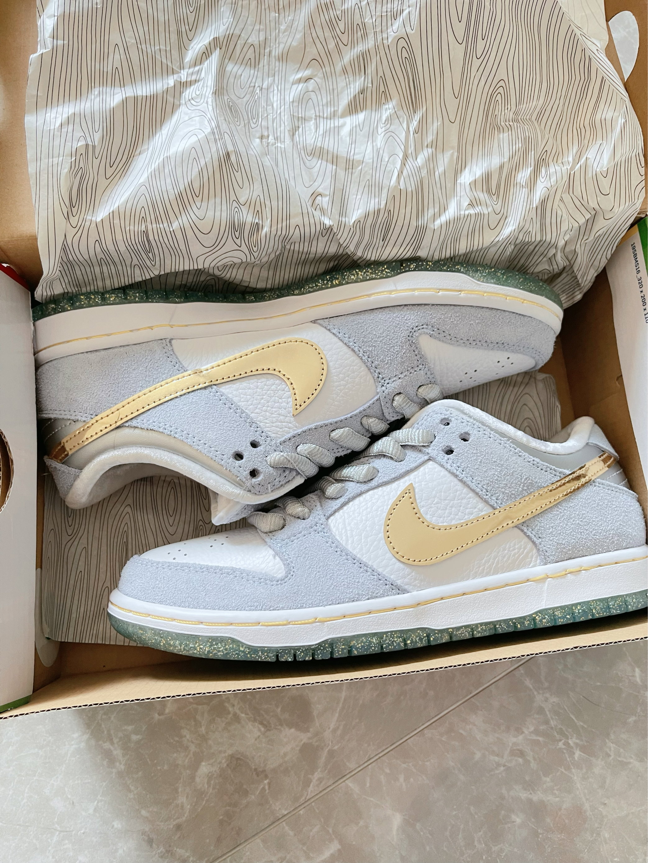 看到Nike SB Dunk 冰雪奇缘配色,真的万分喜欢💎 浅灰麂皮+白色荔枝皮拼接,质感拉满✨ 金色勾超亮眼,像给鞋子镶了金边,鞋舌 “NIKE SB” 标签细节在线,鞋垫还有隐藏小彩蛋🎨 水晶大底带细闪,氛围感直接拉满❄️ 上脚秒变街头酷盖,搭运动裤、牛仔裤都绝,出街回头率 200%💥 滑板、日常穿都舒服,颜值性能双在线 #nikesbdunk #冰雪奇缘 #给我看看你的dunksb ...