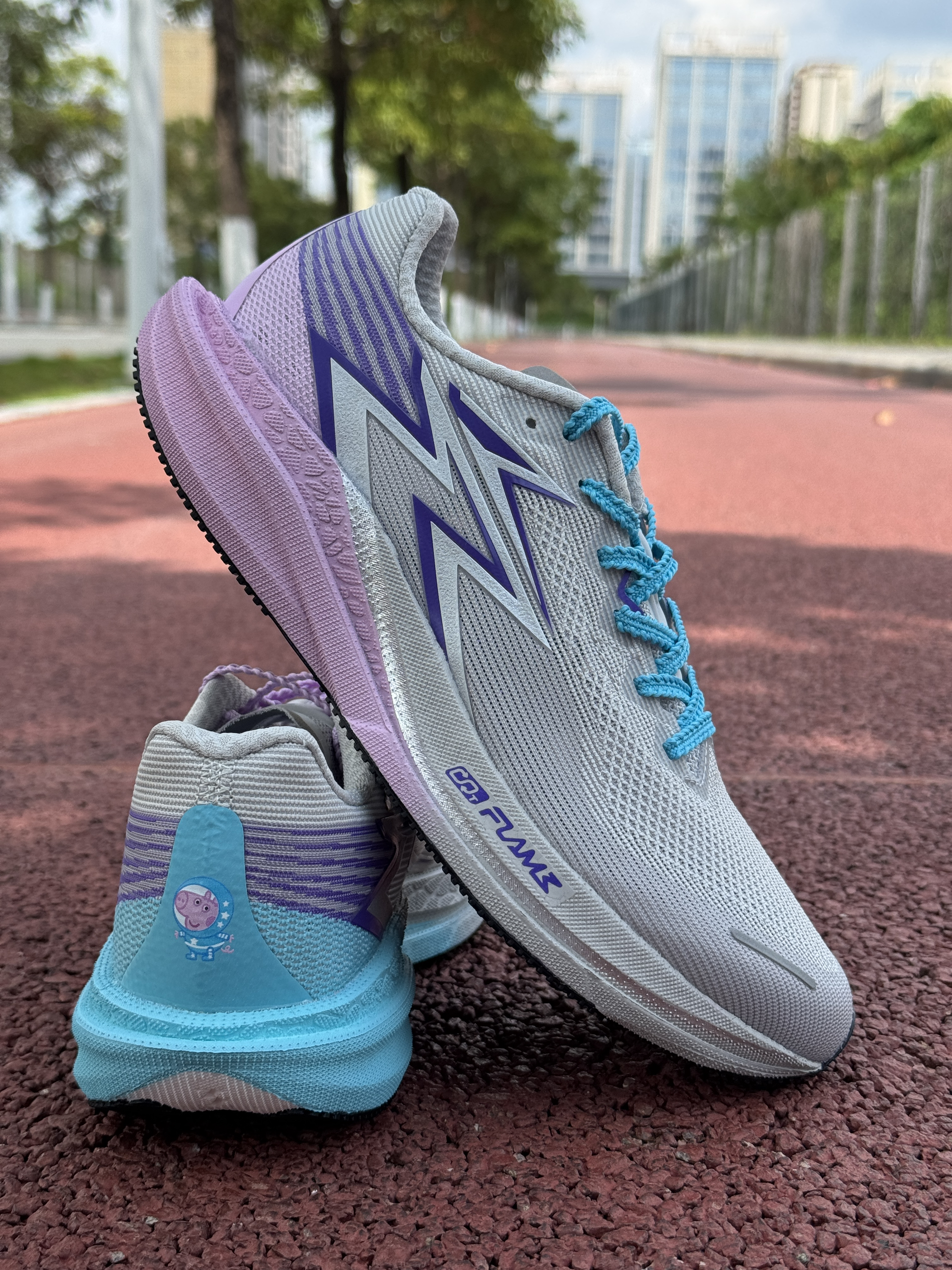 今天!分享一双新跑步鞋!飚速4PRO 太空佩奇配色!鸳鸯配色!颜值确实好看!外底纹路清晰,耐磨和防滑效果不错! 大家觉得它的颜值如何?