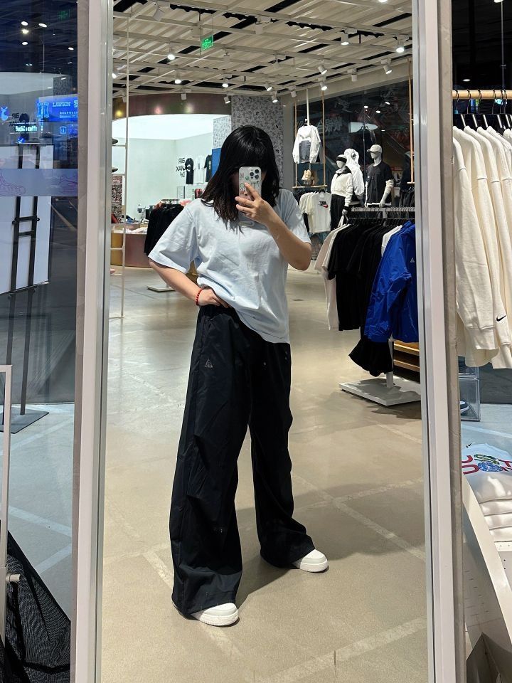 婴儿蓝的半袖太减龄了,搭配ACG速干长裤,又舒适又显腿长!早晚通勤搭配奶白外套,简直不要太少女!