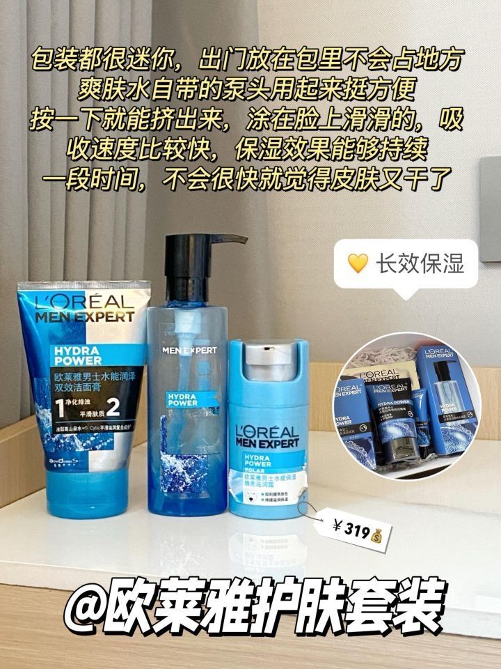本篇笔记关联了【男士专用】L'OREAL/欧莱雅 劲能醒肤露润肤霜 修护紧致滋润保湿补水控油 水能保湿焕亮滋润露50ml、欧莱雅 保湿滋润爽肤水 120ml、【男士专用】Biotherm/碧欧泉 水动力保湿护肤套组【水+乳+洁面】补水修护净油 水200ml+乳75ml+洁面125ml等商品,为用户提供真实的使用体验和购买参考。
