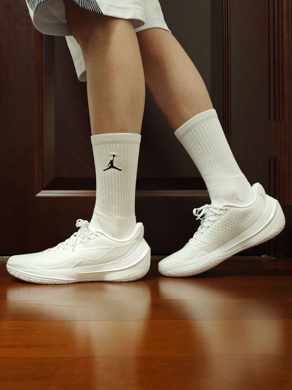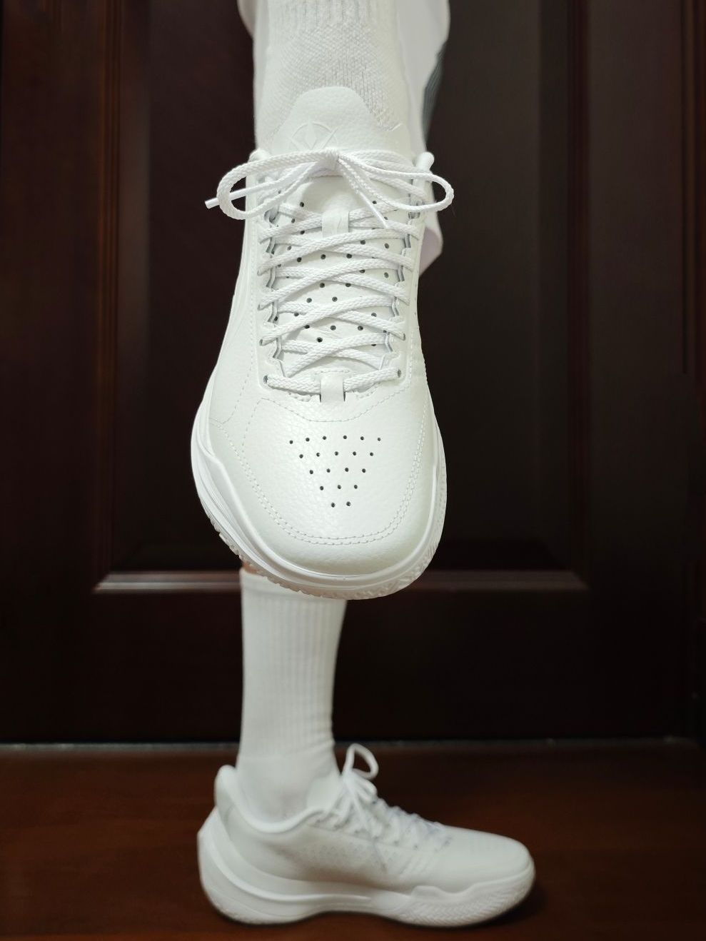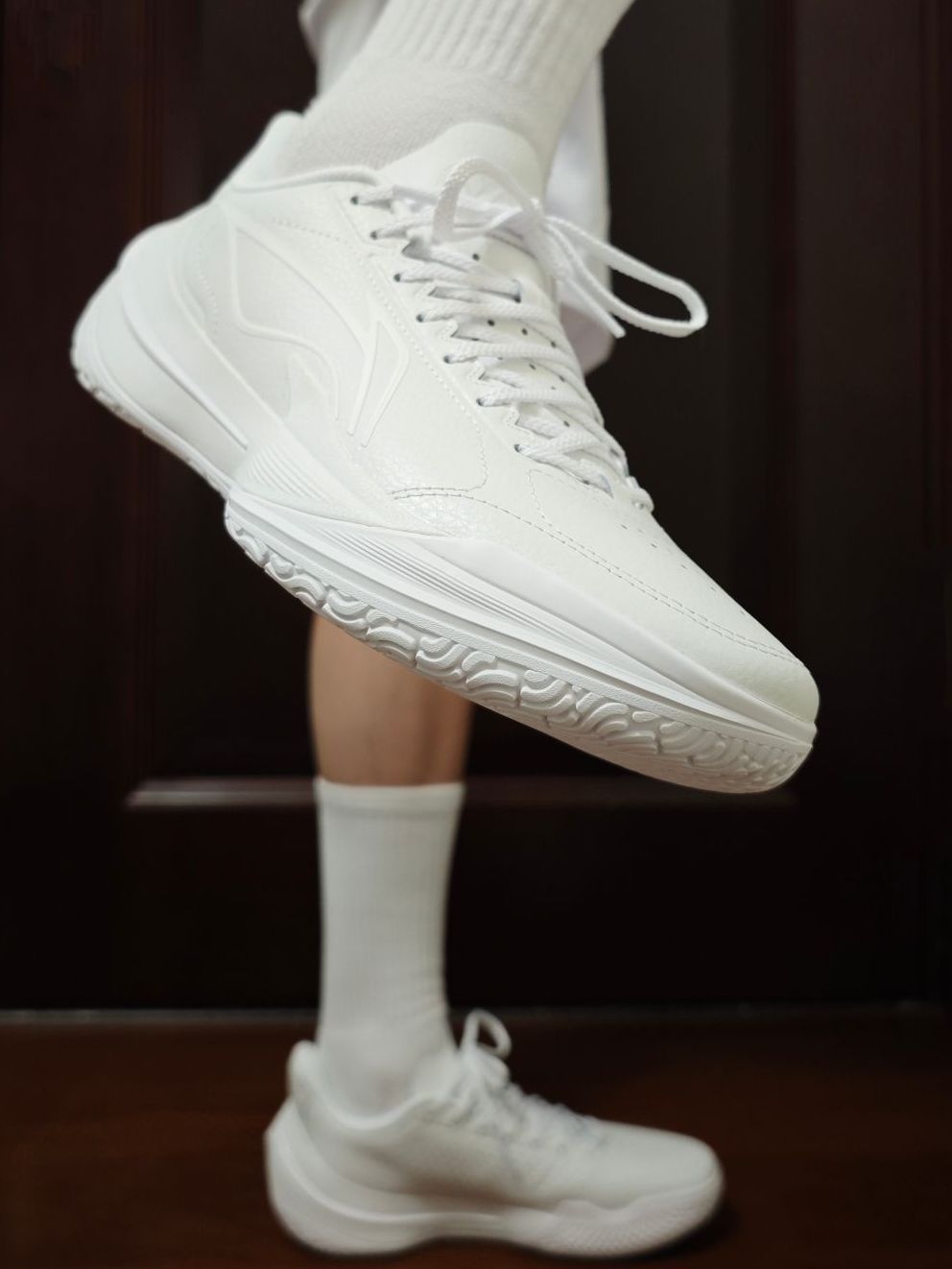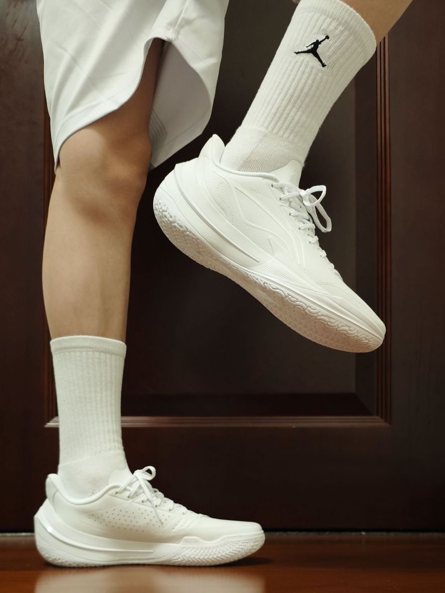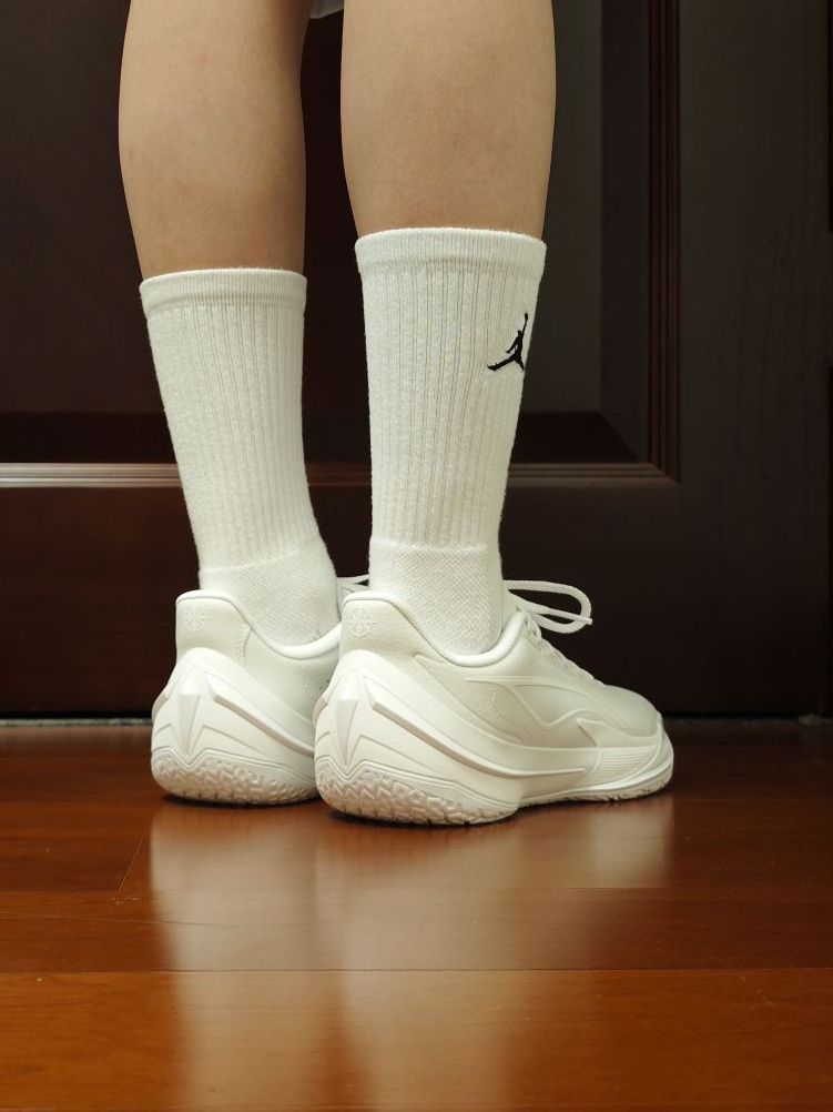 宁子很懂我们这些老鞋迷,时不时出一双皮质球鞋,带回当年的感觉,感觉真的很美妙。 第一时间和4代“独白”很像,但整体对比之下,我个人认为还是4代更好看。不过这双5代也已经是非常不错了。 除了包裹性会稍微有点略逊于普通版本外,其他都一样。但皮质带来的质感却是普通版本远不能比的。 不过这样的一双纯白球鞋,应该也不太舍得穿去实战吧!