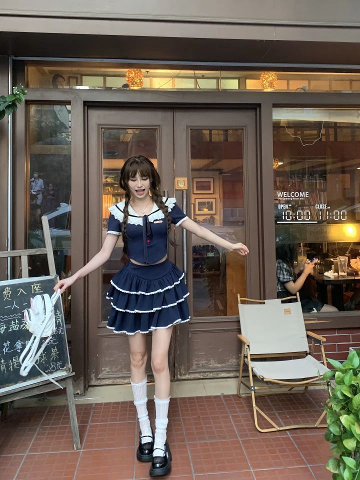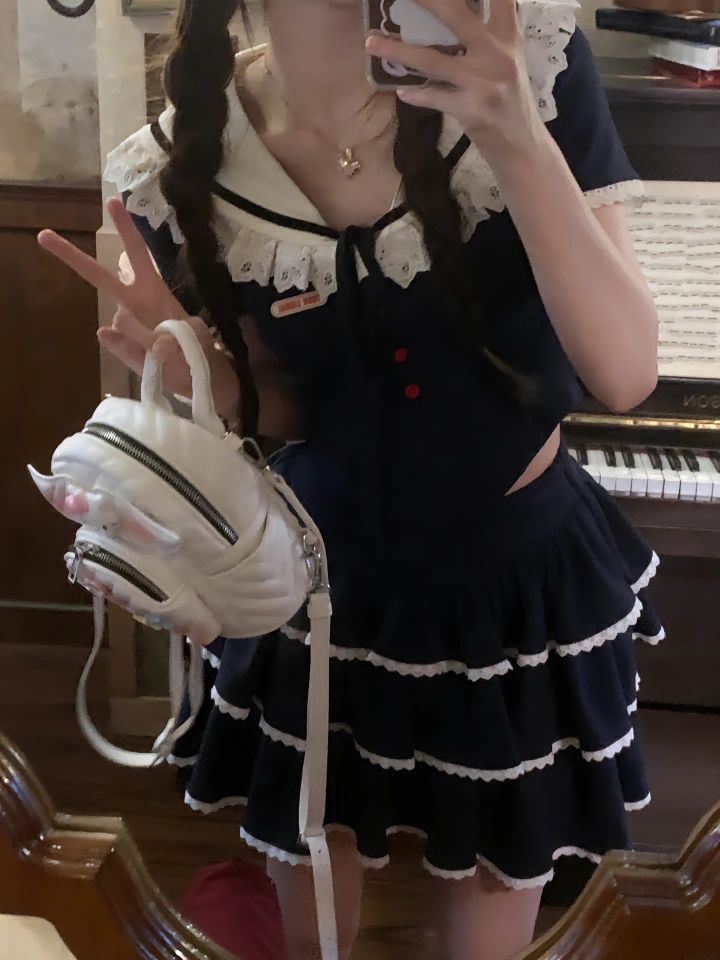 把“日系甜妹”焊在身上✨ 海军领+蛋糕裙=人间芭比 救命!谁懂这种海军领+蛋糕裙的杀伤力啊💥 藏青主色调+白色蕾丝边,站在绿植旁拍照,仿佛从日漫里逃出来的“校园芭比”,甜到邻居奶奶都要问“谁家小孙女这么可爱”~ 一、穿搭公式|3步拿捏“日漫女主感” (1)灵魂上衣:海军领短款小衫 这种娃娃领+收腰设计的上衣太绝了!海军领自带“乖乖女滤镜”,短款露出一丢丢腰线,把“甜”和“辣”藏在比...