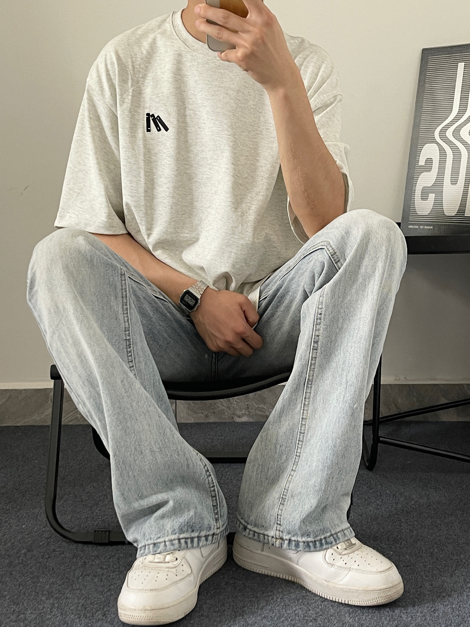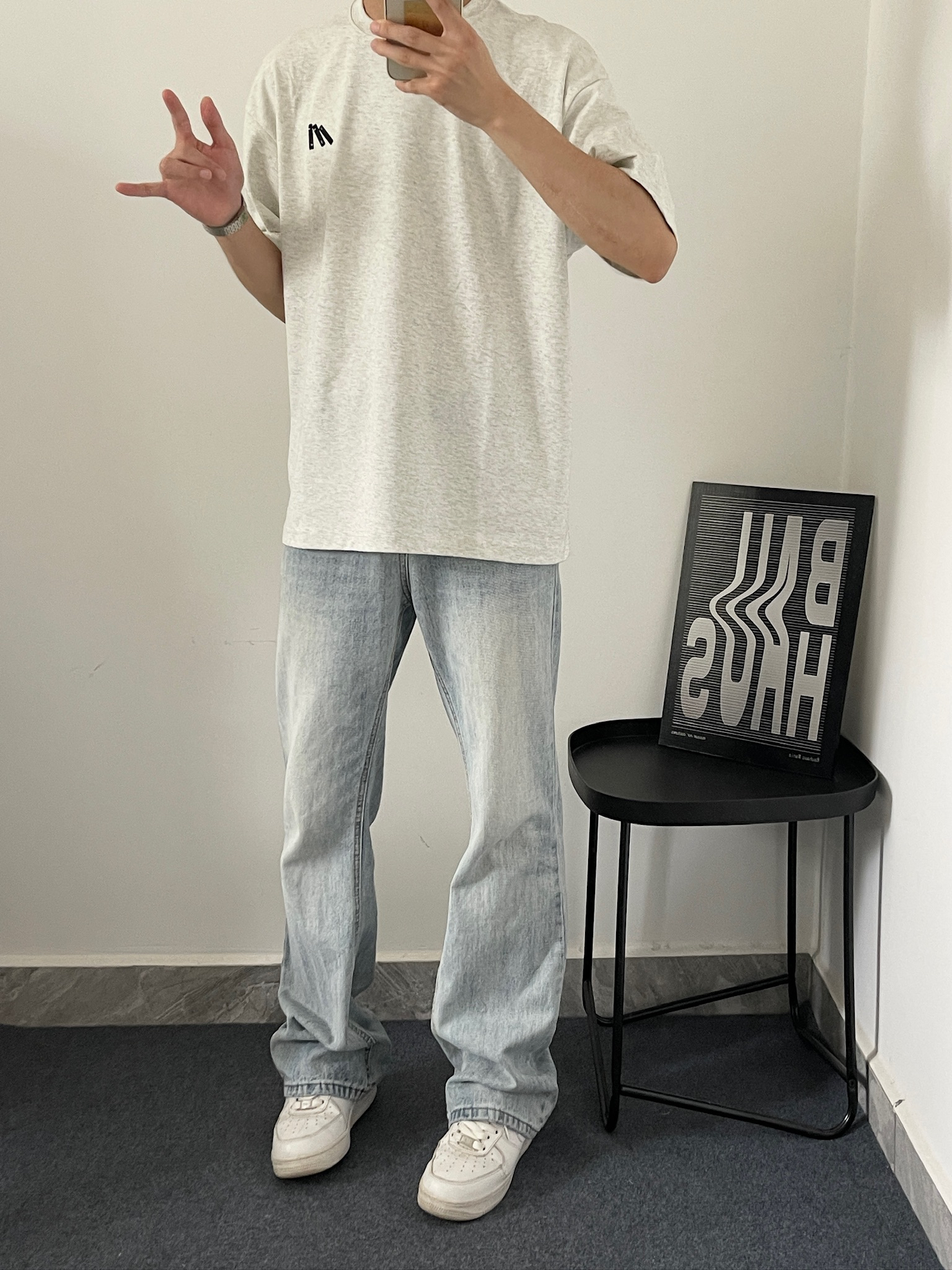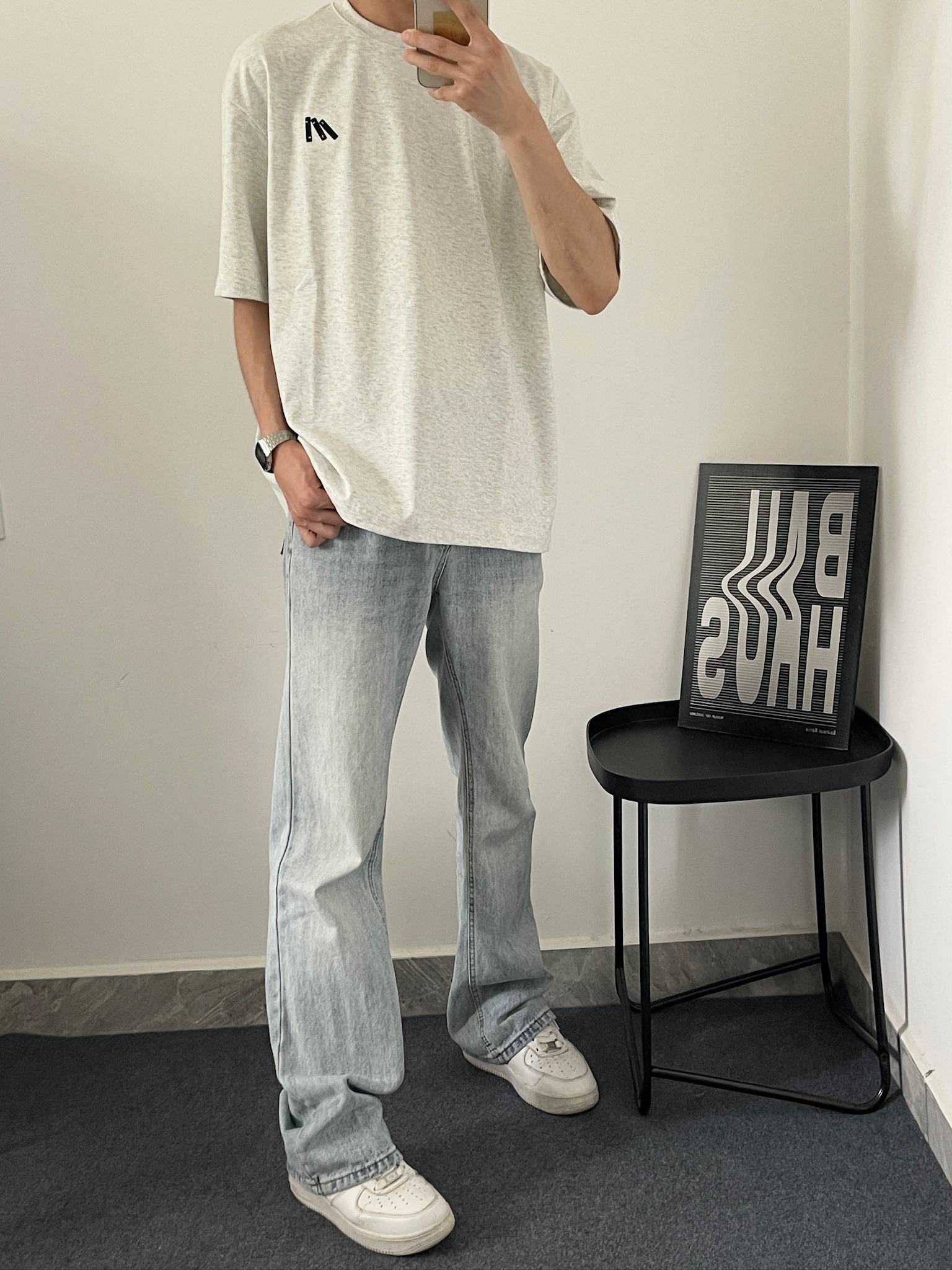 哈喽宝子们 今天穿什么~当然是这件花灰色的正肩短袖啦 整体版型是小一些的简约的款式比较百搭胸口处的小logo耶设计的很到位