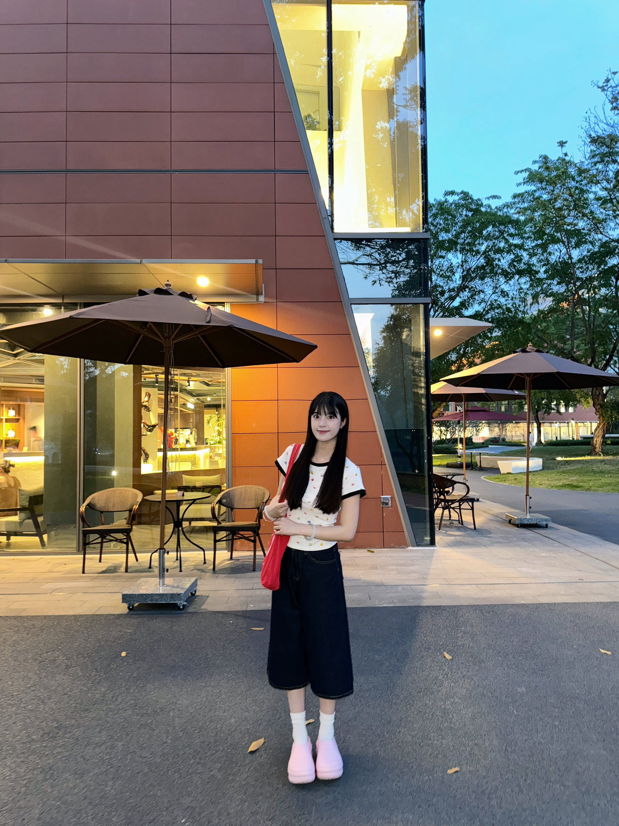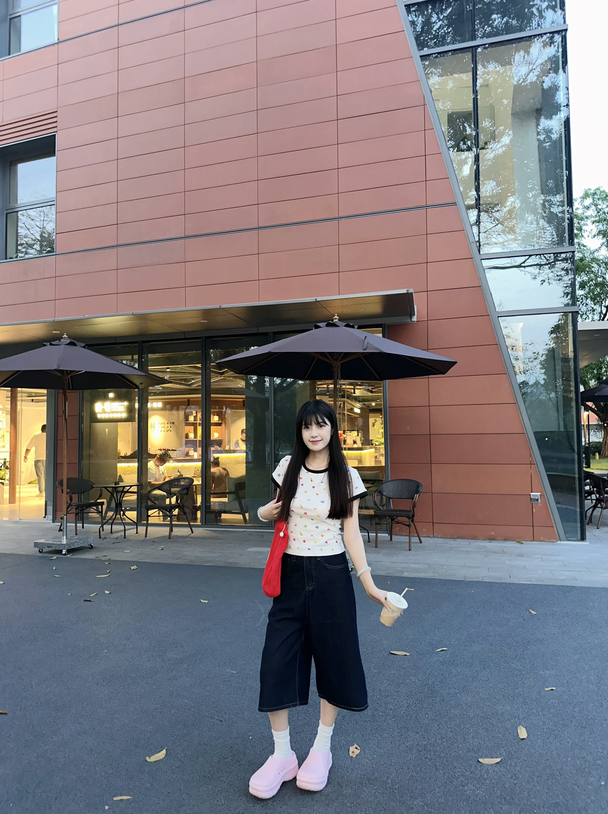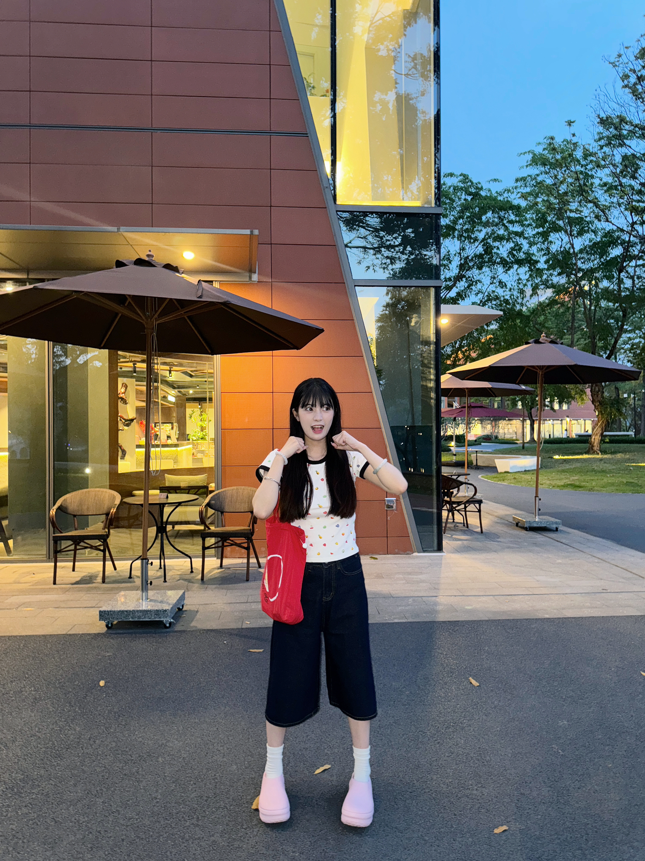 👟鞋:adidas粉色厨师鞋 👕上衣:emoji水果印花正肩T 👖裤子:五分裤