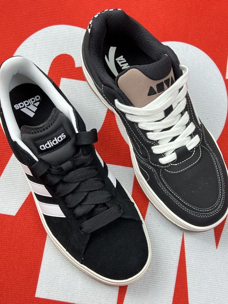 谁懂啊!最近挖到两双超绝的鞋💟,日常出街、运动都是可以穿的,舒适度和颜值挺在线的,分享给纠结买鞋的宝子👇 先唠右边这双棋盘格尾板鞋,鞋面是网面+皮革拼接,透气又有质感,黑白配色经典百搭,棋盘格小细节超吸睛✨ 尺码很正,按平时码数入就行~上脚软乎乎的,走路久了也不会太累脚,暴走一天是很OK的! 左边是阿迪经典三条杠板鞋,翻毛皮材质很有复古感,黑白配色永远不出错!鞋底有一定厚度,增高又显腿细...
