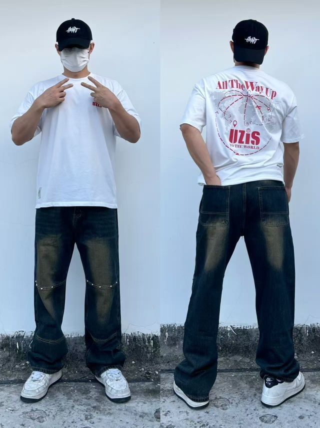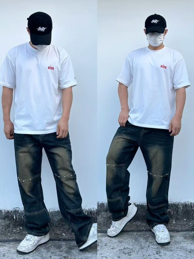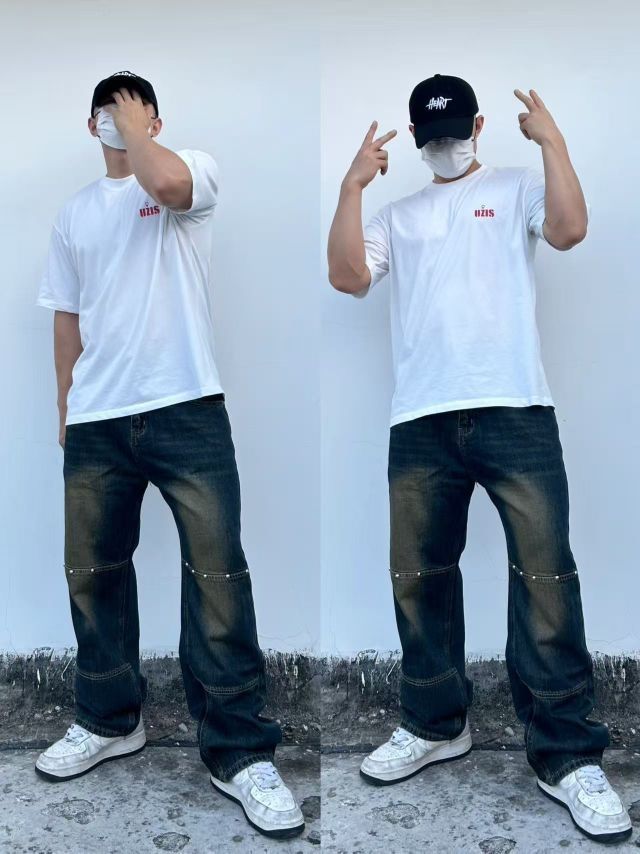 voguo relay👖复古水洗牛仔裤 真的很适合这个季节穿😆 ✅排钉的设计,超有感觉 中腰直筒版型🆒 任何腿型都合适🤗 🆓棉质的面料,穿上很舒服 我这种粗腿🦵🏻都很合适 而且上身没有束缚感🫡 怀旧复古的感觉立马☑️ —— 👔:搭配上一件白色运动短袖 整体运动又休闲👀 日常通勤丨出街丨旅游都很合适💯