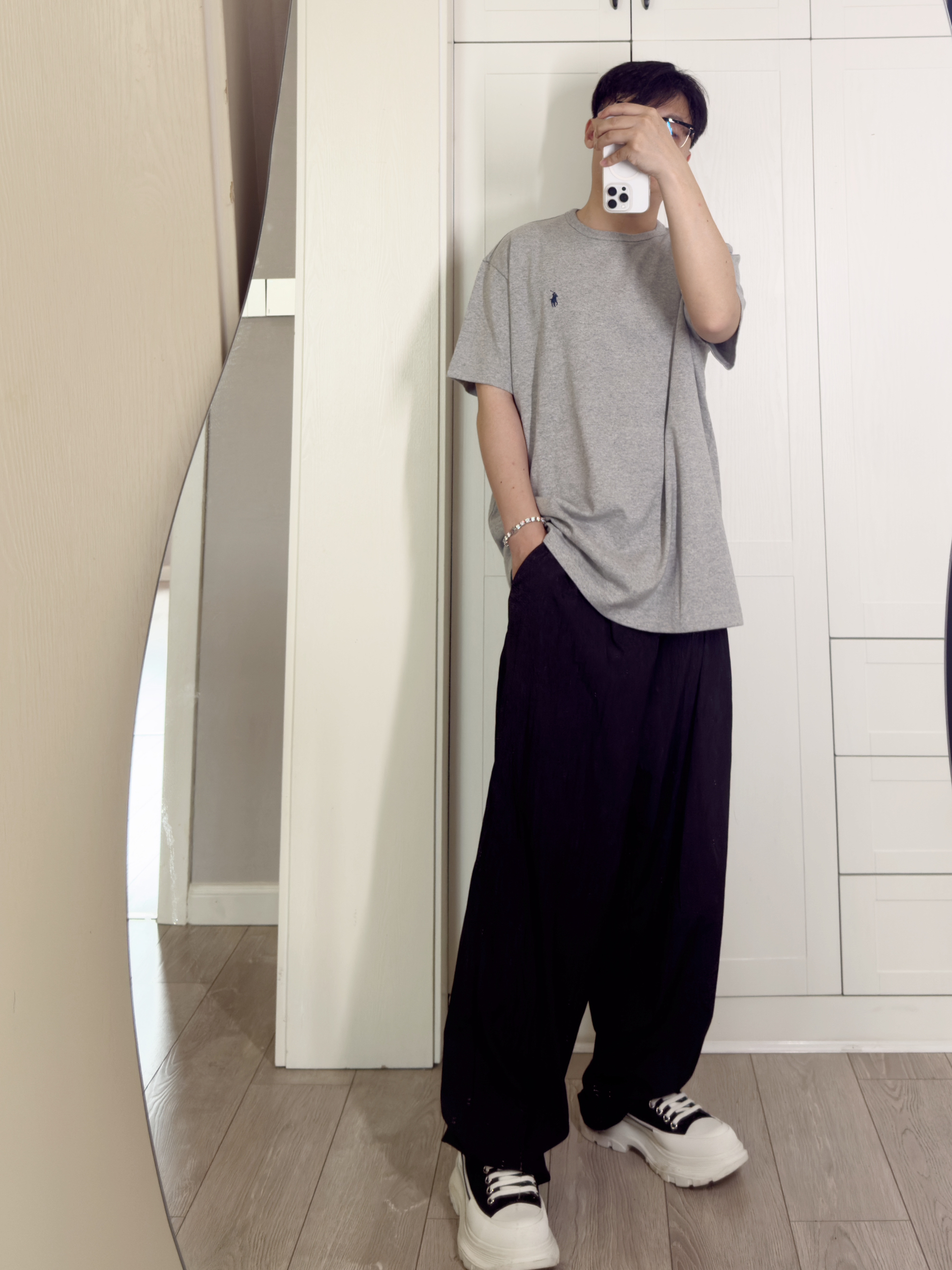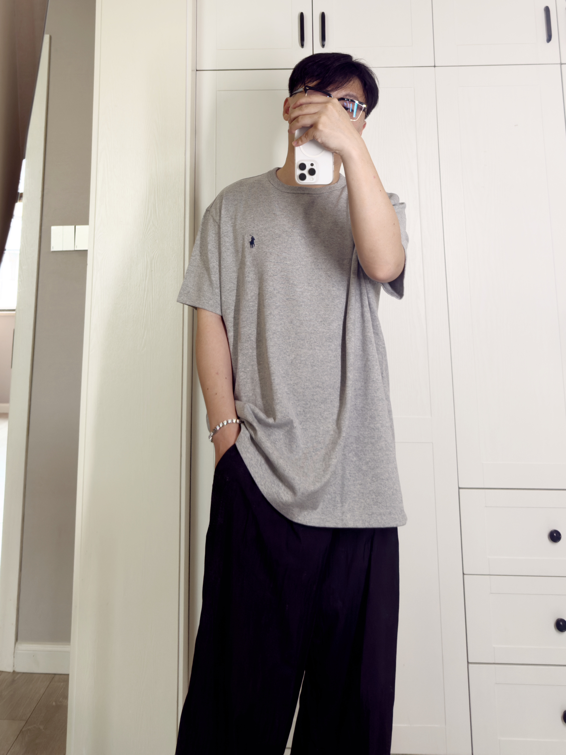 这件已经买了好几个色了,灰色是最满意的,没有之一。很纯的灰色,舒适的面料,完美松弛感的版型。 百搭就完事儿了。 之前一直get不到这牌子,穿多了果然真香了,低调的logo,下身短裤长裤随便配,都能穿出低调的高级感。