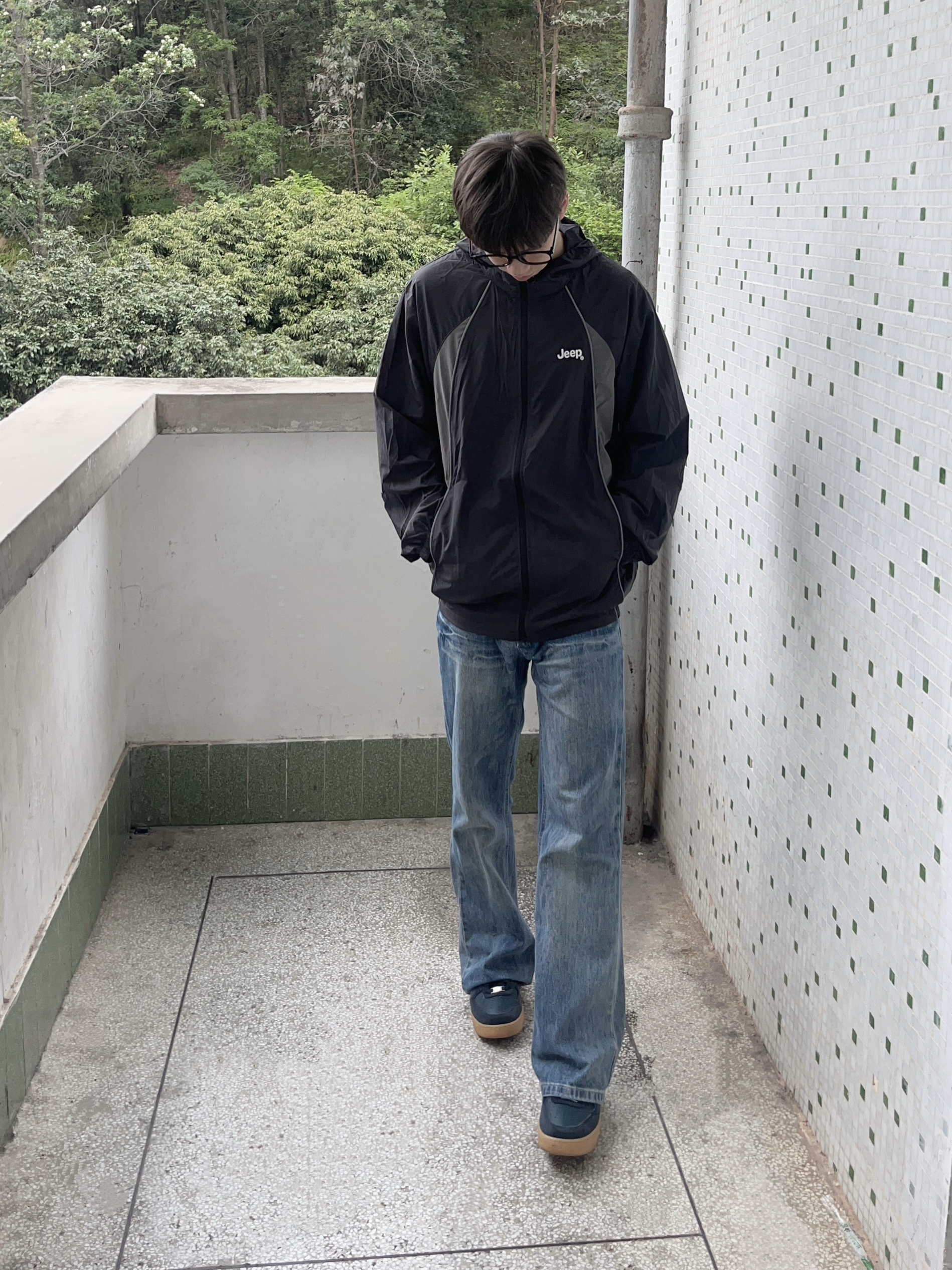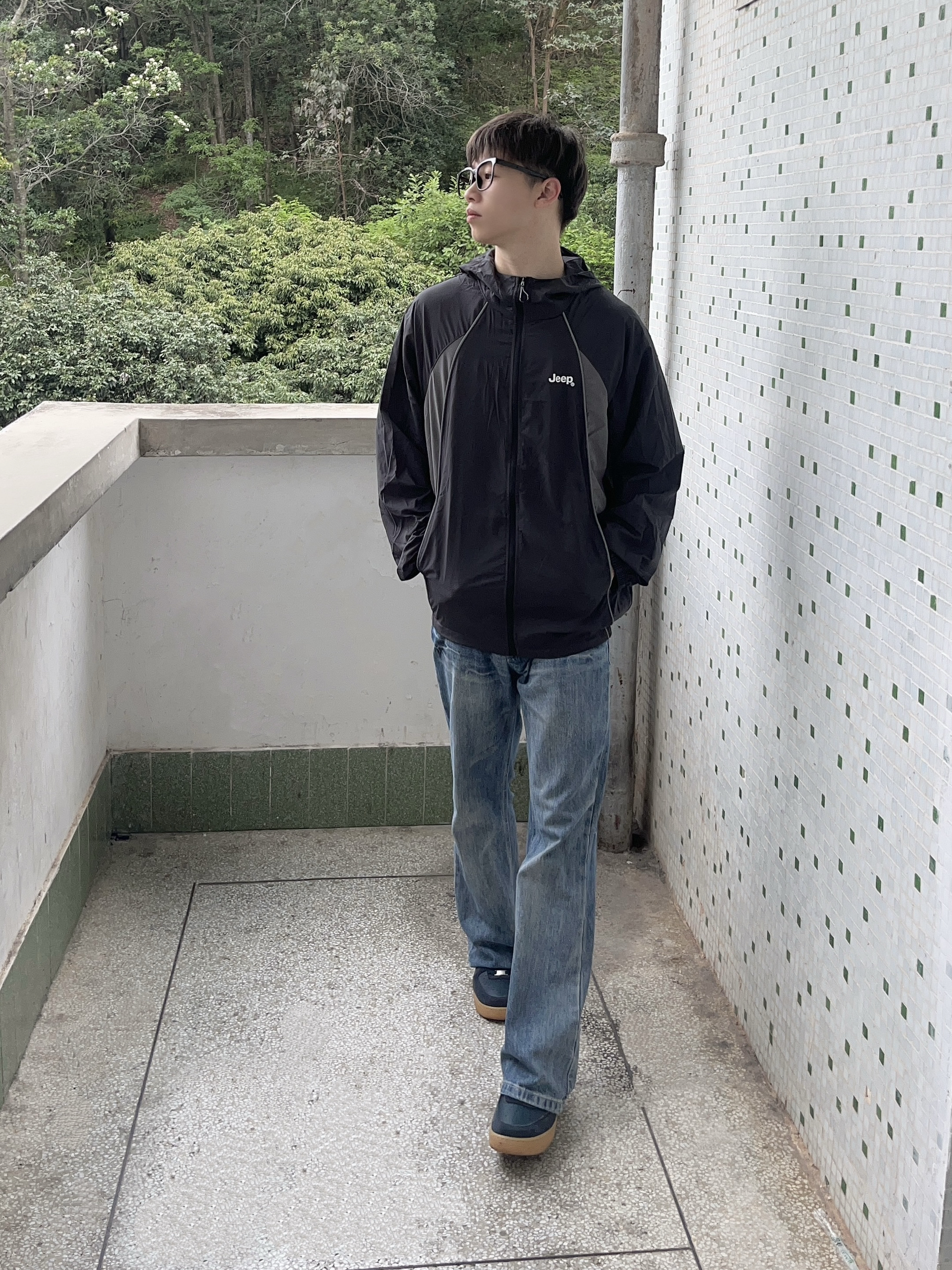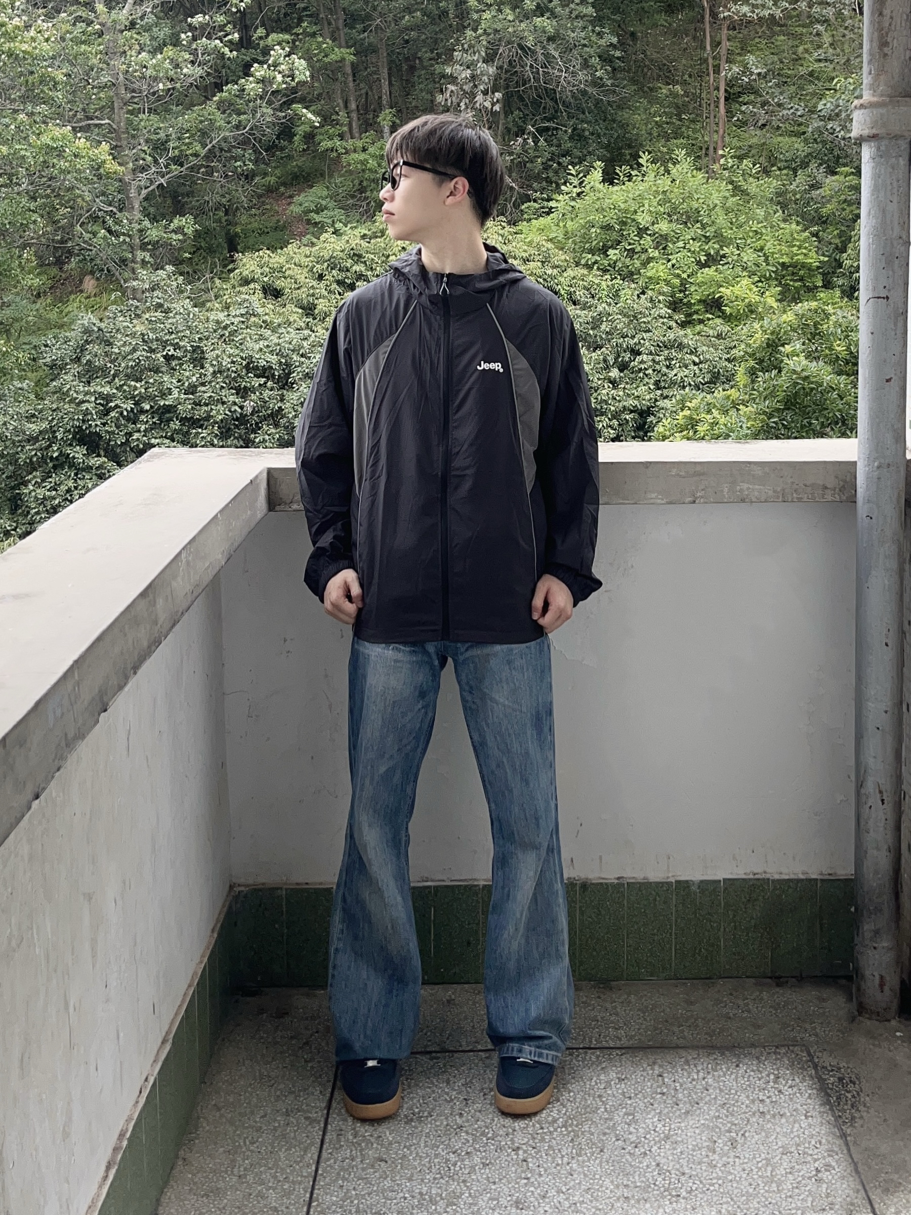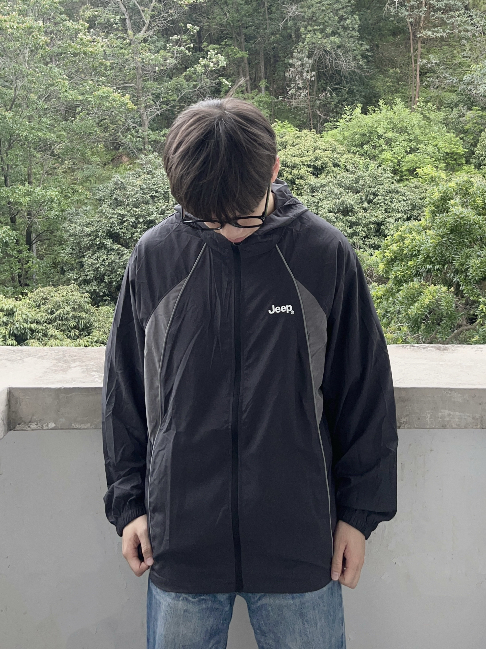 今日份穿搭分享look👀 衣服是 Jeep 的黑灰撞色防晒衣👔 拼接条纹设计简约时尚 山系风满满 透气面料轻薄舒适 版型也很正🔥 再搭配一条蓝色直筒牛仔裤修饰腿型 一套搭配下来 夏日日常出行 or户外运动都很合适🧗